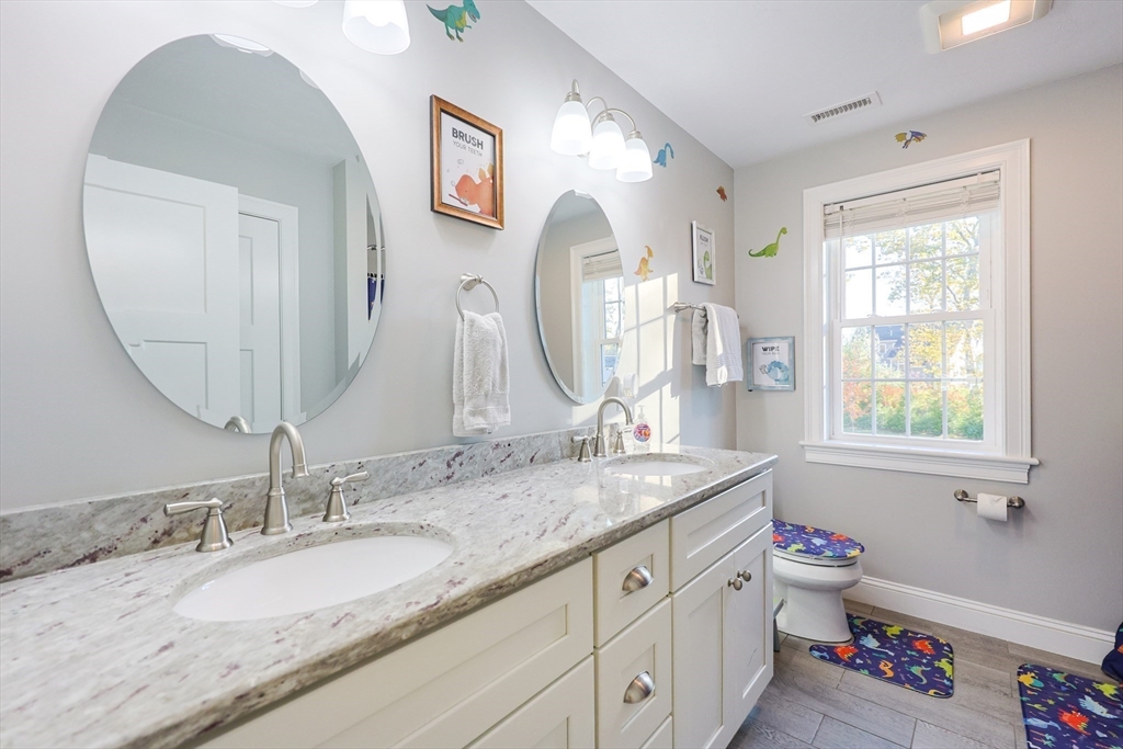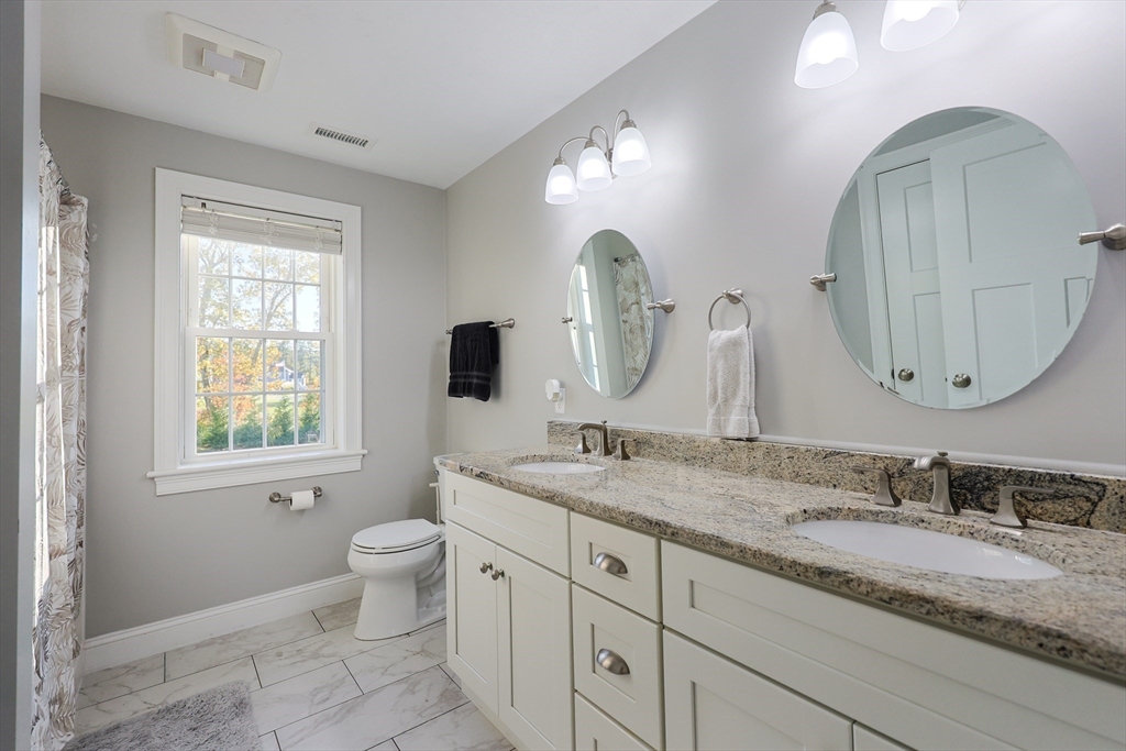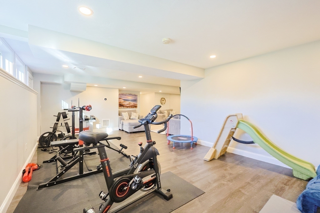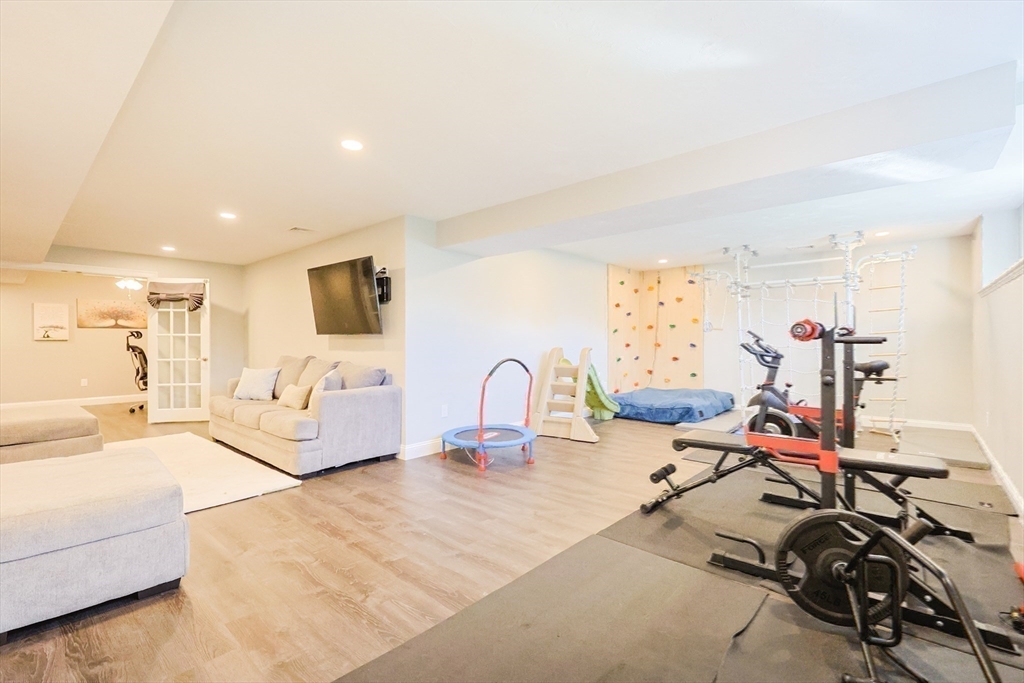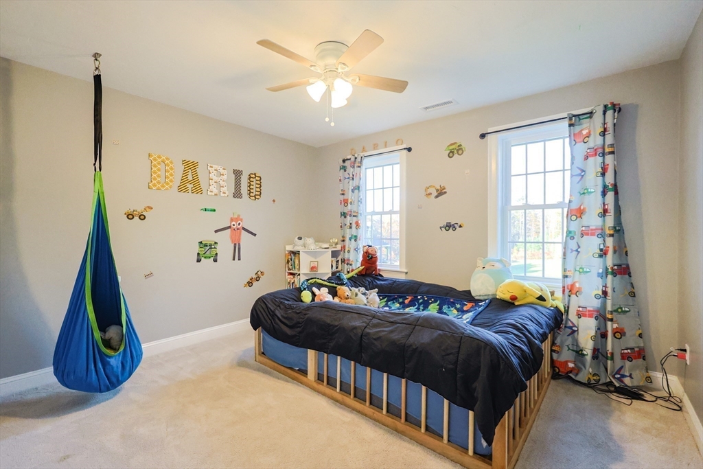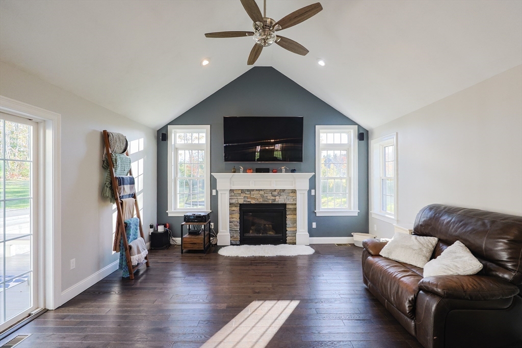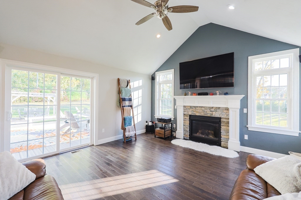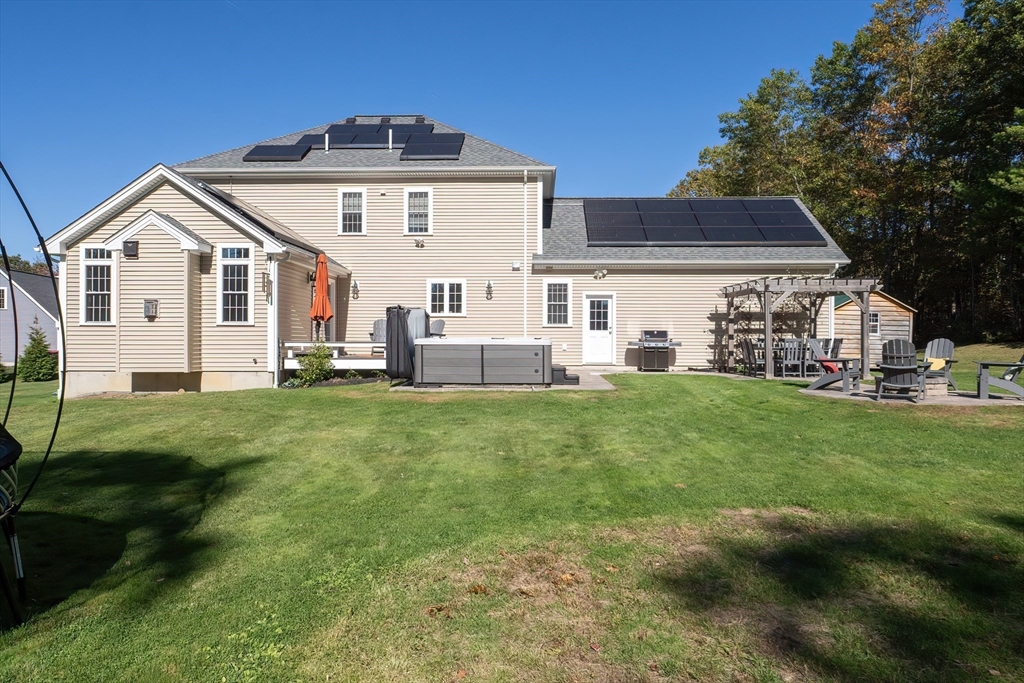 This young colonial has it all! Set at the end of a private cul-de-sac driveway with 2.4 acres of professionally landscaped yard. Whether you're entertaining or unwinding, you'll love the large composite deck, relaxing hot tub, fire pit, and pergola-covered patio. Inside you’ll find a cathedral living room featuring a propane fireplace, sunlit dining room, and a spacious kitchen equipped with a center island, granite countertops, and stainless steel appliances. Two versatile flex rooms off the open foyer provide ideal space for a home office, playroom, or formal room.Upstairs, the generous primary suite boasts a walk-in closet and relaxing bathroom. Two additional bedrooms share a full bath with a double vanity, and the laundry room offers built-in hanging racks and ample counter space for folding clothes. The finished basement adds over 1,000 sqft of additional living space, including two bonus rooms, a full bathroom, a second living area, and plenty of room for a home gym.