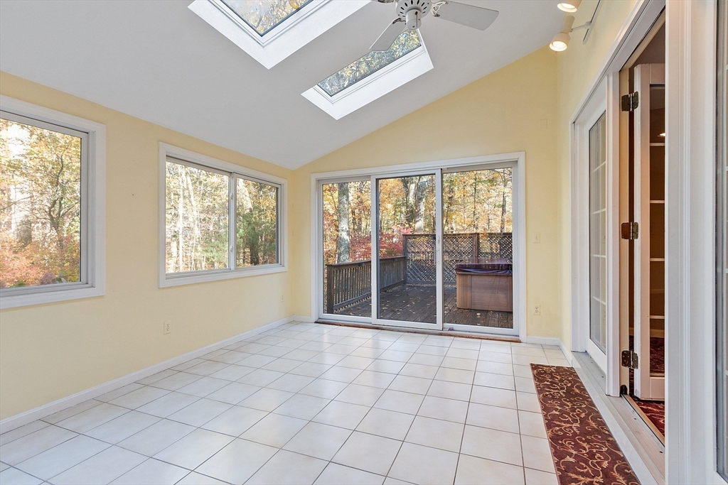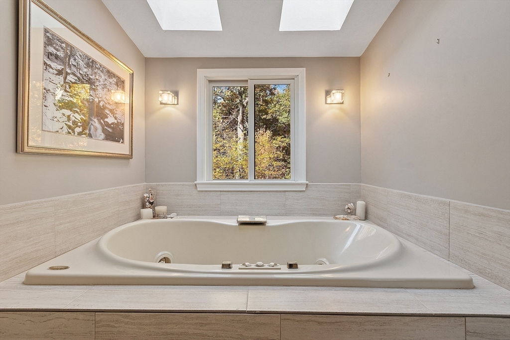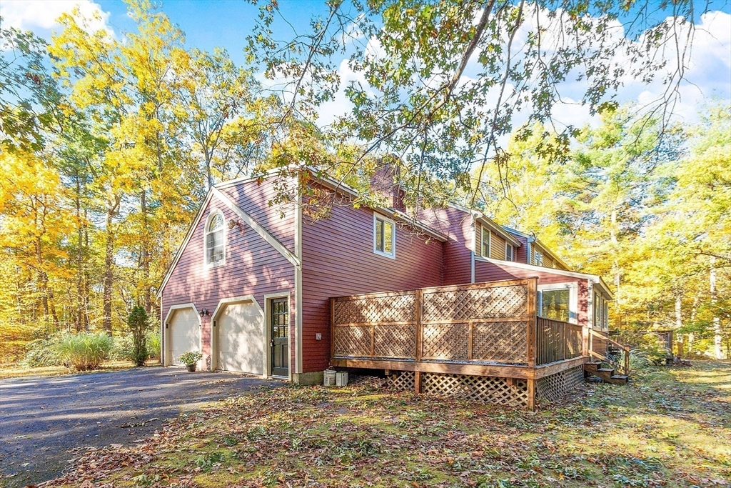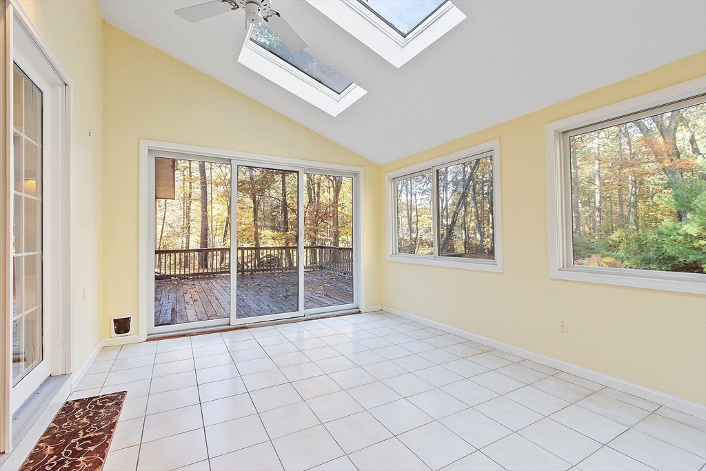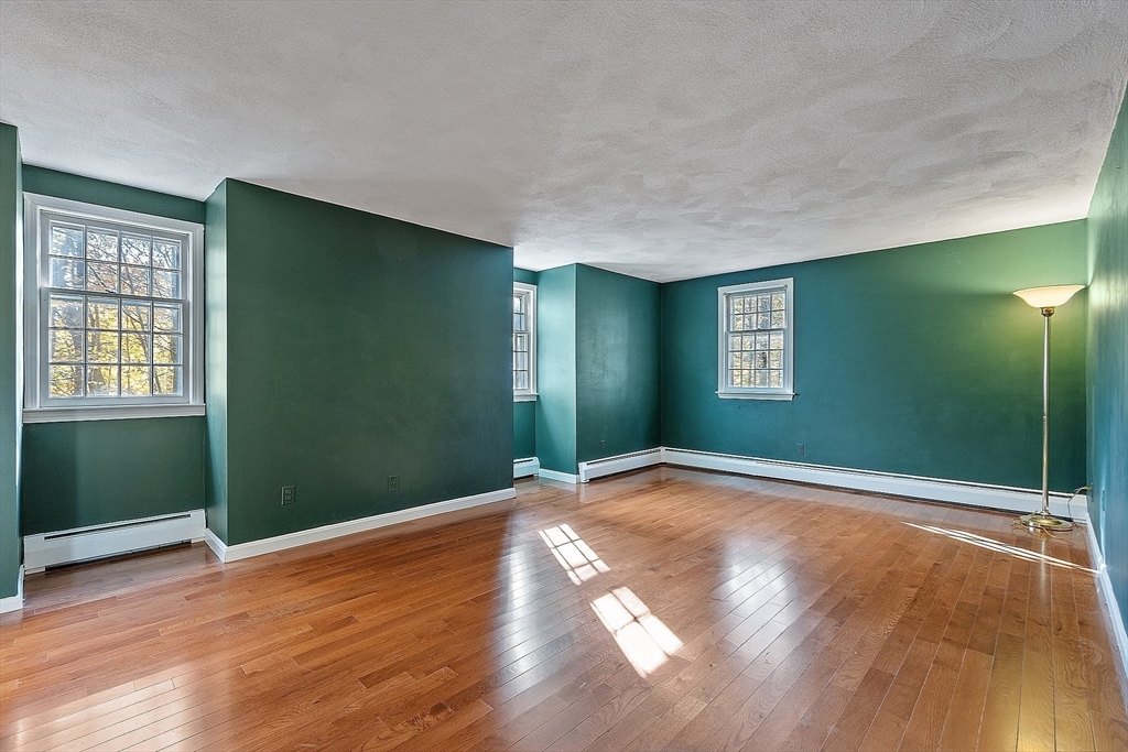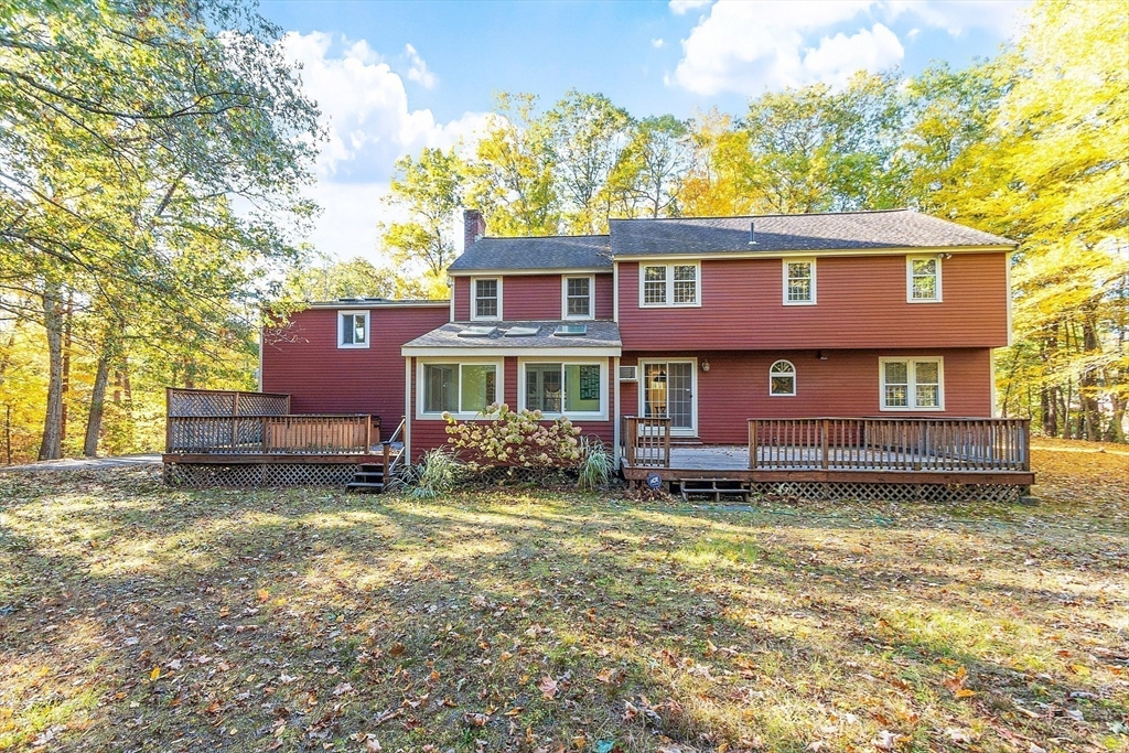 Wow! Classic, Expanded Gambrel in a desirable neighborhood! This well appointed home is located on 1.8 Acres, providing a good possibility for an ADU. Nestled amongst beautiful mature trees & perennials, with abundant space for activities & gardening. Welcoming eat-in kitchen with a tiled floor, a generous number of cabinets, granite countertops & stainless steel appliances. Just beyond, a lovely open & bright dining room with wainscoting & crown molding. Most rooms showcase gleaming hardwood floors. Charming carpeted living living room w/ fireplace provides the perfect gathering place. Adjacent - lovely sunroom overlooking the private backyard. 1st level also includes a study w/ french doors & custom wood shelves. 2nd level - Primary en-suite including cathedral ceiling, 2 closets, a walk-in closet, jacuzzi & tiled shower. 3 other bdrms, one also an en-suite w/ bath. Also a Full Bath & laundry room. Great restaurants, shops, Nature Trails & Golfing nearby! Videos & more Pics Fri!