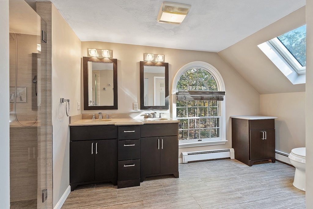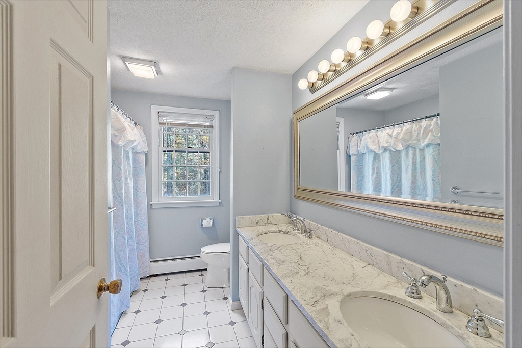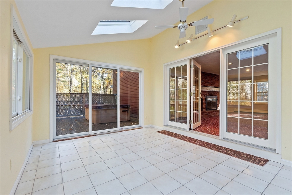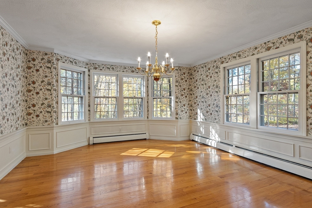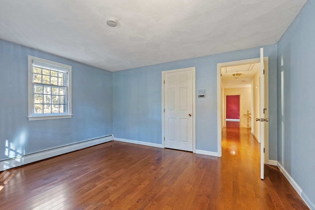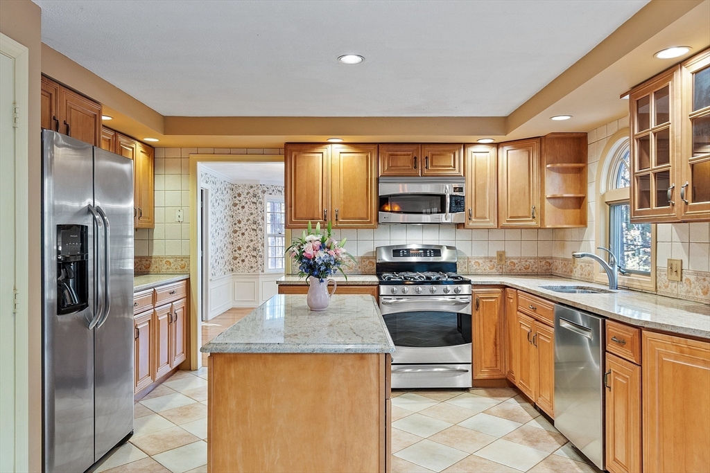 Wow! Classic, Expanded Gambrel in a desirable neighborhood! This well appointed home is located on 1.8 Acres, providing a good possibility for an ADU. Nestled amongst beautiful mature trees & perennials, with abundant space for activities & gardening. Welcoming eat-in kitchen with a tiled floor, a generous number of cabinets, granite countertops & stainless steel appliances. Just beyond, a lovely open & bright dining room with wainscoting & crown molding. Most rooms showcase gleaming hardwood floors. Charming carpeted living living room w/ fireplace provides the perfect gathering place. Adjacent - lovely sunroom overlooking the private backyard. 1st level also includes a study w/ french doors & custom wood shelves. 2nd level - Primary en-suite including cathedral ceiling, 2 closets, a walk-in closet, jacuzzi & tiled shower. 3 other bdrms, one also an en-suite w/ bath. Also a Full Bath & laundry room. Great restaurants, shops, Nature Trails & Golfing nearby! Videos & more Pics Fri!