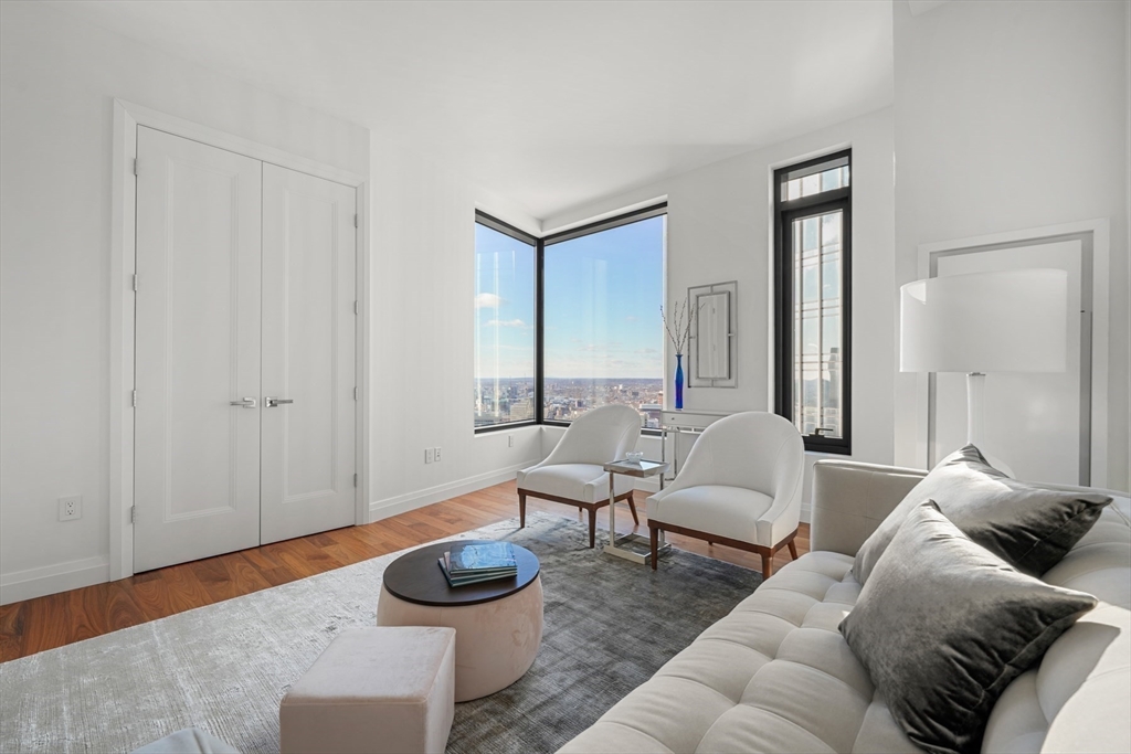 This 36th fl corner new construction 3 bed+den/4 bed residence offers picturesque views of Beacon Hill, the iconic Back Bay skyline and sunsets over the Charles River. SW exposure floods the 30’ wide living space in natural light. Lives like a single-family home in the sky w/ foyer separating the living and primary suite from the guest wing with den & laundry room. Stone-surround gas fireplace. Kitchen features custom Scavolini cabinetry, integrated Gaggenau appliances, gas cooktop, wine cooler and wet bar. Range hood, full size dryer, bathrooms vent out. Radiant heated floors + soaking tub in primary ensuite. Amenities: private lobby, 24/7 concierge, private clubroom & private roof garden. Heated outdoor pool, 4500sf fitness center/yoga studio, sports simulator, outdoor dog park, sky lounge/deck, chef’s kitchen/private dining & more. Located where the North End meets Beacon Hill. Steps to Greenway & Harborwalk. 1 min to I-93; 5 min to Logan. 2 assigned self-parking in attached garage