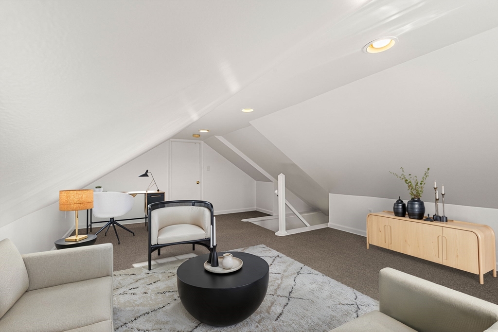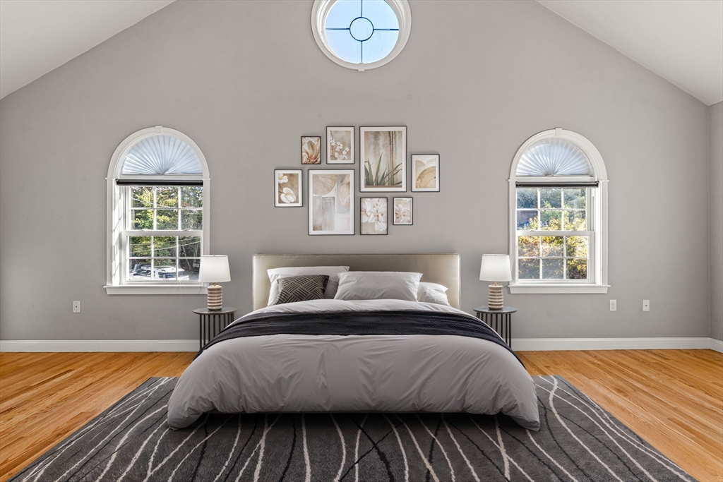 Set on an idyllic dead-end street among the Bird Streets of the Upper Washington St area of West Roxbury, this home offers the perfect contrast of city convenience and suburban tranquility. You'll enter this modern colonial via an expansive wrap-around porch, ideal for morning coffee, and step into a beautiful open foyer. Natural light floods the oak hardwood floors that flow seamlessly throughout the open floor plan, which is complete with detailed moldings and fine finish carpentry. From the gas-fired living room to the kitchen's custom cabinetry and granite counters, every space is thoughtfully finished. The kitchen is adjacent to a large dining area, where patio doors lead out to an oversized deck overlooking a private, woodland backyard. Upstairs, the generous master suite is truly impressive, featuring a cathedral ceiling, a full bathroom, an office nook, a skylight, and a bonus large, finished attic room. The remaining spacious and bright bedrooms allow the natural surroundings.