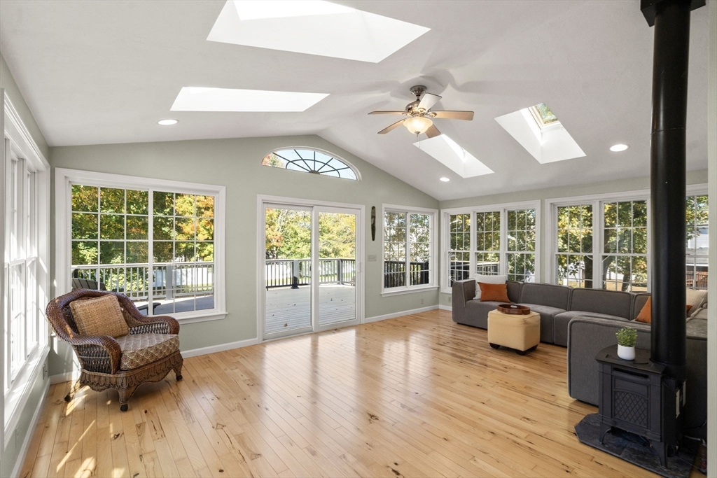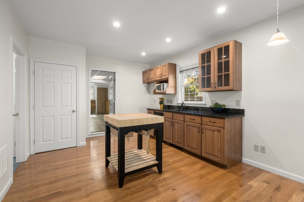 A Home That Brings Everyone Together! This modern home offers two separate living spaces—perfect for an IN-LAW, AU PAIR, HOME OFFICE, or RENTAL INCOME. The main level features vaulted ceilings, open-concept living and dining area, and a sunny eat-in kitchen with architectural details that create an inviting space. The sunroom, with walls of windows, gleaming floors, a cathedral ceiling, and panoramic views, is the showpiece of the home—flowing seamlessly onto a maintenance-free deck that extends living outdoors. 3 spacious bedrooms include a serene primary suite, a remodeled bath, and hardwood floors throughout. The lower level, with its own entrance, offers a living room, kitchenette, bedroom, laundry, and full bath—one-level living, suitable for a multi-generational family or guests. Huge unfinished basement with private entrance—blank canvas for expansion or personal projects. Sought-after Saxonville location. One Home, Endless Possibilities. Love Where You Live!