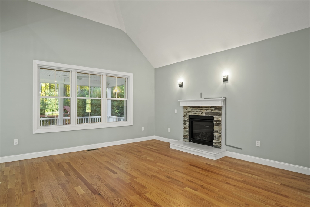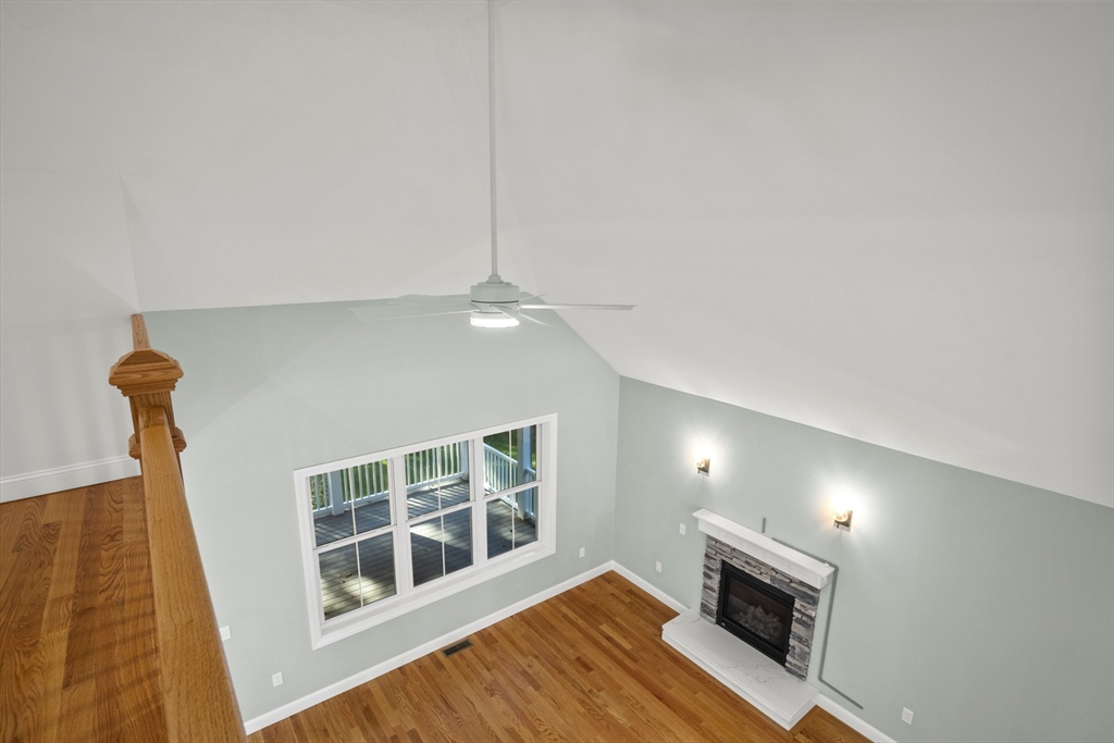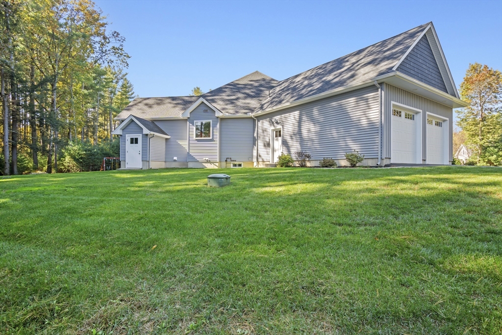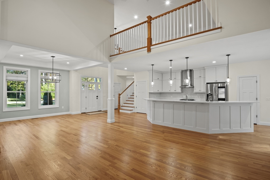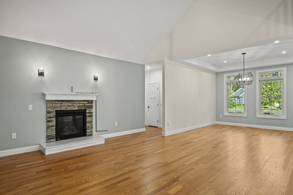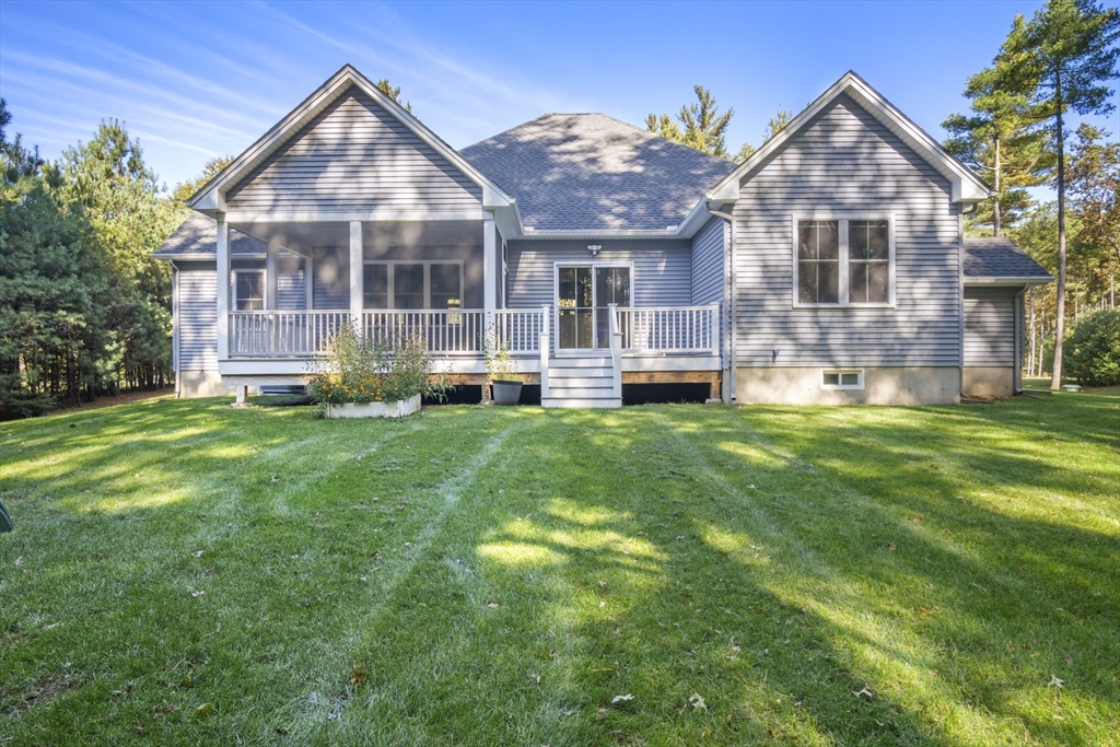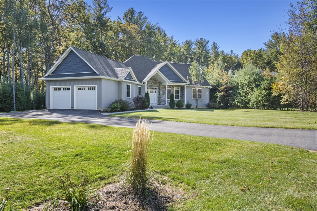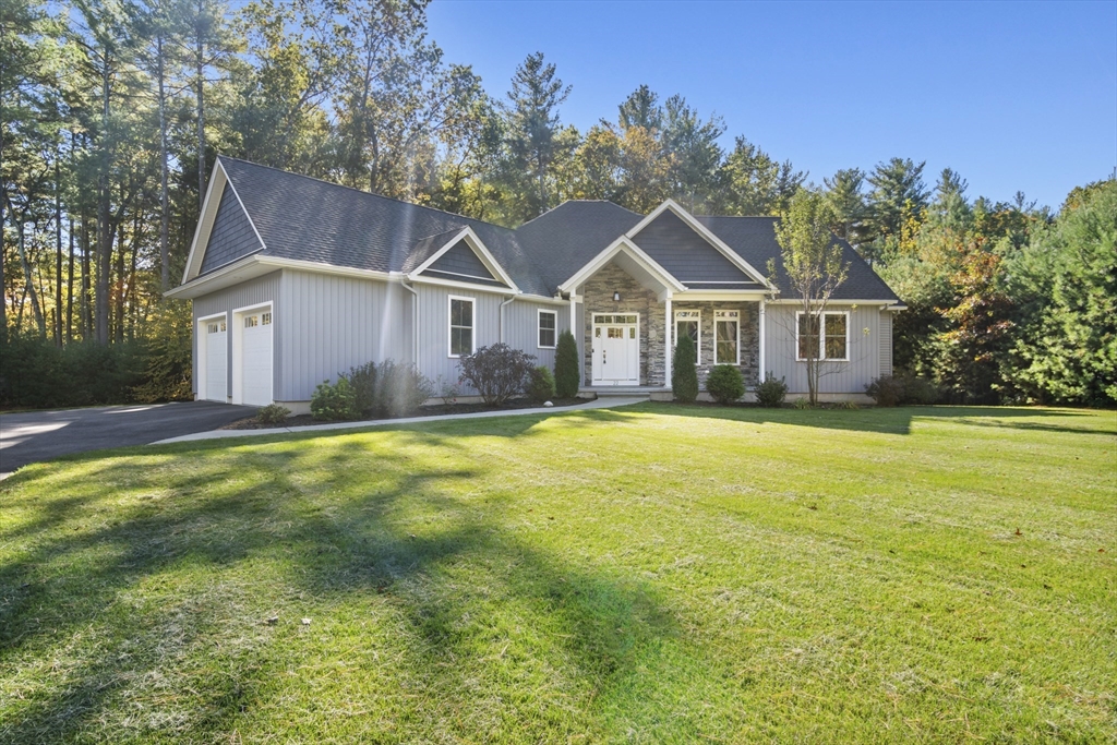 Welcome to this stunning contemporary home in Whately, set on just under an acre of land with a charming stone-accented entryway. Inside, discover an open floor plan featuring a dining area with pendant lighting and a tray ceiling, a spacious living room with vaulted ceiling and a stone gas fireplace, and a showstopping kitchen with dual-tone cabinetry, tile backsplash, S/S appliances including a gas stove, a large island w/ breakfast nook, pantry, & sliders leading to the back deck. The main bedroom suite offers a luxurious en suite bath with a jetted soaking tub and dual vanity sinks. Two additional bedrooms, a full bath, half bath, and laundry room complete the first level, while the second floor offers a versatile loft space overlooking the main living area. Enjoy the three-season porch, expansive deck, and large, level yard—perfect for soaking in the beauty of fall in New England. Attached garage, ample off-street parking, and convenient access to I-91 make this home a must-see!