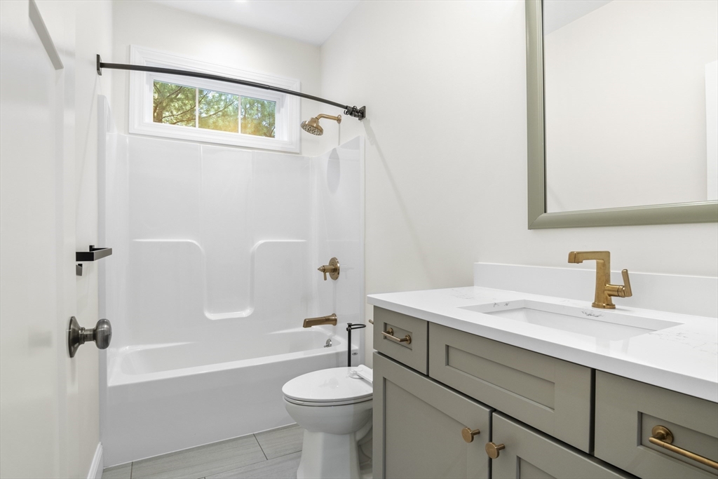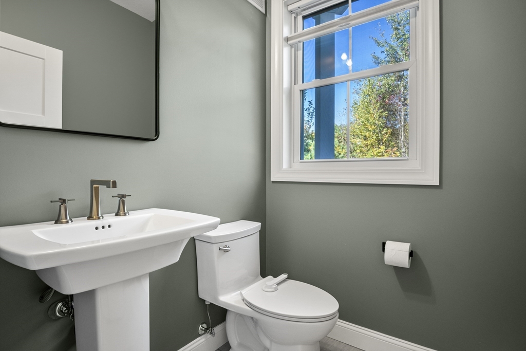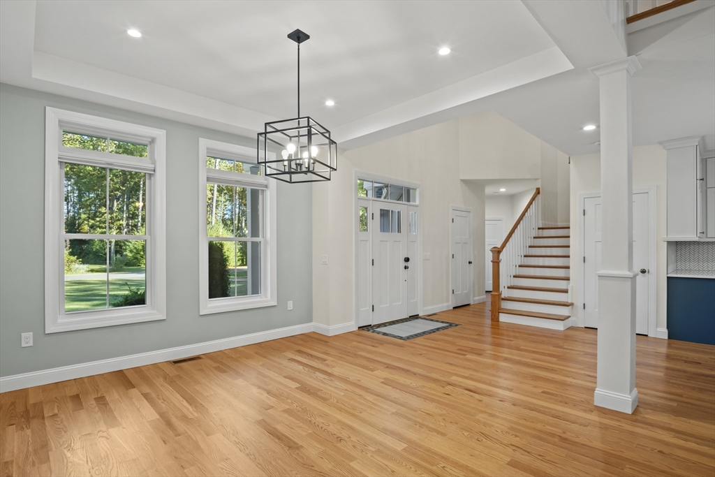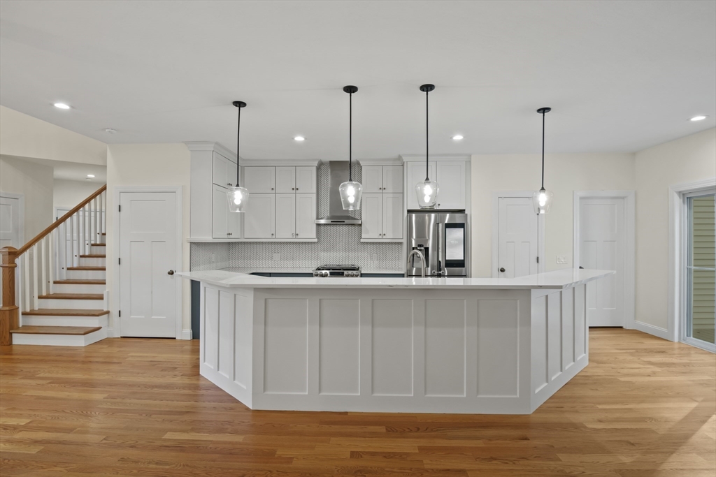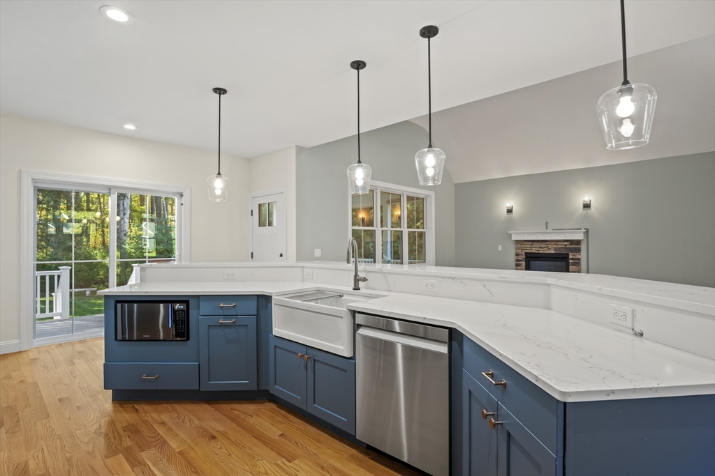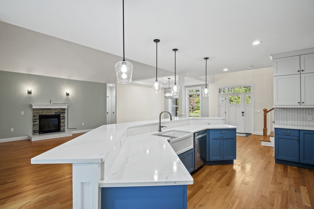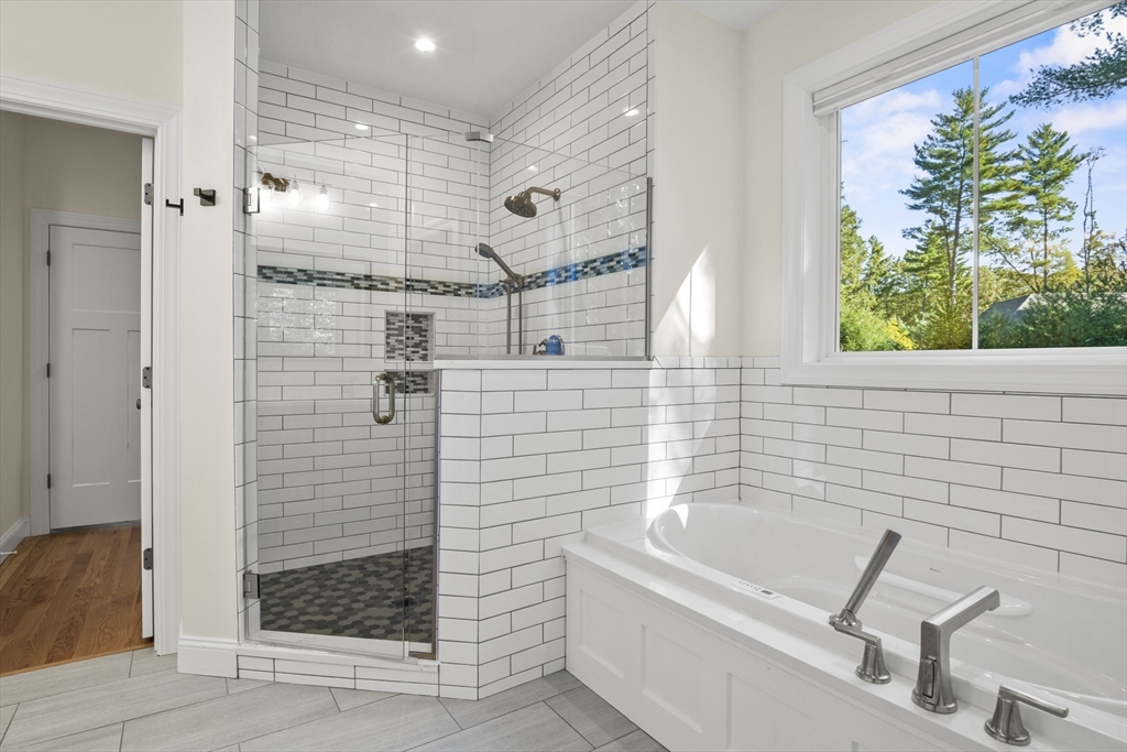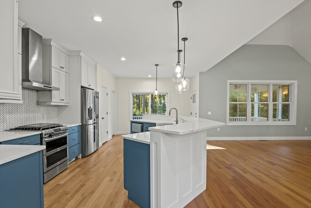 Welcome to this stunning contemporary home in Whately, set on just under an acre of land with a charming stone-accented entryway. Inside, discover an open floor plan featuring a dining area with pendant lighting and a tray ceiling, a spacious living room with vaulted ceiling and a stone gas fireplace, and a showstopping kitchen with dual-tone cabinetry, tile backsplash, S/S appliances including a gas stove, a large island w/ breakfast nook, pantry, & sliders leading to the back deck. The main bedroom suite offers a luxurious en suite bath with a jetted soaking tub and dual vanity sinks. Two additional bedrooms, a full bath, half bath, and laundry room complete the first level, while the second floor offers a versatile loft space overlooking the main living area. Enjoy the three-season porch, expansive deck, and large, level yard—perfect for soaking in the beauty of fall in New England. Attached garage, ample off-street parking, and convenient access to I-91 make this home a must-see!