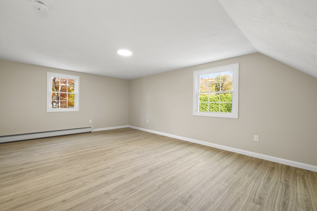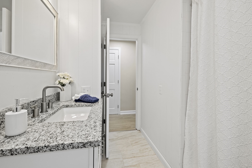 SHOWINGS BEGIN AT OPEN HOUSE SATURDAY OCTOBER 25TH FROM 11AM TO 1PM. Newly renovated and beautifully updated, this amazing three-bedroom, generous in size, two-full-bath Cape is situated on approximately one-half acre of land. The home features a bright, modern kitchen with solid stone countertops, upgraded cabinets, and stainless steel appliances. The inviting family room is adorned with a bay window that fills the space with natural light and a charming fireplace that adds warmth and character. With a newly installed private sewer system and thoughtful updates throughout, this home is move-in ready and truly special. What more may one hope for? A generous yard perfect for family fun and entertaining, located within minutes to major highways and shopping, and any car lover’s dream with a three-car garage offering plenty of space for vehicles and storage. This home is meant for you! Welcome home!