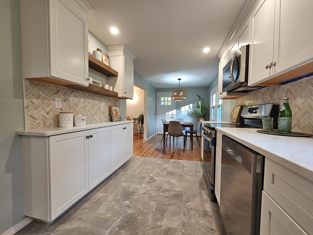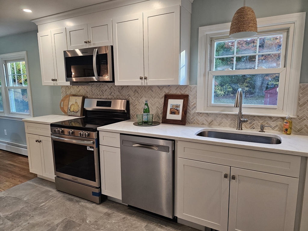 Welcome to this beautiful, light-filled home! Buyers will love that almost everything has been tastefully updated so they can just move in and enjoy! Renovations include a new kitchen with a coffee bar, quartz countertops, marble tile backsplash and brand new stainless steel appliances. The kitchen opens up to a lovely dining room which overlooks the spacious backyard and patio. The large living room is great for entertaining and there is also a newly finished family room in the basement for more enjoyment space. The bathroom has also been completely updated and features a gorgeous tile floor, tiled tub surround, and quartz sink top. More updates include a brand new 3-bedroom septic system, new light fixtures and electric panel updates, fresh paint throughout, new vinyl siding, refinished hardwood floors, new doors both inside and out, and much more. All this and located on a quiet side street just minutes to shopping, restaurants, highway access, and beautiful Salisbury Beach!