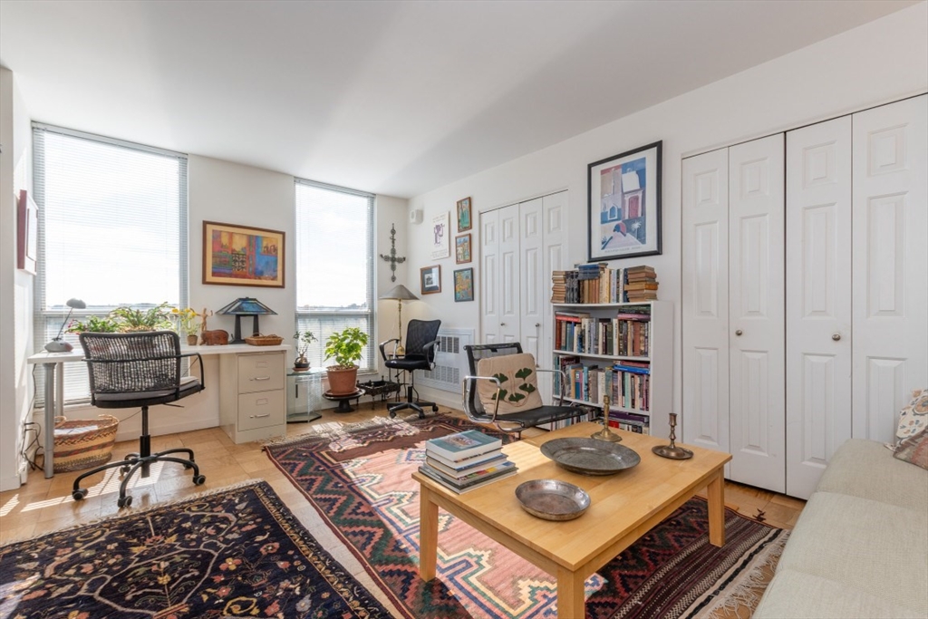 Sundrenched Penthouse! Exceptional residence with south-facing panoramic views and nearly 1,300SF of well designed living space. 2 Bedrooms, 2 Bathrooms, and 2 deeded garage parking spaces. Open-concept living and dining area is highlighted by floor-to-ceiling windows, wood floors, and crown moldings. Updated kitchen features off-white cabinetry, granite counters & stainless steel appliances. Primary suite has double closets plus an additional walk-in closet with custom built-ins and leads to an en-suite bathroom. 2nd bedroom has double closets and two floor-to-ceiling south-facing windows that fill the space with natural light. Residents enjoy a wealth of amenities including a 24-hour concierge, security cameras, a health club with steam and sauna, a heated outdoor pool, tennis and basketball courts, BBQ areas, a WiFi lounge, and an on-site management office. Across from the MBTA Green Line and just moments from the shops & restaurants of Brookline Village & The Longwood Medical Area.