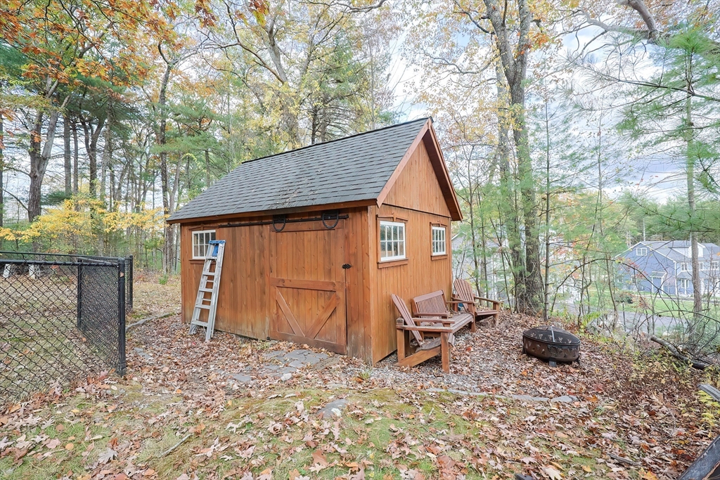 Suburban Lifestyle:Nestled in a peaceful wooded setting, this 3-bedroom, 1.5-bath Saltbox Colonial combines classic charm with thoughtful updates. Built in 1989 with durable post & beam oak timber construction, the home features wide 12-inch pine floors and a warm, open layout. The updated kitchen offers quartz slab countertops, high-quality Shaker cabinets, and an under-counter microwave. The inviting main level includes upgraded lighting and opens to a brand new composite deck overlooking the trees—perfect for relaxing or entertaining. Upstairs are three comfortable bedrooms and a full bath. The lower level features a family room with new laminate flooring, built-in oak storage, and an office nook. Additional updates include a new walkway, Nest smart thermostats, Kwikset digital lock, professional radon remediation, and custom top-down/bottom-up window treatments. A perfect blend of privacy, character, and modern comfort in desirable Holliston.