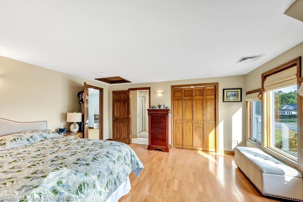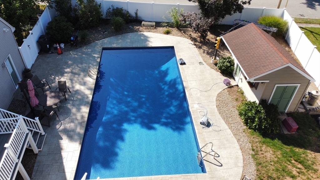 Exceptional remolded front to back split with addition, 2 car oversized heated garage with built-ins and also many upgrades. Lovely mature professional landscaping, Resort style backyard with raised decks, large patio stamped concrete with large relaxing pool. In-ground pool 20 x 40 with new liner, pool shed, fire pit, open lawn space for games. New fenced in yard with cobble stone walkways from historical Boston waterfront. Beautiful remodeled kitchen with granite countertops, stainless steel appliances, designer style maple wood cabinets and slate stone flooring. Huge light filled primary bedroom with full bath and walk-in closet. Living room and dining room with slider to outdoor decks with a pergola. Natural light filled freshly painted Family room with newly refinished hardwood floors. Also a nearby full bathroom, and bedrooms, as well as an office. Lower level has a huge game room with a cedar closet, large den with built in shelves, & work shop room, with a nearby washroom.