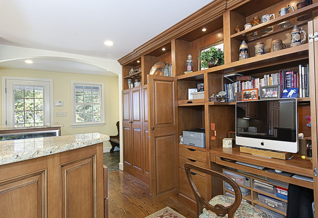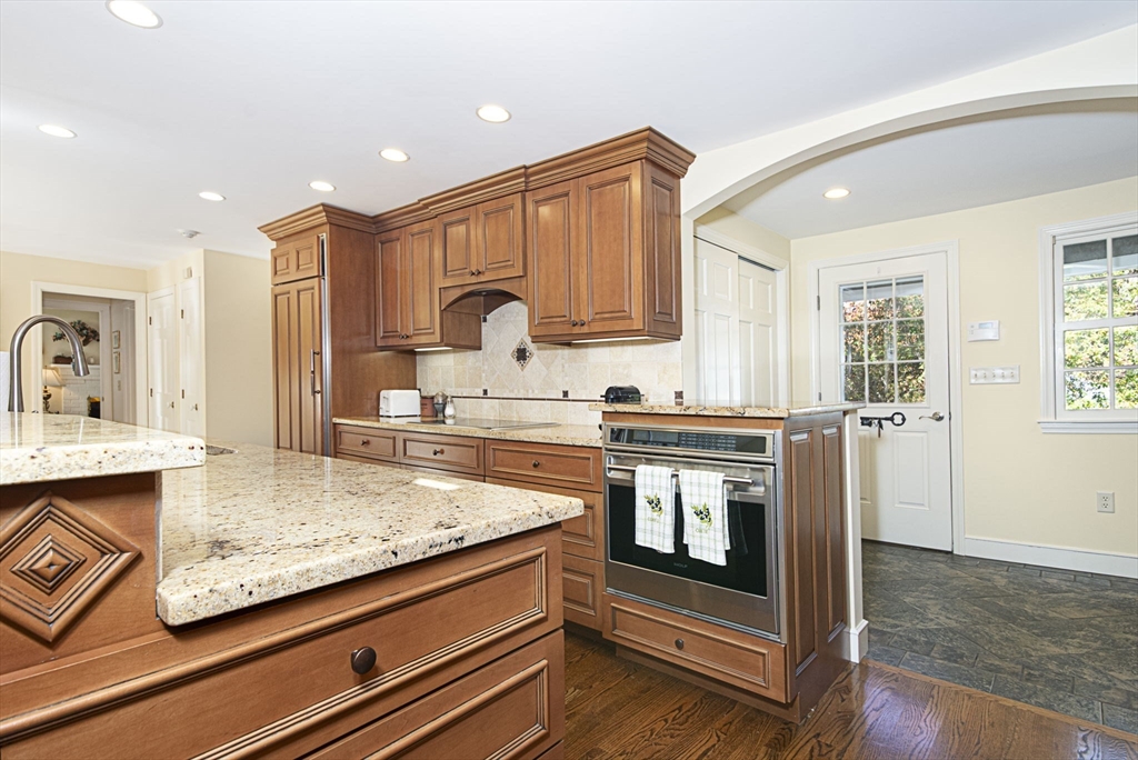 It will be clear the moment you arrive..this is a truly special property that exudes quality and class. Step onto the welcoming covered porch and enter an exceptional, updated kitchen featuring a large granite island, Sub-Zero and Wolf appliances, and a charming dining area with sliders to a composite deck and patio.Thoughtful details abound, including concealed pull-outs, a hidden pantry, and a built-in office nook. A stunning addition expanded the home, creating a cathedral-ceiling family room with a gas fireplace that’s perfect for relaxing or entertaining. The formal living room offers a wood-burning fireplace with a new lining, adding to the home’s warmth and character. Upstairs are four bedrooms and two full baths, including a luxurious primary suite with a heated floor and towel bar. The finished lower level provides flexible bonus space, ideal for a playroom and home office. A darling playhouse in the rear yard will provide many hours of back yard fun and also provides storage.