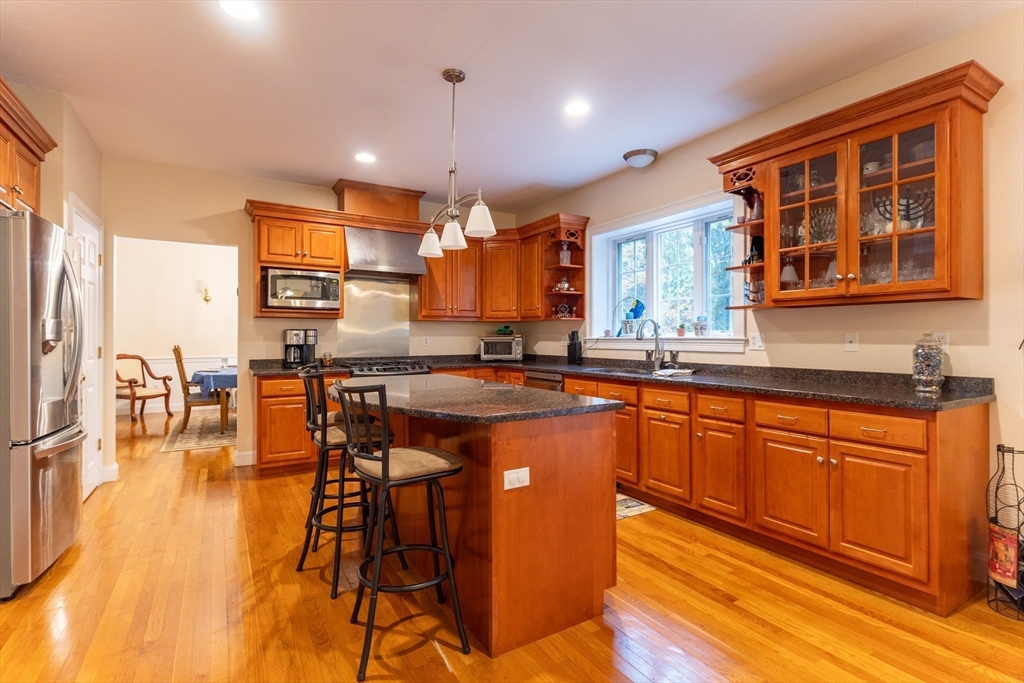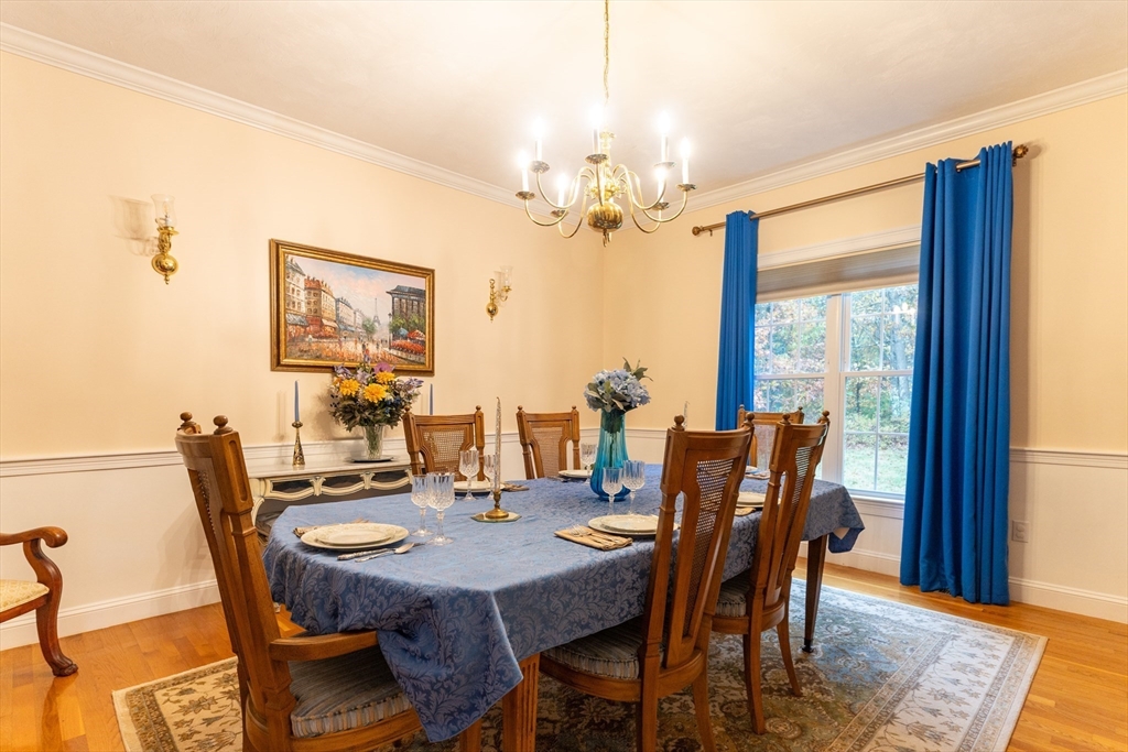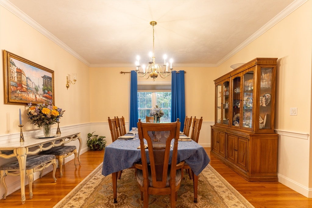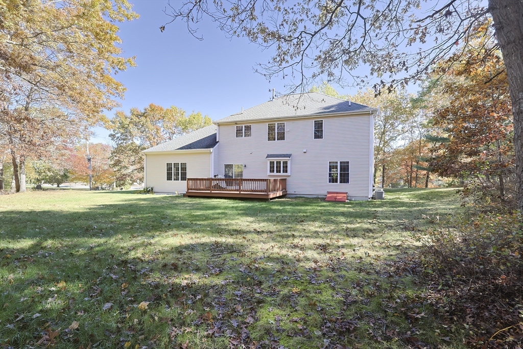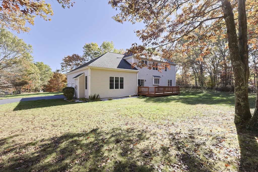 Look no further! This four bedroom, two and a half bath colonial on a corner lot in Eastfield Estates has it all.The first floor features a large eat-in kitchen with island and pantry closet. Extra features include spice drawer, pull out drawers and baskets, lazy susan, and a trash/recycle drawer. Sliders lead to the oversized deck overlooking the park-like backyard, perfect for outdoor entertaining or a quiet cup of coffee in the morning. Step down into the family room with an inviting gas fireplace to watch tv, read, or just relax..Formal dining room with wainscoting and living room can accommodate those special family gatherings. A half bath, laundry, and dedicated home office with built-ins, custom desk with drawers, and French doors complete this level. Upstairs are a full bath, four generous bedrooms, incuding a primary with huge walk-in closet and en suite with jetted tub. All this on just over an acre of land. Showings by appointment only.