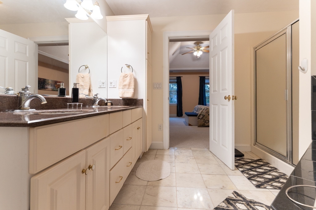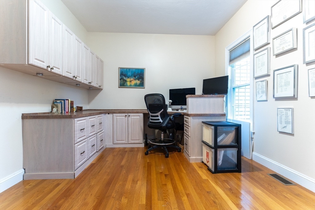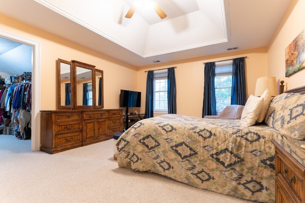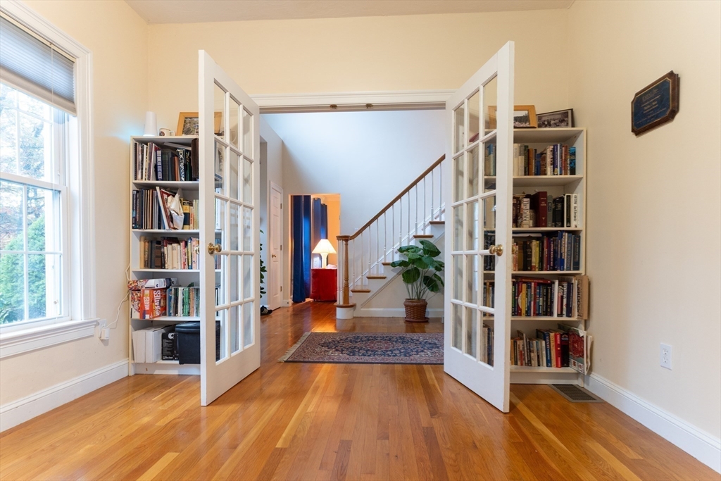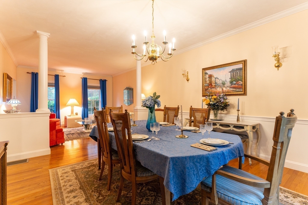 Look no further! This four bedroom, two and a half bath colonial on a corner lot in Eastfield Estates has it all.The first floor features a large eat-in kitchen with island and pantry closet. Extra features include spice drawer, pull out drawers and baskets, lazy susan, and a trash/recycle drawer. Sliders lead to the oversized deck overlooking the park-like backyard, perfect for outdoor entertaining or a quiet cup of coffee in the morning. Step down into the family room with an inviting gas fireplace to watch tv, read, or just relax..Formal dining room with wainscoting and living room can accommodate those special family gatherings. A half bath, laundry, and dedicated home office with built-ins, custom desk with drawers, and French doors complete this level. Upstairs are a full bath, four generous bedrooms, incuding a primary with huge walk-in closet and en suite with jetted tub. All this on just over an acre of land. Showings by appointment only.