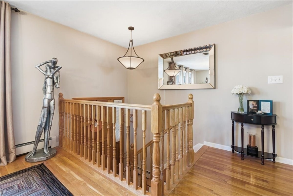 Beautifully maintained split-entry home featuring gleaming hardwood and tile floors throughout. Conveniently located near public transportation and Route 1, this home offers an ideal blend of comfort and accessibility. The upper level boasts a spacious formal dining room and updated eat-in kitchen with granite countertops, hardwood-faced cabinets, and top-of-the-line Frigidaire Gallery appliances, plus a mudroom with access to the two-car driveway. Down the hall are two bedrooms and a full bath. The lower level includes a cozy family room, office, and half bath. Enjoy a private backyard complete with a shed and gazebo — perfect for relaxing or entertaining."