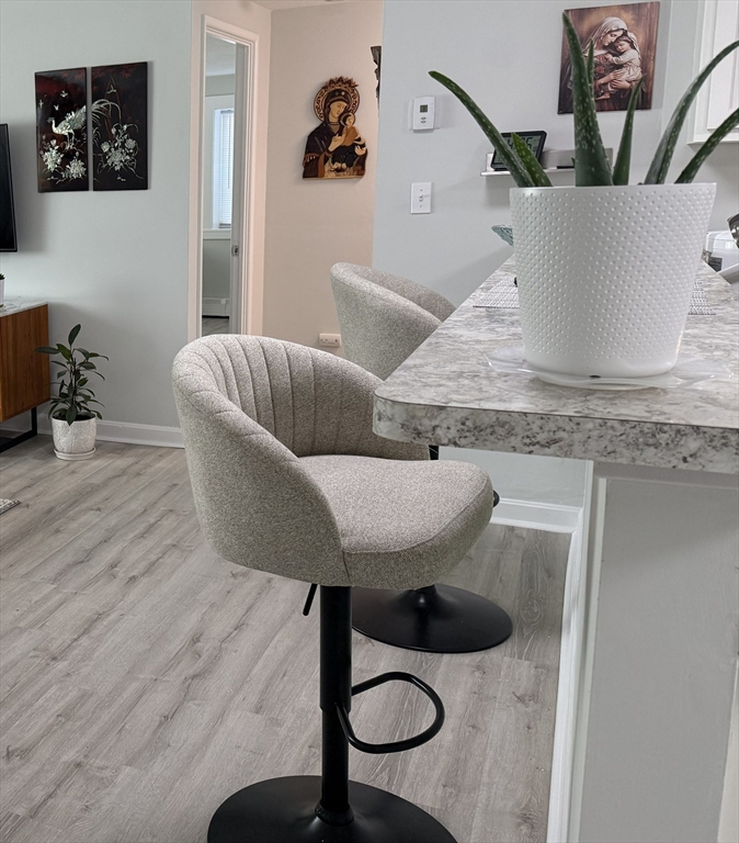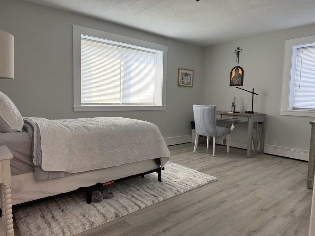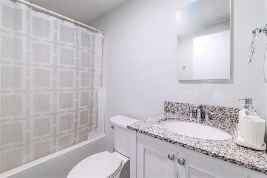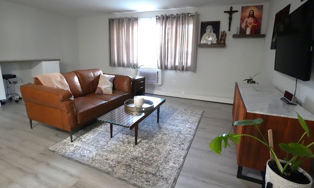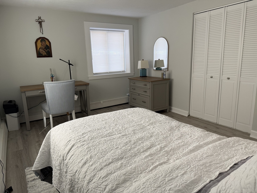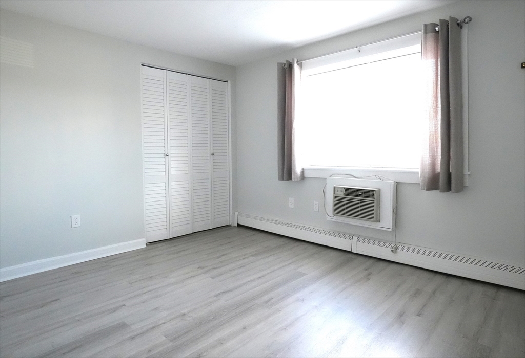Welcome to this beautifully renovated first-floor end unit, updated in July 2025. This bright and spacious condo offers 4 rooms: 2 bedrooms, 1 bath, and 3 closets for generous storage. The open-concept living and kitchen area features sleek cabinetry, SS appliances (new range, oversized fridge, dishwasher), breakfast bar, and modern finishes. Freshly painted with new LVT flooring and updated vanity fixtures. Small pets allowed; offers optional fully furnished that can be negotiated. Condo fee includes master insurance, maintenance, trash, landscaping, heat, hot water, 1 parking space, and on-site laundry. Assessments for windows and electrical box are fully paid ensuring worry-free living. Prime location across from shops, restaurants, bank, and near Rte. 3/128, SS Hospital, Pond, Bus #225, and police station. Great for the first time homebuyer, downsizer or investor. Don't miss the opportunity to see this unit. Easy to show—motivated seller!