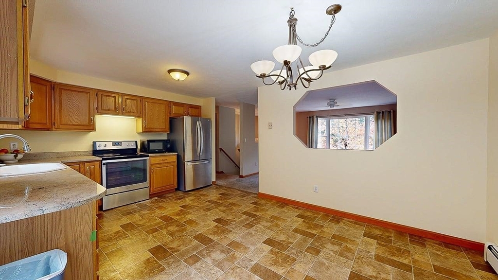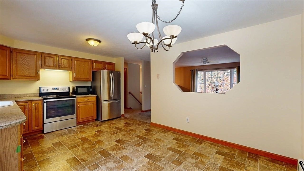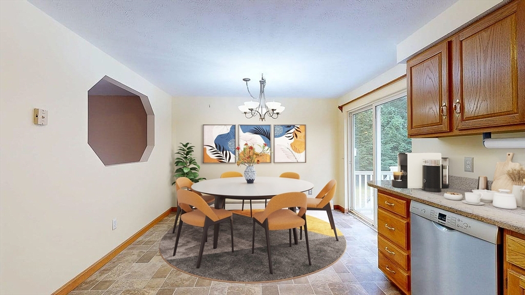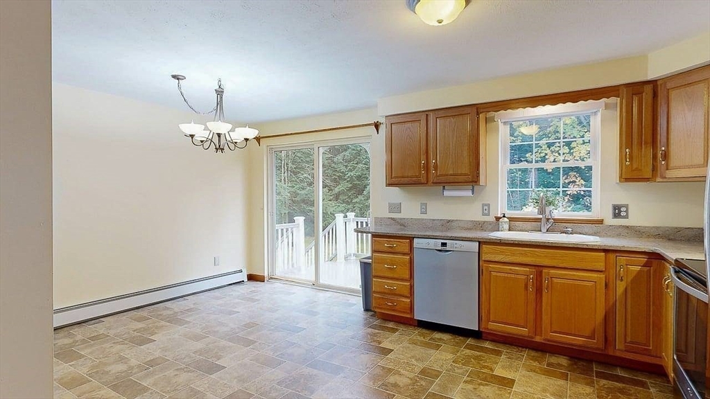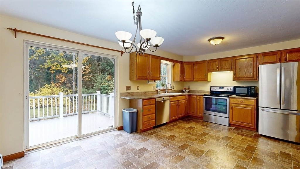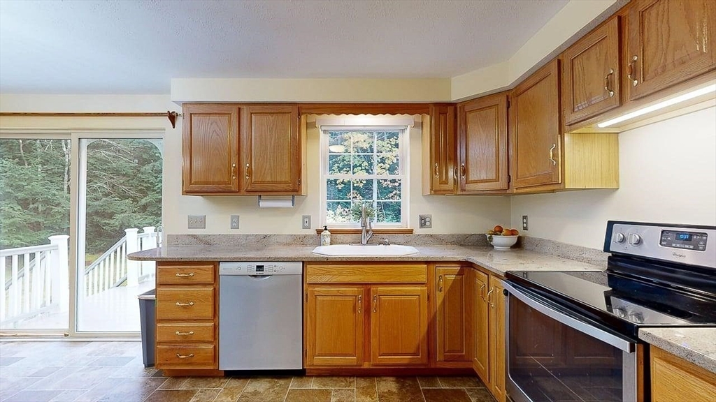 Cherished one-owner home, lovingly maintained and ready for its next chapter! This inviting property features three spacious bedrooms, a full bath, and a large eat-in kitchen with granite countertops, stainless steel appliances, and a slider leading to the Trex deck—perfect for outdoor dining. Enjoy a beautiful tree-lined backyard with a garden area, horseshoe pit, and plenty of space to play or entertain with this one acre lot. The oversized two-car garage with openers connects to a huge basement offering Laundry, a workbench and potential for expansion. The improved driveway includes a turnaround and parking for up to 8 cars. Ideal for first-time buyers or downsizers seeking comfort, space, and convenience near schools, highways, and the park. Make this your home for the holidays! Join us Sunday for the First Open House Noon til 2pm or schedule your private showing today.
