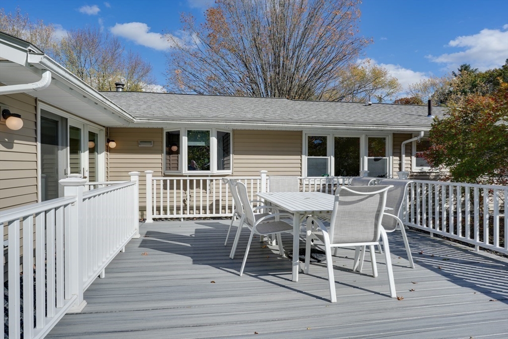 One-floor living at its best! Tucked into a quiet ended way, this much-loved home offers comfort, character and charm on a picturesque, half-acre lot*A welcoming farmers porch invites you in, while the enormous, sundrenched family room addition opens to an over-sized deck-perfect for entertaining or relaxing*The cheerful kitchen with breakfast nook, updated sparkling baths, and gleaming laminate floors throughout create a warm, inviting interior*Enjoy sunlit spaces with scenic views from every room*Improvements over time include roof('24), boiler('18), vinyl siding('15), replacement windows, sought-after gas heat and central air*The extra half garage is ideal for tools, toys or hobby space*Outdoor lovers will appreciate nearby Callahan State Park for year-round recreation*Whether you're downsizing, rightsizing, or just starting out, this home offers privacy, practicality and peaceful living*Don't miss this opportunity to be in your beautiful new home just in time for the holidays*WOW!!