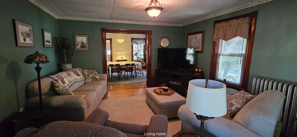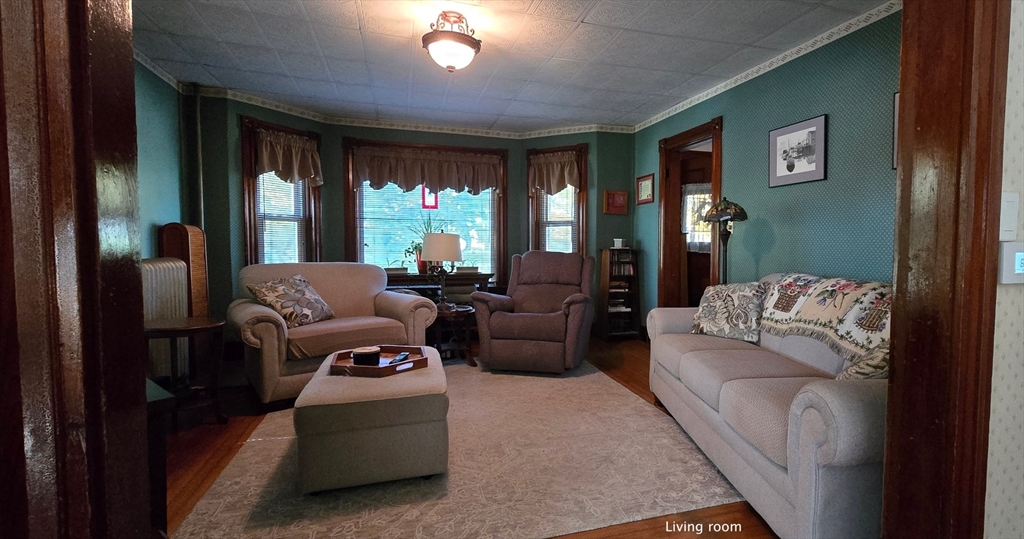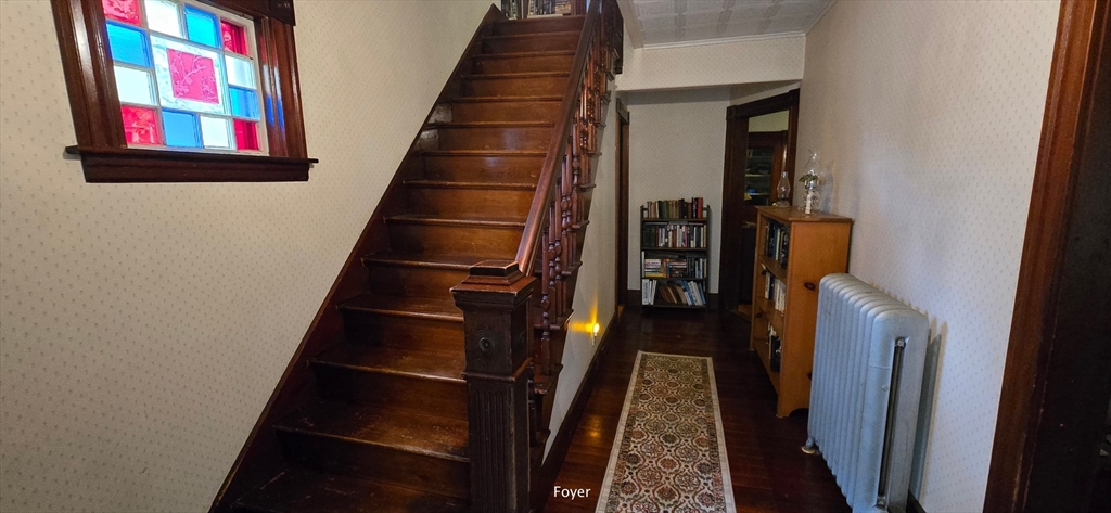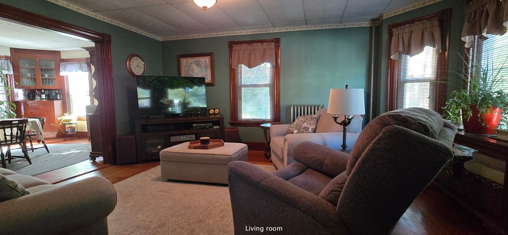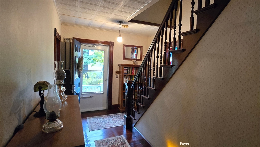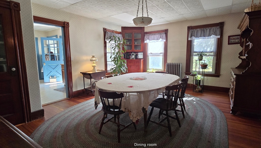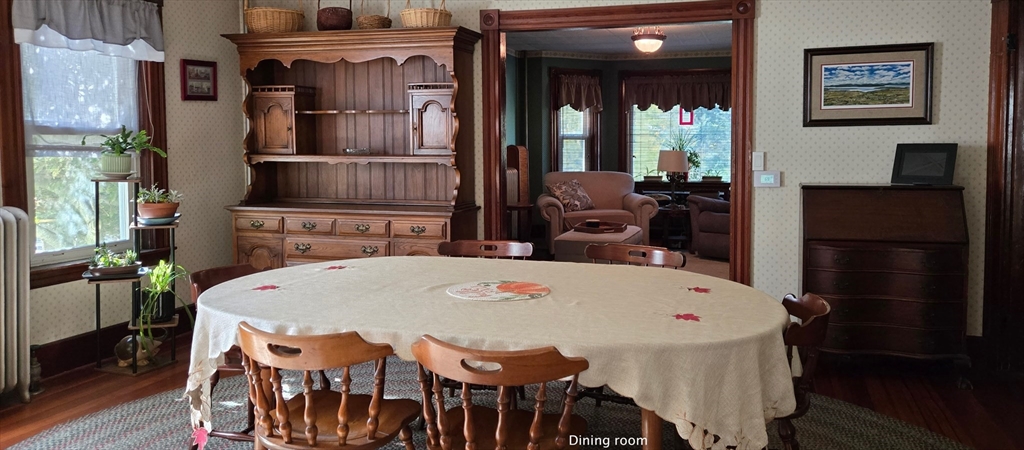 The perfect Home, a gorgeous colonial with over 100 years of history and original bullseye molding, was built by the original owner, offering a spacious and updated living environment. Upstairs, three enormous bedrooms have fresh paint, new comfy carpet, and walk-in closets including two in the primary bedroom plus full bath with classic tile. Downstairs, oversized rooms include large, freshly-painted kitchen with newer stainless steel appliances, adjacent to a versatile family room/den perfect for a playroom or home office. The huge dining room seats twelve, boasts hardwood floors, natural light, and a built-in hutch with leaded glass doors, complementing the decorative hardwood floor and bay picture window in the formal living room. Off the kitchen is a small bathroom, spacious laundry room, a large pantry, and a mud room. Exterior features include a 2-bay, detached garage with new doors, a recently painted front porch & new gutters. Roof is 6 years old.