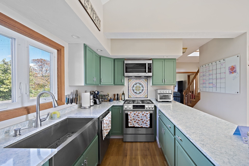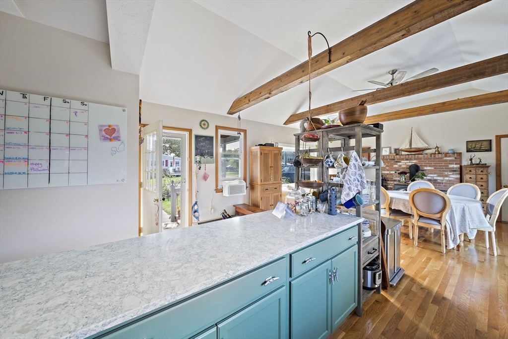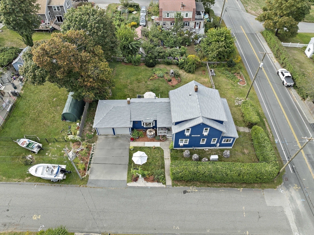 Seaside stunner in lovely Sand Hills. So close to the beach, but not in the flood zone! This home has the vibes of coastal charm and modern amenities. The first floor features a spacious and welcoming open kitchen and dining area with a cathedral ceiling, new kitchen with granite countertops, farmers sink and SS appliances. The living room welcomes you with a stone fireplace to snuggle by on those chilly nights. And you will love the sunroom with views down to the ocean. You'll also find a vintage cottage first floor bedroom that can open to an office (or make it a dressing/sitting room). Upstairs, the views get better from the 3 sunny and spacious bedrooms. Check more boxes w/a 2-car attached garage, full basement, automatic generator, gas heat, newer roof, new 200 amp elec, HWH, sump pump and woodstove. The pretty backyard is fenced in and perfect for entertaining and gardening. Convenient to the Best of Scituate-Harbor Restaurants & Shops, Beaches, Lighthouse, and Commuter Rail