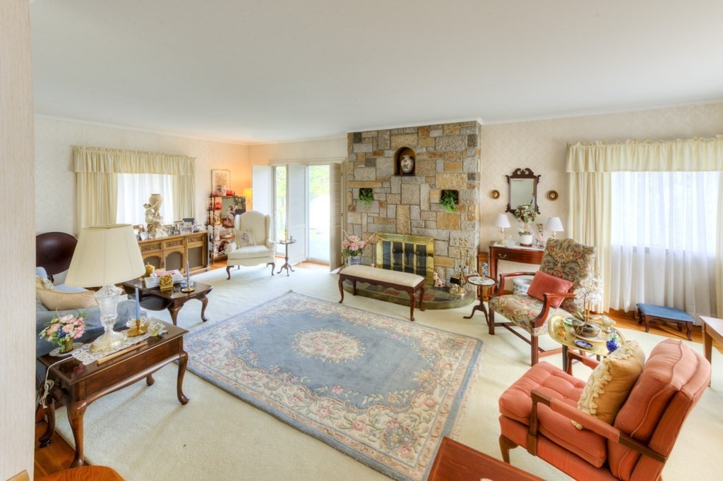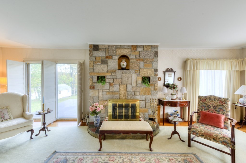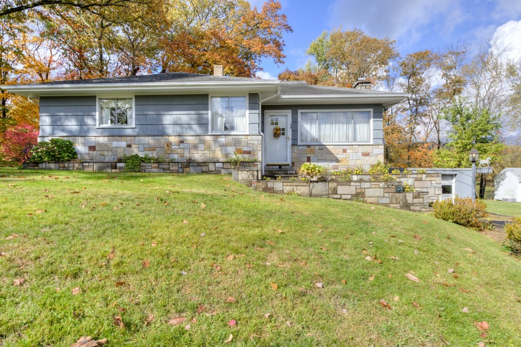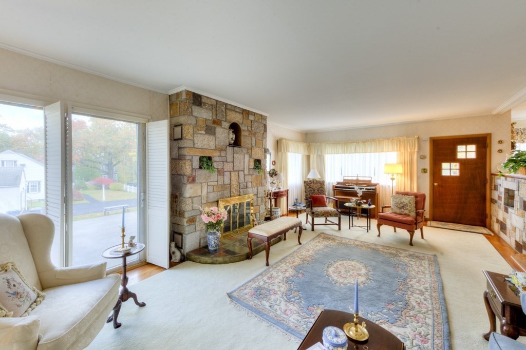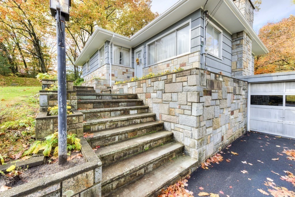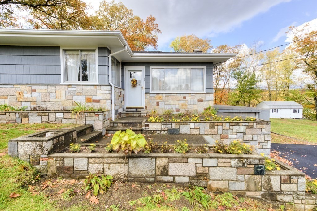 One owner Mid Century Modern Ranch built with custom stone work inside and out. Large main living room with a fireplace and hardwood floors. Step up to the open concept cabinet filled kitchen and dining room, perfect for entertaining and comfortable living. Two bedrooms and a guest bath off the back hall for complete privacy. A second fireplace is located in a semi finished area in the basement with a full size window and a door to the rear patio overlooking Hall Pond. Meticulously and lovingly maintained as originally built, just add your personal style and touches. Just off route 70 for easy access to Worcester, Shrewsbury, route 140 and I-290.