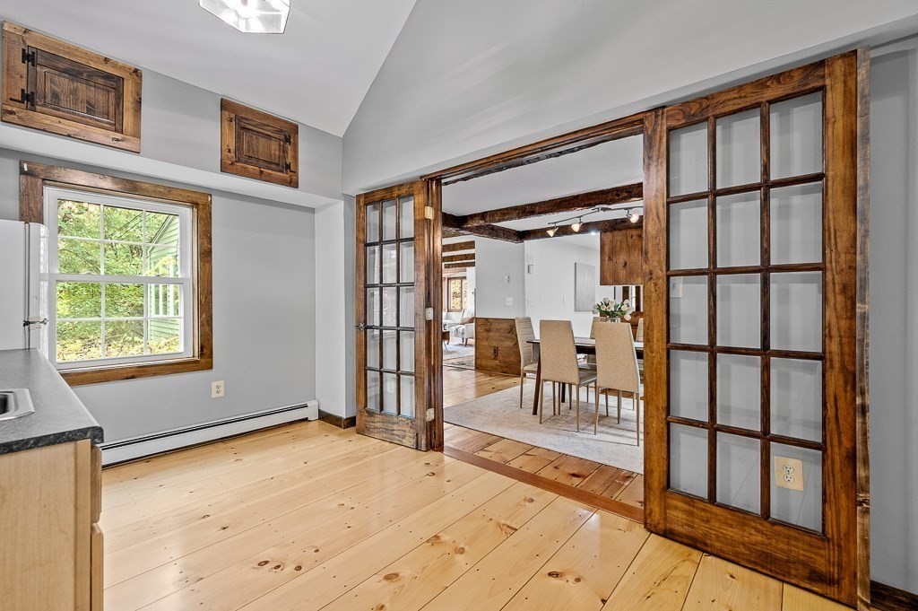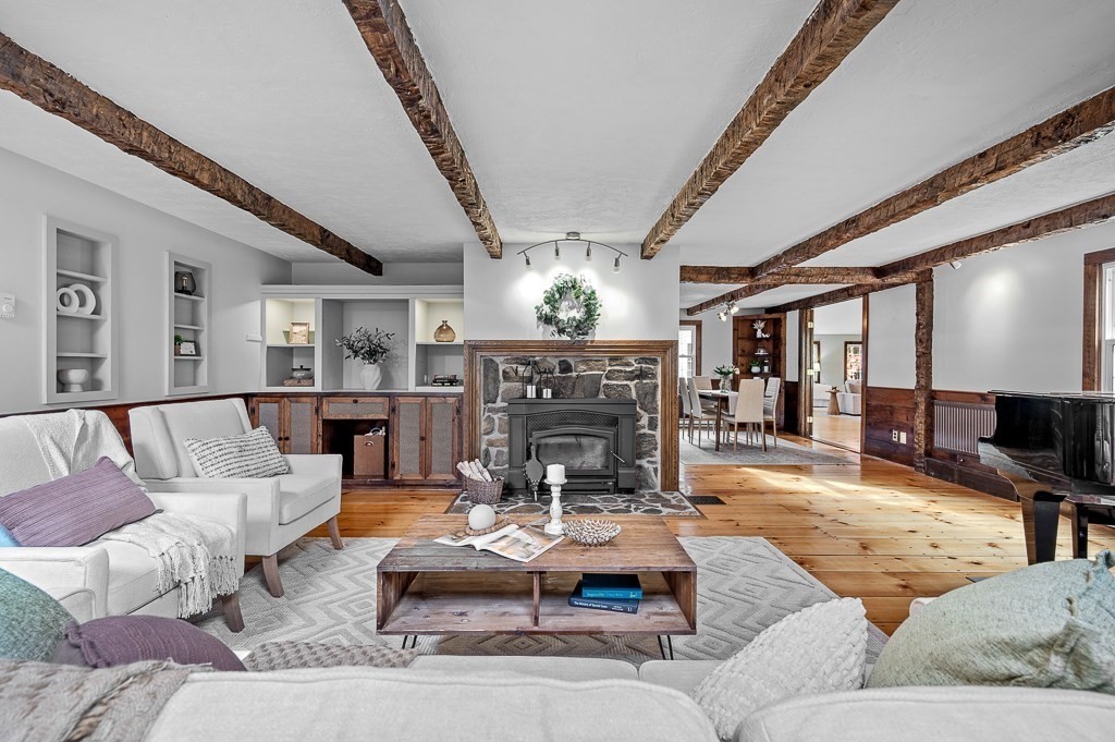 Are you seeking something a little north of ordinary in the bucolic town of Bolton? Here you go! This well-maintained 4-5 bedroom, 3 full bath home exudes rustic charm & serenity of its natural surroundings with garden space galore. Wind down in the freshly painted, window-filled living room w/stone fireplace mantel, beamed ceilings, & plenty of hangout space; enjoy meals in the dining room w/built-in hutch. The sizable, fully applianced kitchen comes complete w/propane gas stove for the chef du jour. Now, the signature showpiece is an impressively sized addition w/full bath, laundry, wet bar, & balcony loft space ideal for an office/play area. Whether you use this gem for a 1st floor master suite or simply extra living space, you choose! You'll find 2 more bedrooms on the 1st floor near another full bath; upstairs suite has a full bath, bedroom, and a full dressing area that could convert back into a bonus room. Garage-lovers take note, this one is oversized & heated! Title V in hand