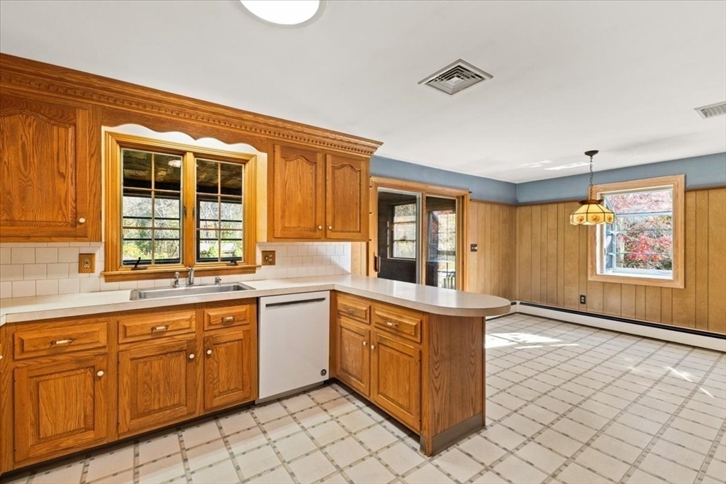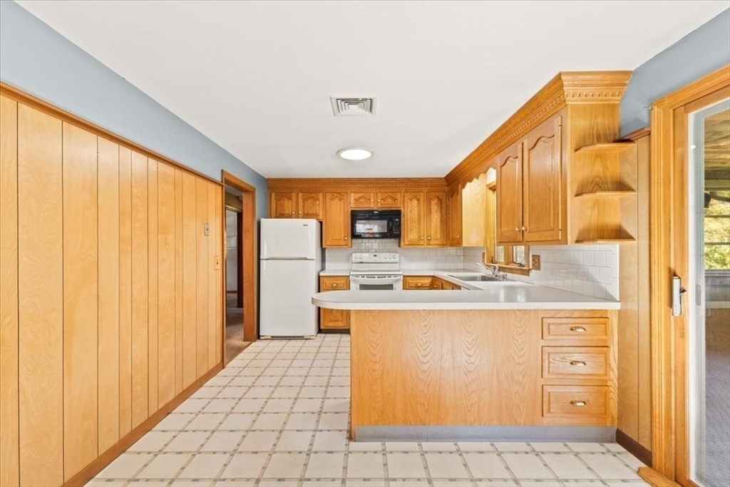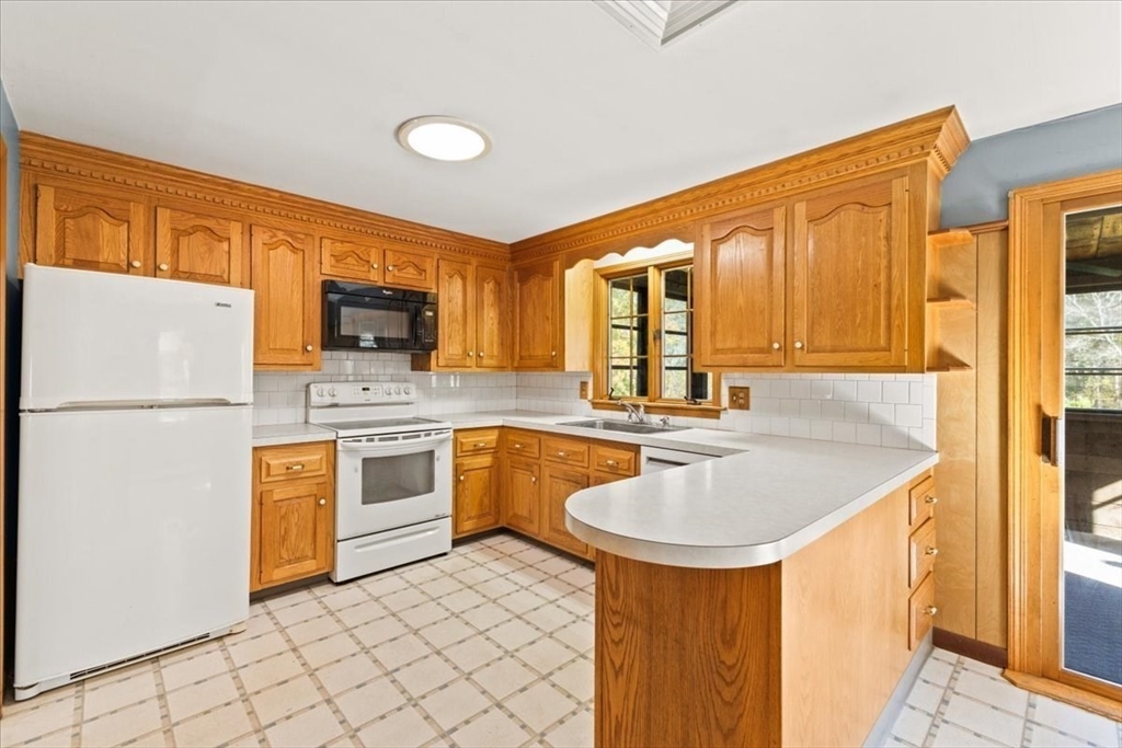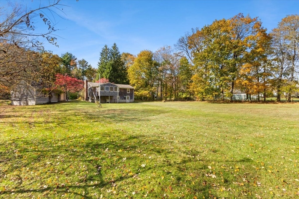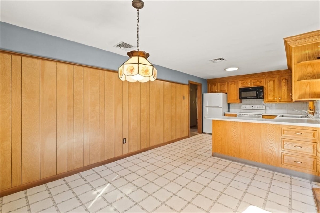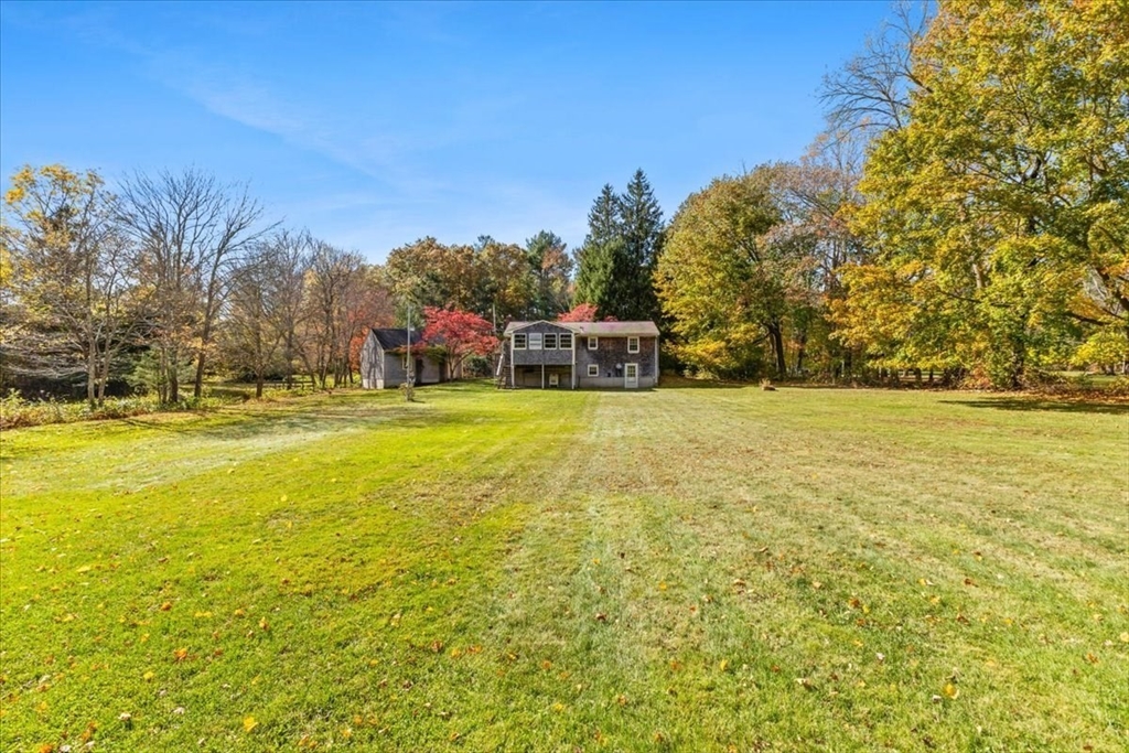 Welcome to 38 South Washington Street! Nestled on nearly 3 acres, this charming 3-bedroom Raised Ranch combines comfort, space, and versatility. Step up into the living room and you will find a beautiful bay window that fills the space with natural light, wall to wall carpet and a cozy gas fireplace—perfect for those cold winter nights. The kitchen offers ample cabinetry, a breakfast nook, and an eat-in area, ideal for both everyday meals and entertaining. Enjoy the tranquil setting from the screened-in porch overlooking the expansive back yard. Partially finished walk-out lower level provides a great space for a game room or entertainment area, complete with a bar, recessed lighting, carpet, and a convenient washroom—plus plenty of storage. A detached two-car garage adds even more value to this wonderful property. Gas heat, central ac, central vac and soon a new septic are added bonuses. With some sweat equity you can make this home your home. Call today.