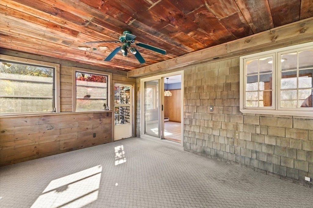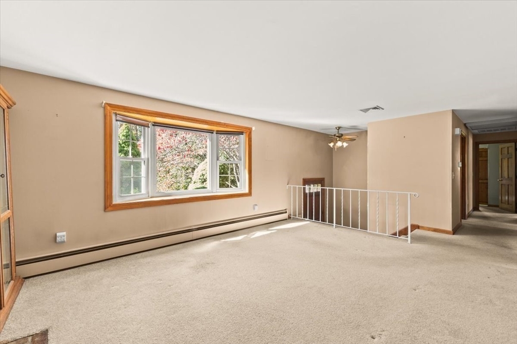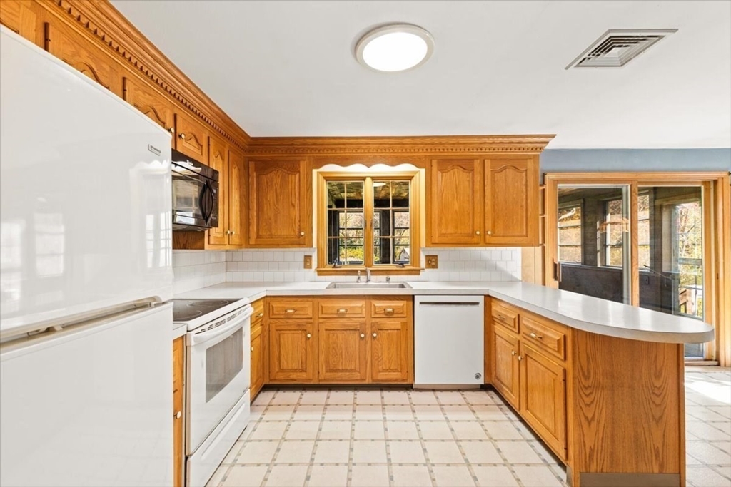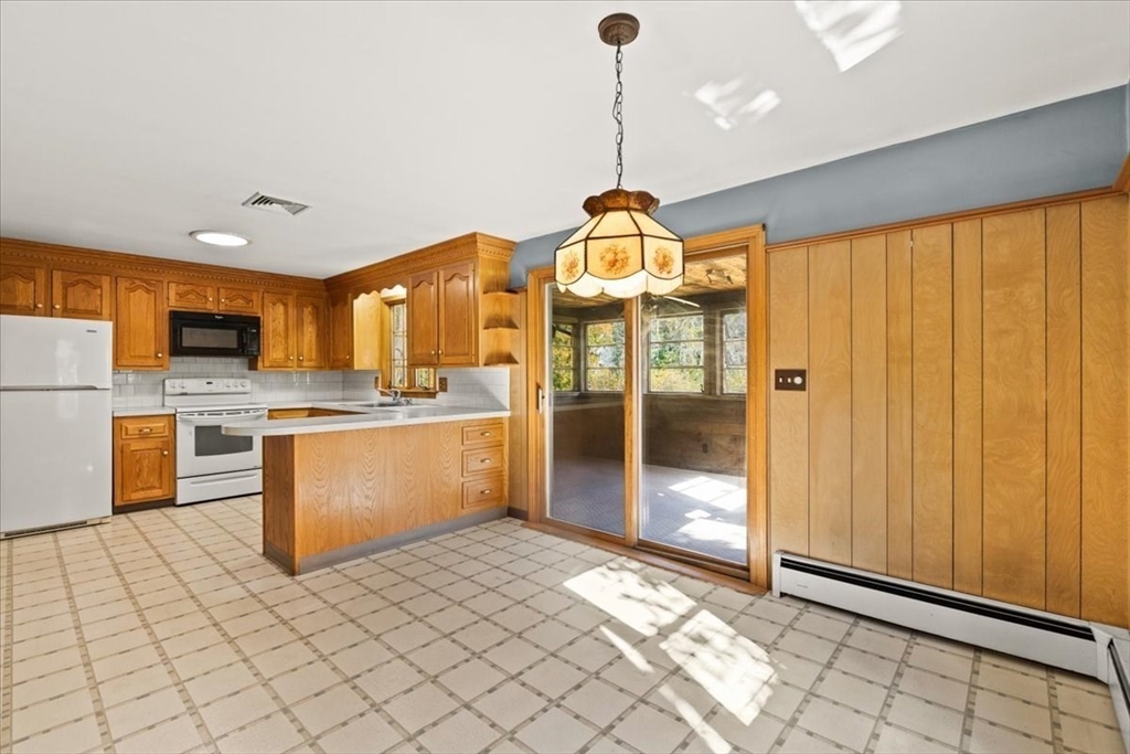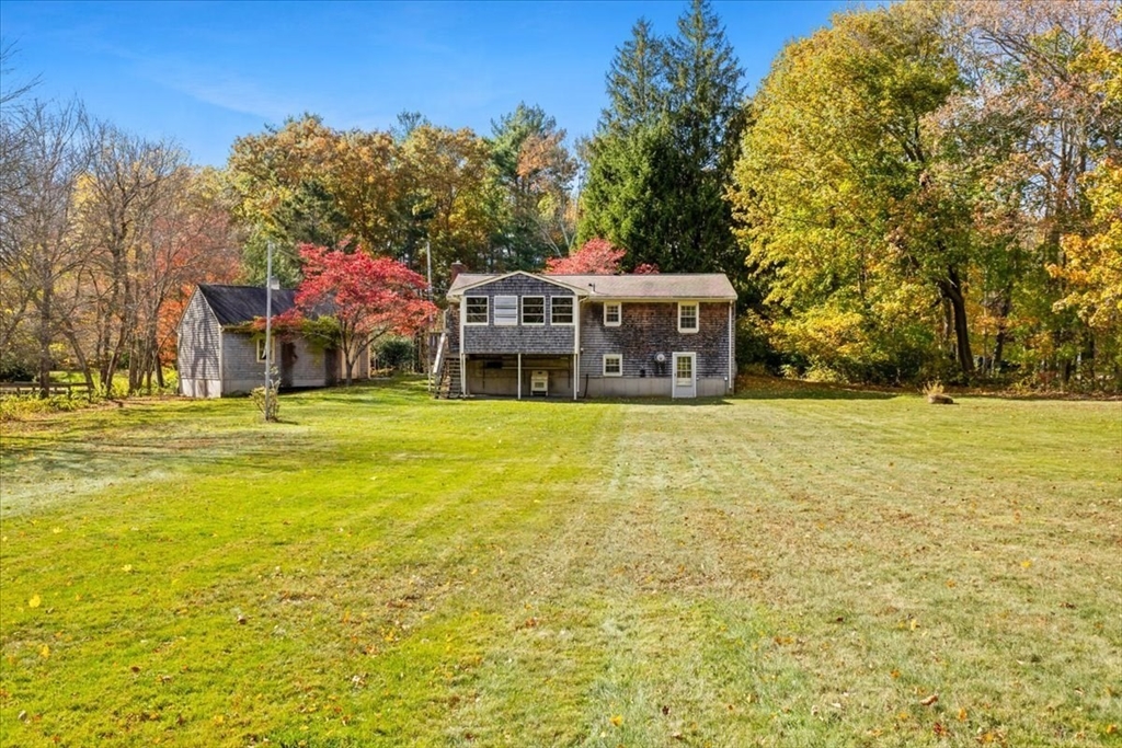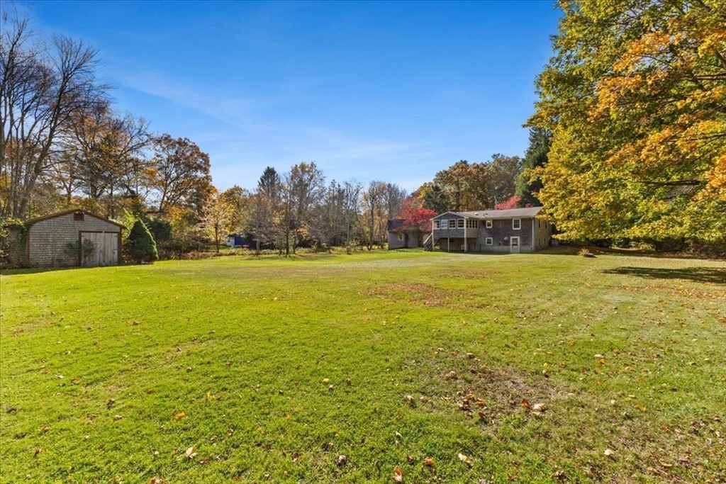 Welcome to 38 South Washington Street! Nestled on nearly 3 acres, this charming 3-bedroom Raised Ranch combines comfort, space, and versatility. Step up into the living room and you will find a beautiful bay window that fills the space with natural light, wall to wall carpet and a cozy gas fireplace—perfect for those cold winter nights. The kitchen offers ample cabinetry, a breakfast nook, and an eat-in area, ideal for both everyday meals and entertaining. Enjoy the tranquil setting from the screened-in porch overlooking the expansive back yard. Partially finished walk-out lower level provides a great space for a game room or entertainment area, complete with a bar, recessed lighting, carpet, and a convenient washroom—plus plenty of storage. A detached two-car garage adds even more value to this wonderful property. Gas heat, central ac, central vac and soon a new septic are added bonuses. With some sweat equity you can make this home your home. Call today.