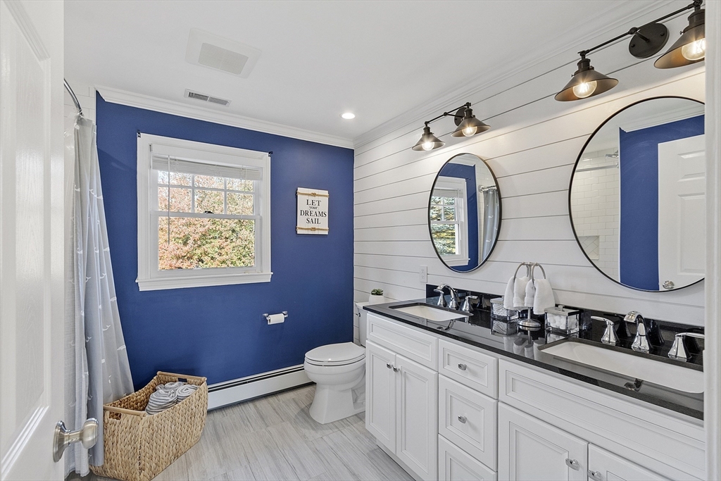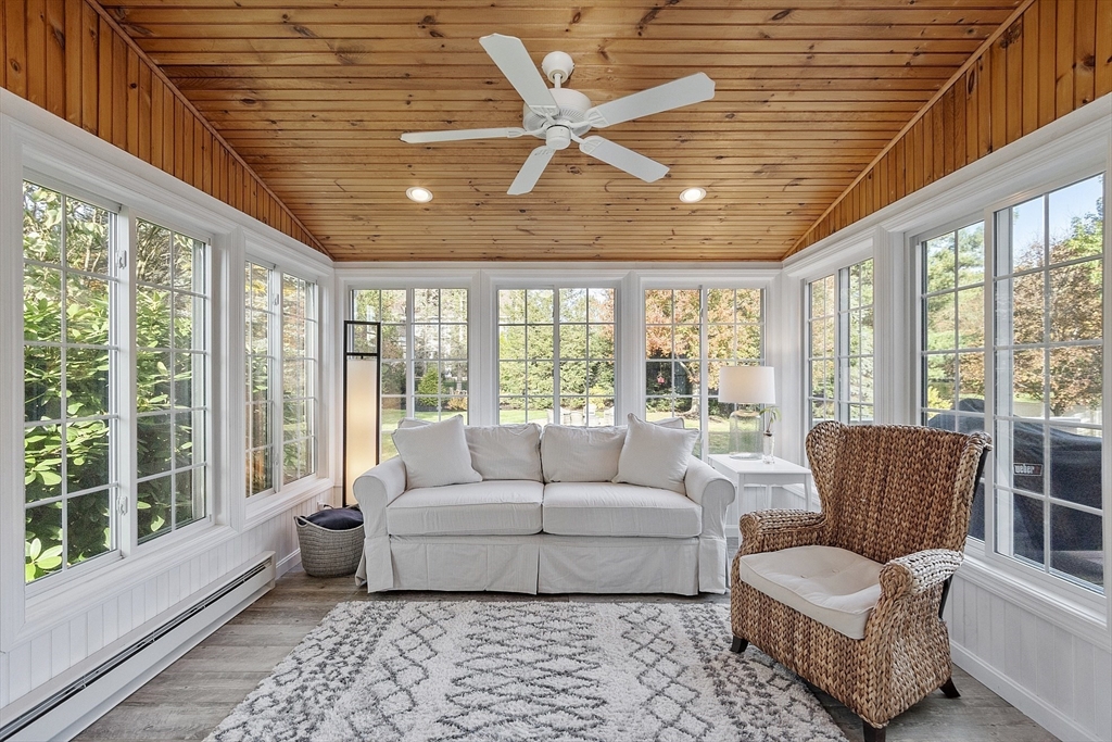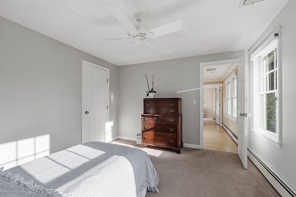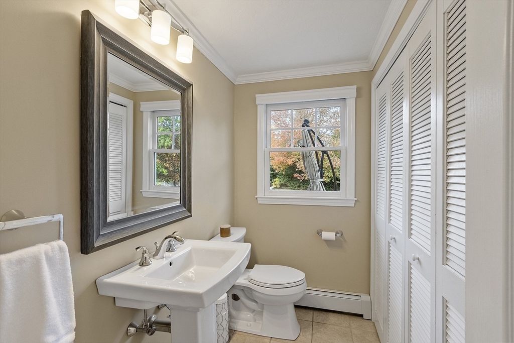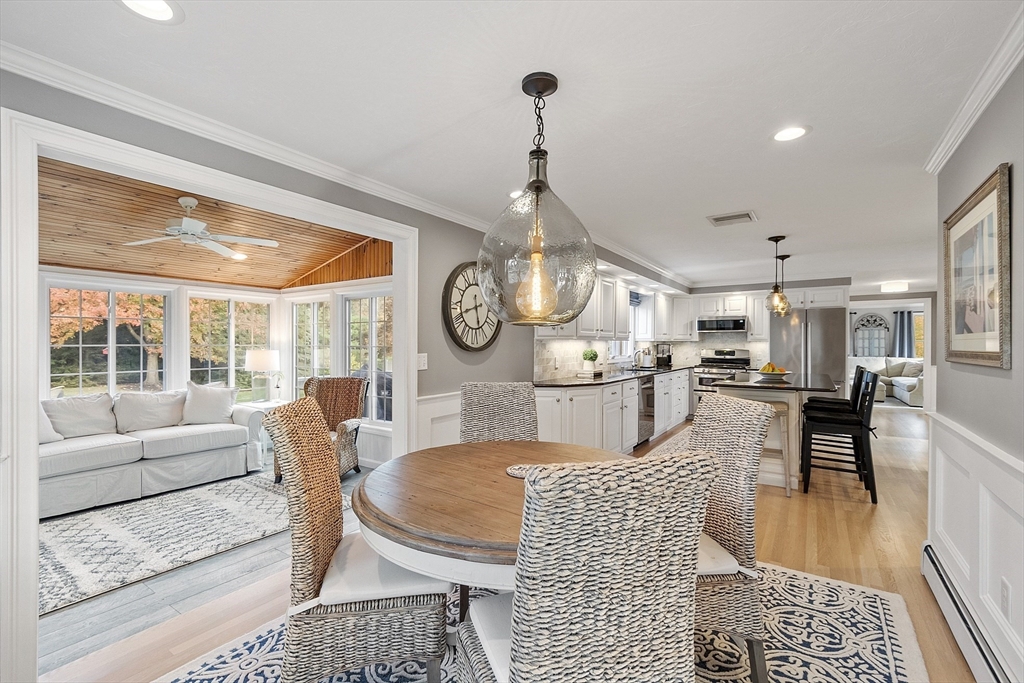 Rare offering in PRESTIGIOUS neighborhood w/ sidewalk & no thru traffic! PRIDE OF OWNERSHIP includes remodeled kitchen w/ granite counters, tiled backsplash & under-cabinet lighting, gas cooking, external ventilation & 2 pantries. OPEN FLOOR PLAN into heated sunroom w/ door to expanded AZEK deck creates entertaining flow. More gathering space in front-to-back family room w/ gas FP. Main suite presents spacious bedroom, spa-like bath featuring granite double vanity, HEATED TILE FLOOR & custom cabinetry + expanded walk-in closet & 2nd closet. Additional bedrooms share updated bath w/ deep soaking tub, granite double vanity & shiplap walls. Finished lower level hosts mudroom & flex space for gym/office/toys. Outdoor living delights in large backyard w/ fire pit area & space for pool (front yard septic). Updates: windows, roof, boiler, water heater, heat pump, deck, flooring, paint, lighting, fencing & more at this TURNKEY home ~ what a gem! *OFFERS DUE 11/3 @ 12*