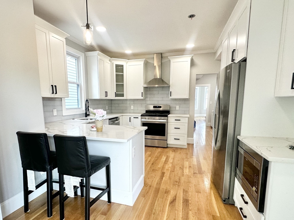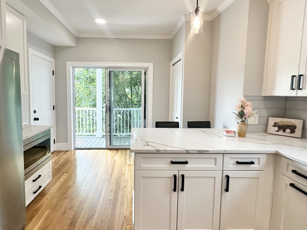 Welcome to 299 Maverick #3, an updated condo in an ideal East Boston location that features the perfect layout for this tight knit neighborhood. Walk up to your 3rd floor unit directly into the living space, with an open floor plan kitchen to your right and an oversized owner’s suite to your left. The unit’s main bathroom is right off the living area, perfect for entertaining guests. The kitchen features high end quartz countertops, upgraded appliances, and has a laundry closet. Take some time to enjoy your own private deck off the kitchen. Head back inside to check out the owner’s suite featuring ample storage for your wardrobe, and an oversized en suite bath with a dual vanity, tiled shower, and more. Additional storage is available in the basement for owners to put bikes, beach chairs, and luggage.