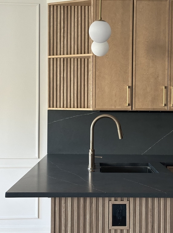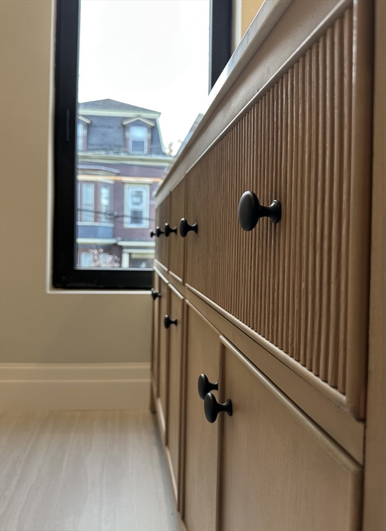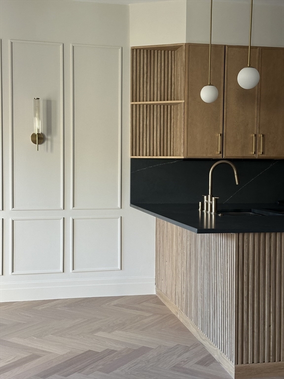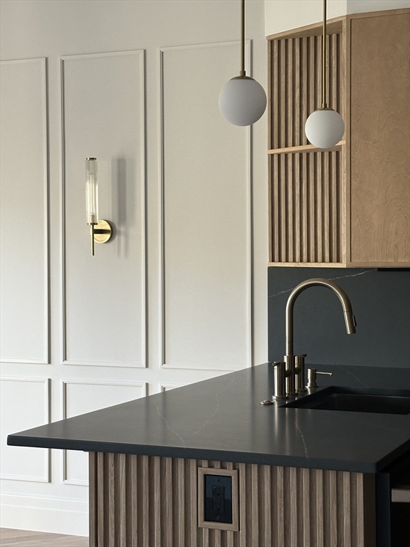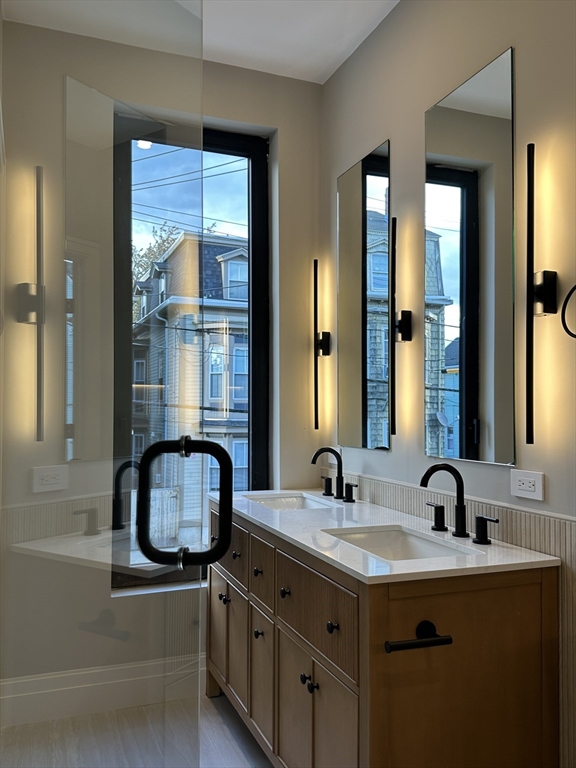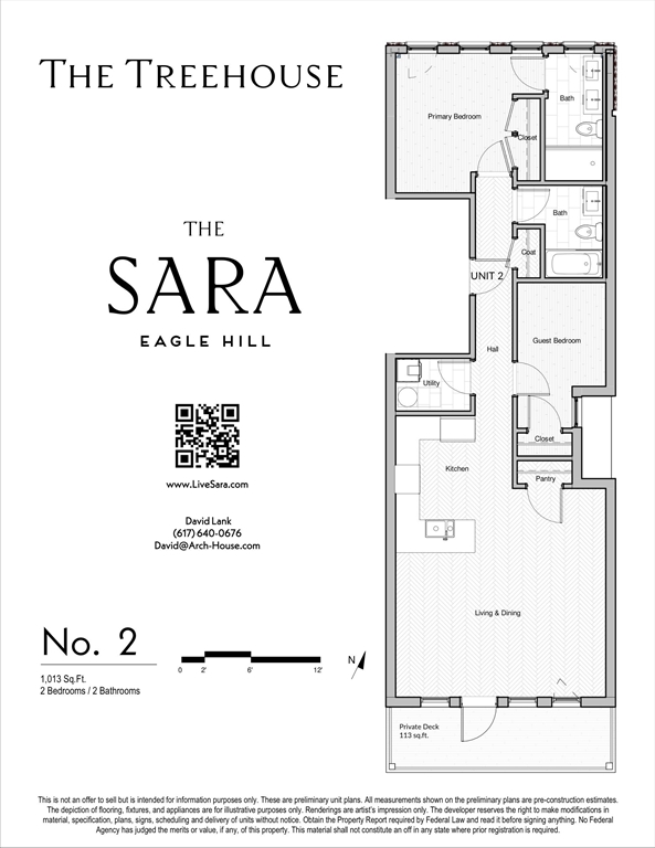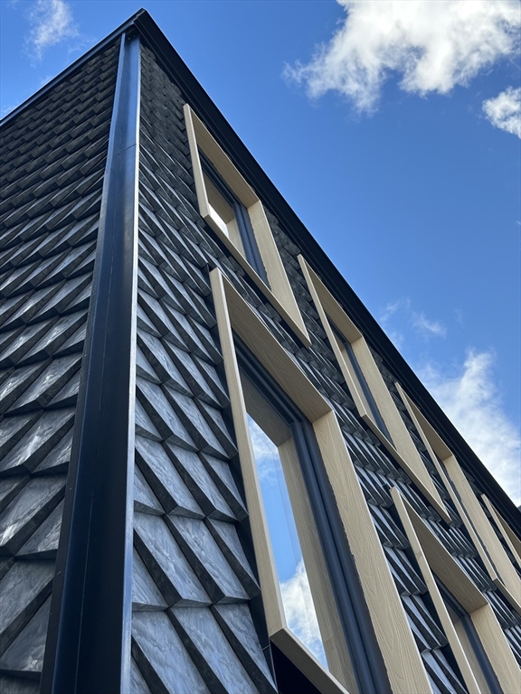 Now completing construction, The Sara is East Boston’s most design-forward new condominium building, distinguished by its sculpted façade and adjacent public art. “The Treehouse,” a 2-bed, 2-bath residence (1,013 SF + ~100 SF private deck), features an expansive open living area with the deck directly off it—perfect for seamless indoor–outdoor living. The layout easily accommodates a full living room, dining area, and flexible third zone for a bar, desk, play, or music nook. Japandi minimalism meets Parisian warmth through timber cabinetry, matte soapstone quartz counters, and curated accent lighting concept. Enjoy 9’2” ceilings, spa-like baths, and access to a 2,000 SF shared backyard oasis with lawn, grill, and pet zone. 0.3 mi to Blue Line and Greenway. Ready for occupancy in days.