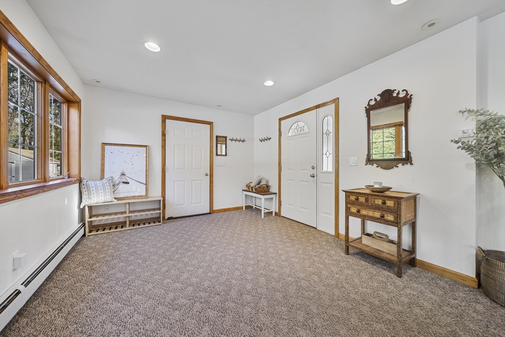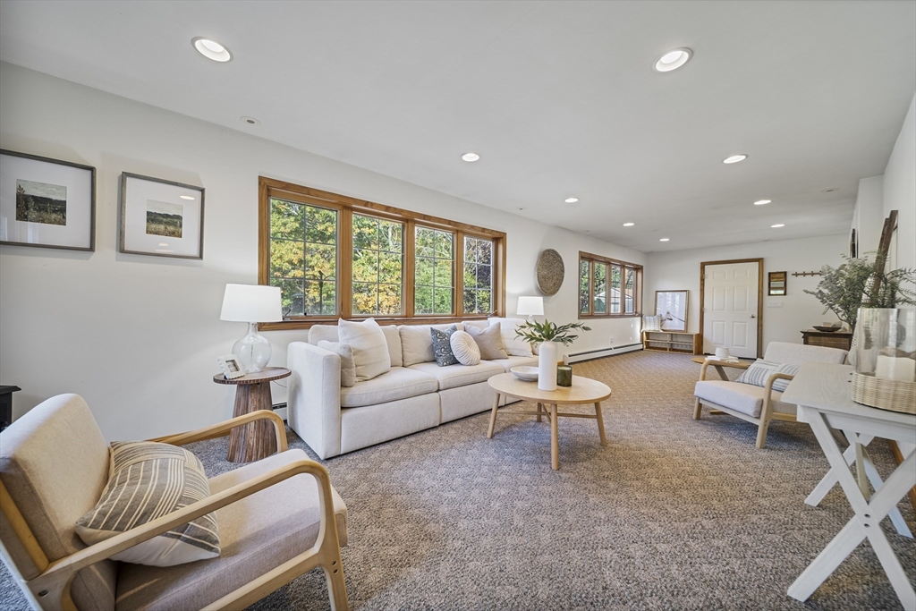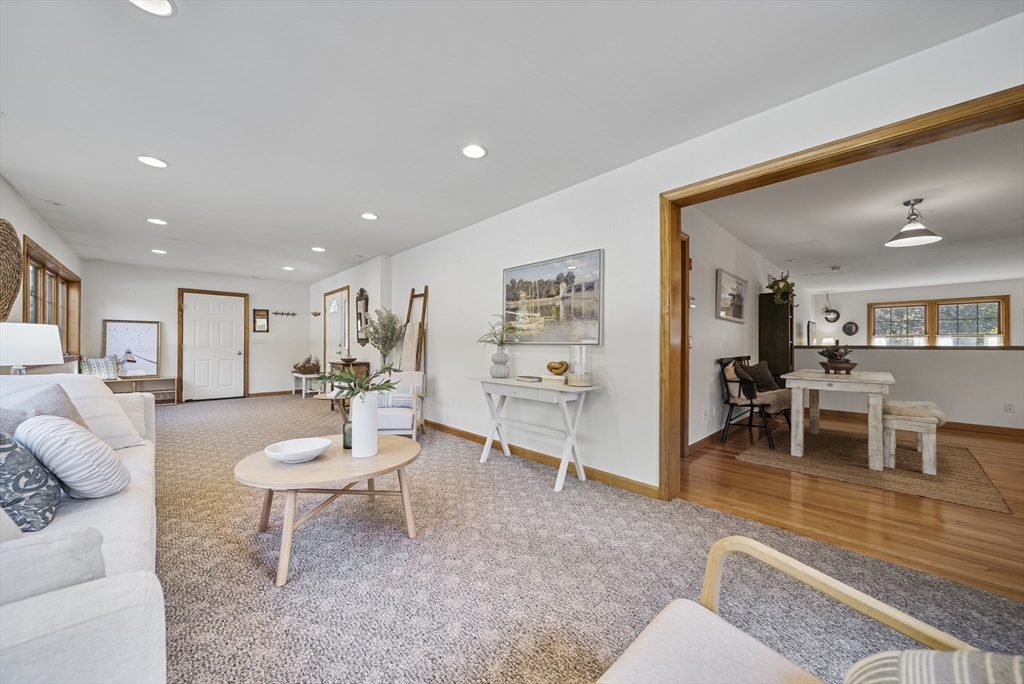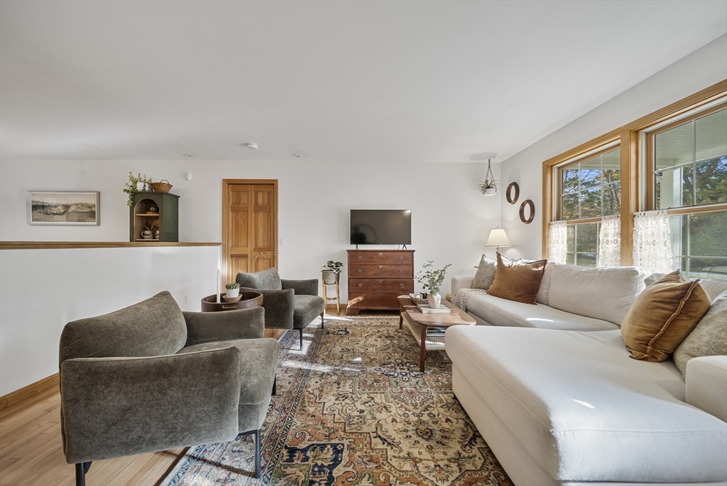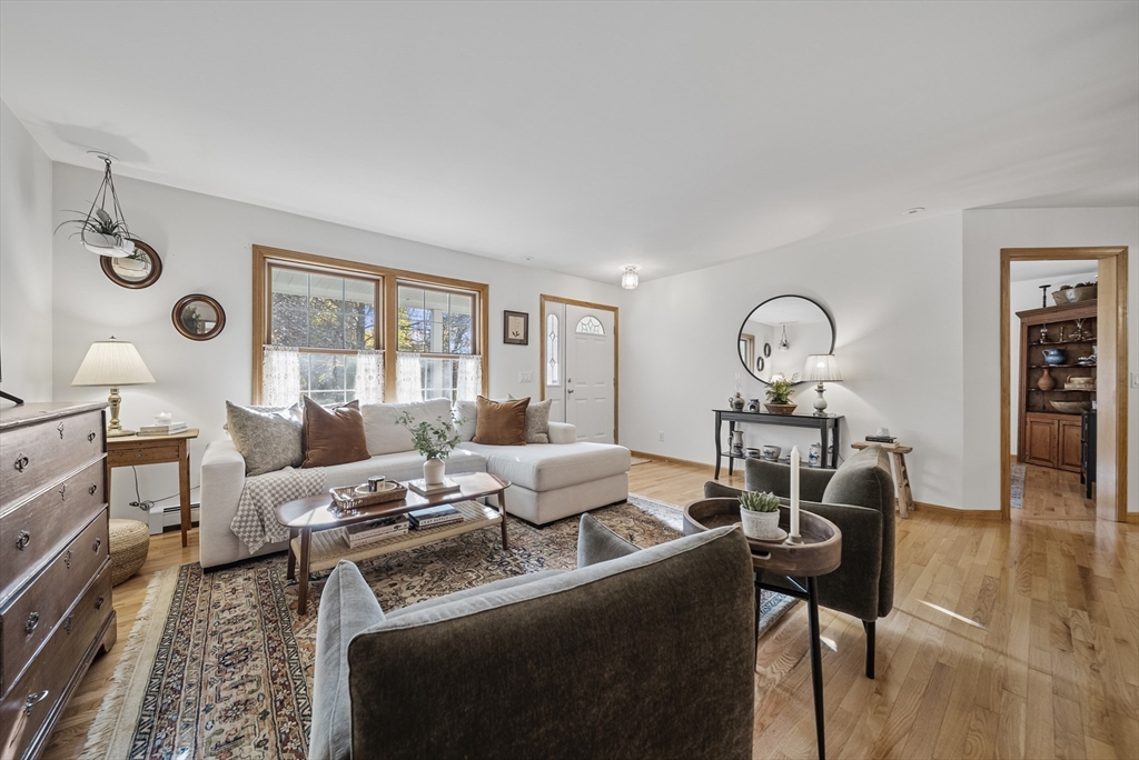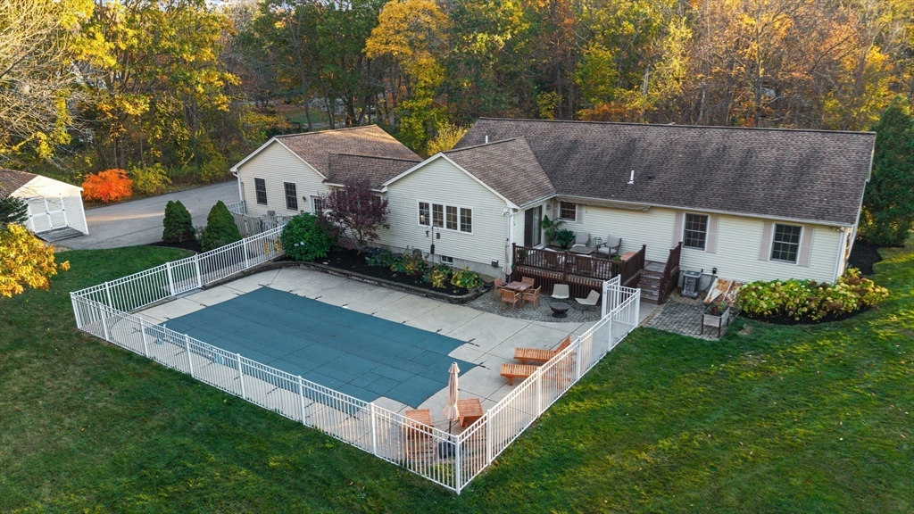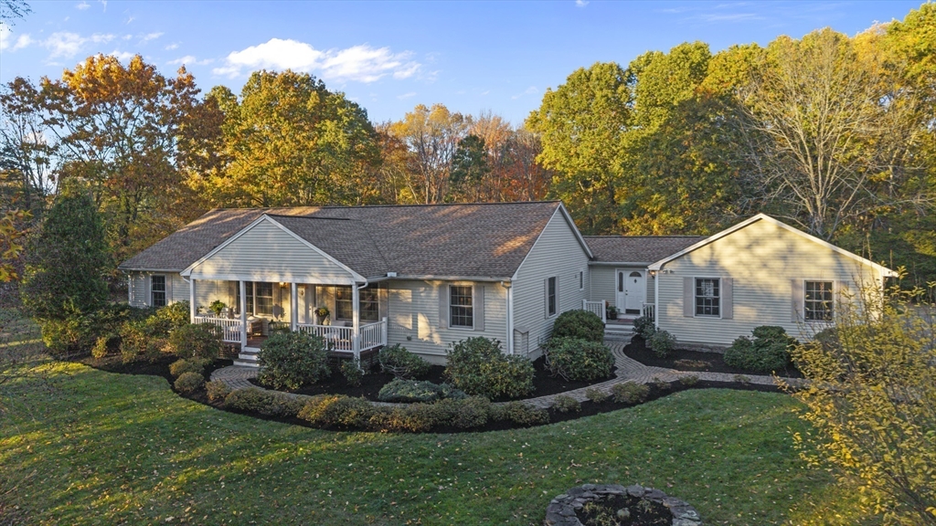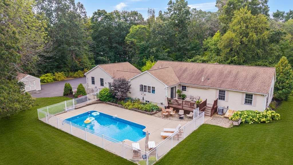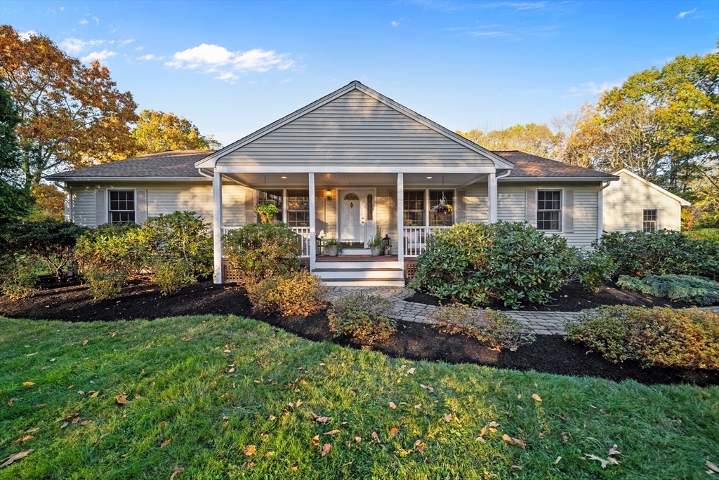 Live simply, live beautifully. This desirable West Newbury home offers space, style, and setting in equal measure. Nestled on 4.4 scenic acres, this impeccably maintained single-level home suits a variety of lifestyles. Built in 2002, the open-concept layout is perfect for daily living and entertaining. Enjoy peaceful mornings on the charming front porch, or head out back to a spacious deck, patio, and heated in-ground pool with brand-new liner. Inside, a bright kitchen features hardwood floors, stainless steel appliances, and peninsula island. Four generous bedrooms and 2.5 baths include a primary with en suite bath, laundry, and ample closets throughout. A full-height basement offers plenty of future potential, and the oversized two-car garage handles New England winters with ease. Access to I-95 is effortless, less than 10 minutes to downtown Newburyport, in the top-rated Pentucket School District - with Governor’s Academy also just a stone’s throw away. This one won't last long!