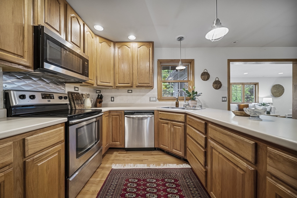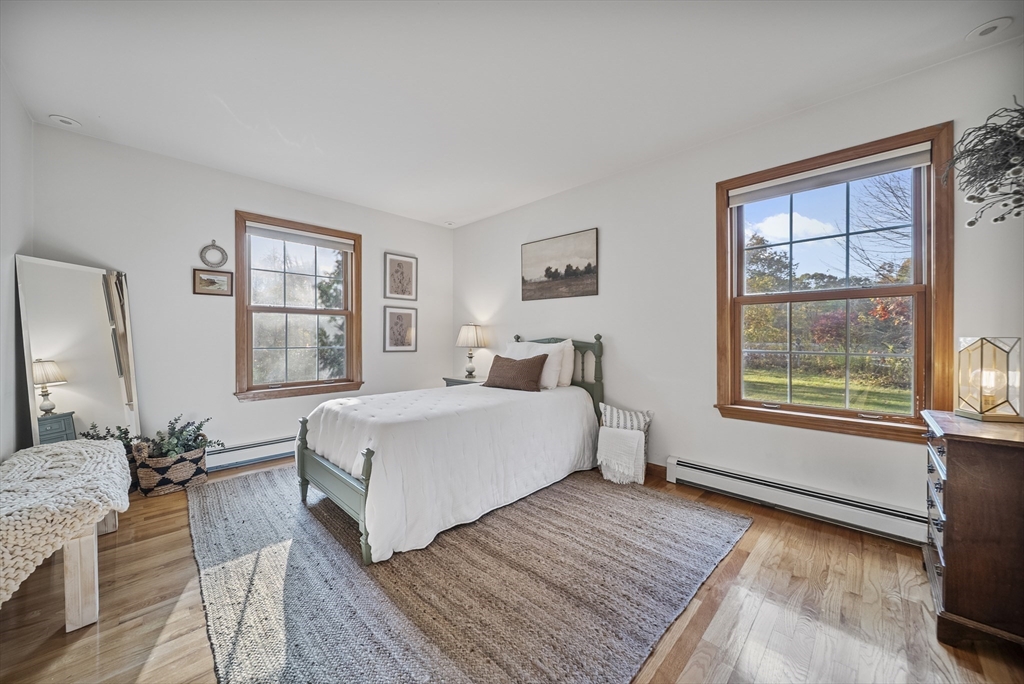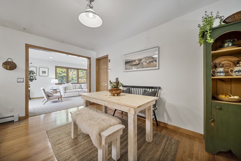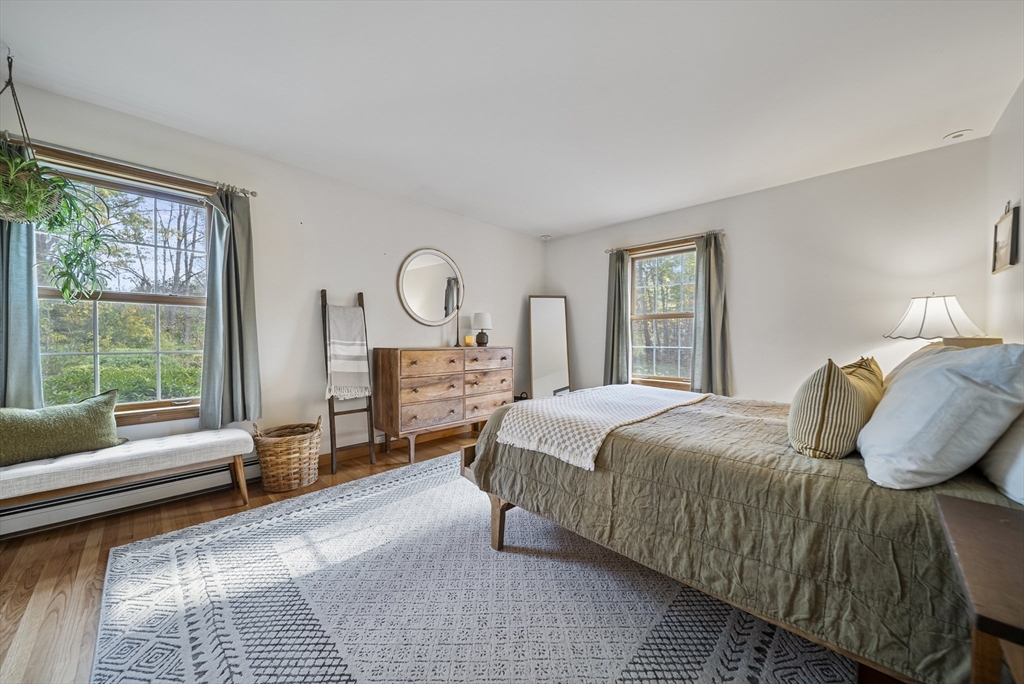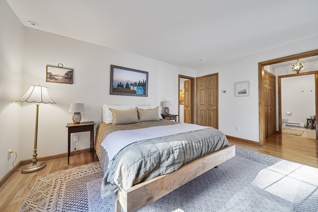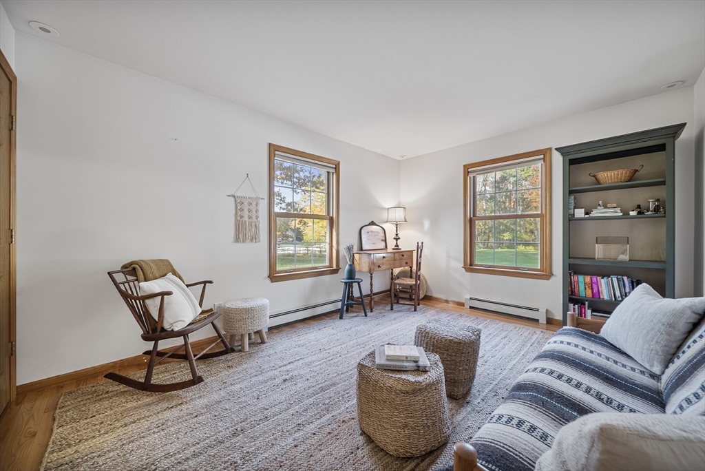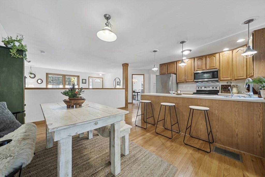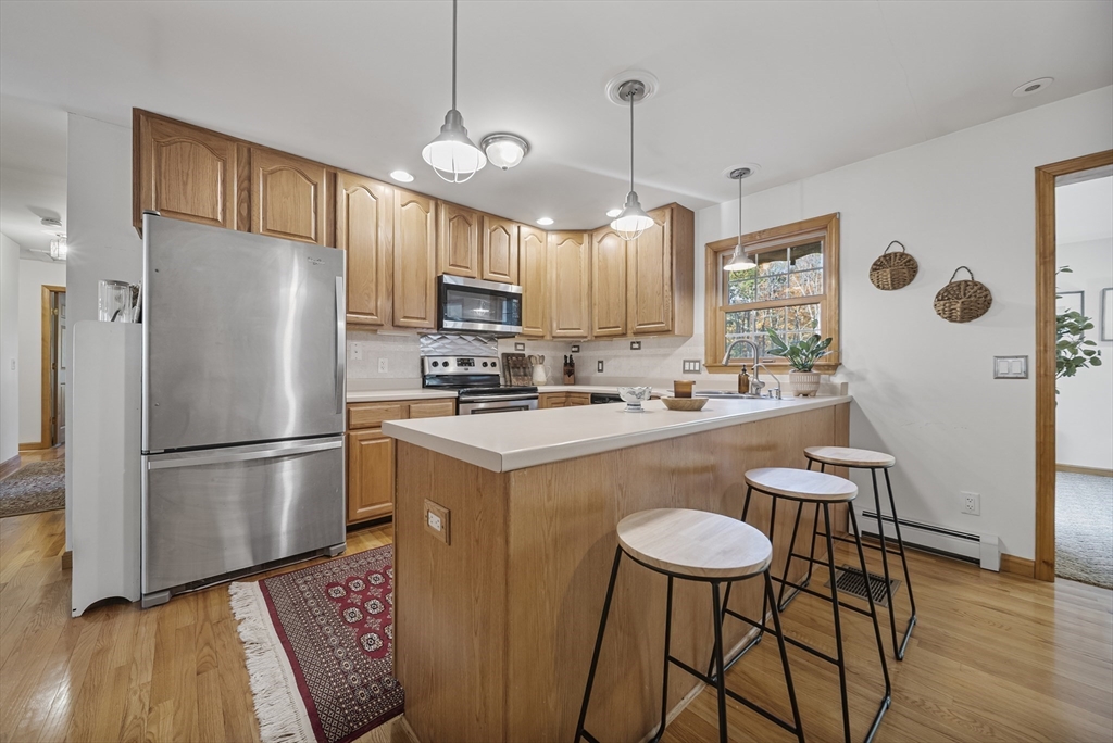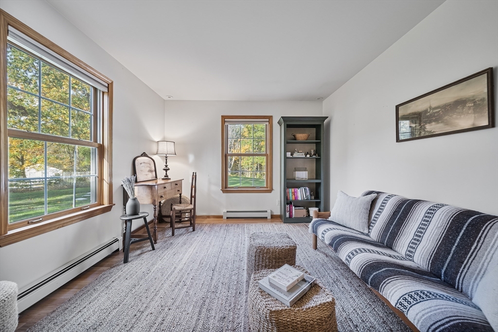 Live simply, live beautifully. This desirable West Newbury home offers space, style, and setting in equal measure. Nestled on 4.4 scenic acres, this impeccably maintained single-level home suits a variety of lifestyles. Built in 2002, the open-concept layout is perfect for daily living and entertaining. Enjoy peaceful mornings on the charming front porch, or head out back to a spacious deck, patio, and heated in-ground pool with brand-new liner. Inside, a bright kitchen features hardwood floors, stainless steel appliances, and peninsula island. Four generous bedrooms and 2.5 baths include a primary with en suite bath, laundry, and ample closets throughout. A full-height basement offers plenty of future potential, and the oversized two-car garage handles New England winters with ease. Access to I-95 is effortless, less than 10 minutes to downtown Newburyport, in the top-rated Pentucket School District - with Governor’s Academy also just a stone’s throw away. This one won't last long!