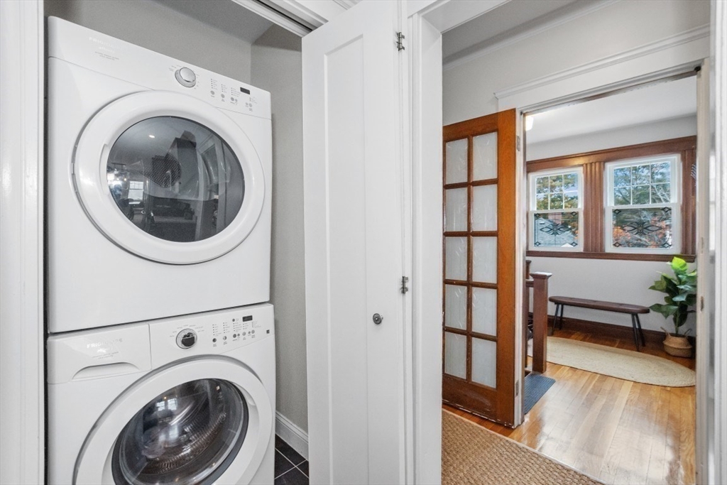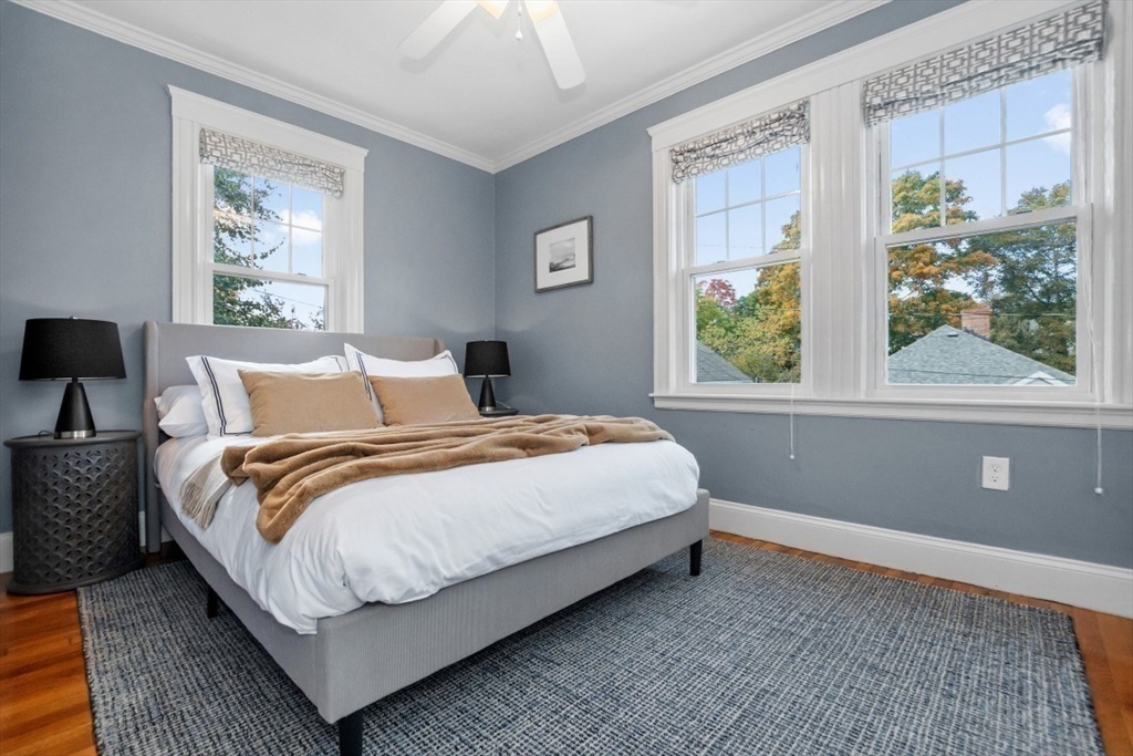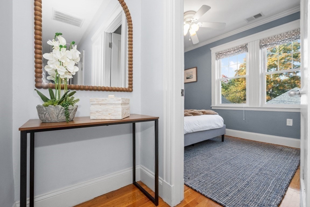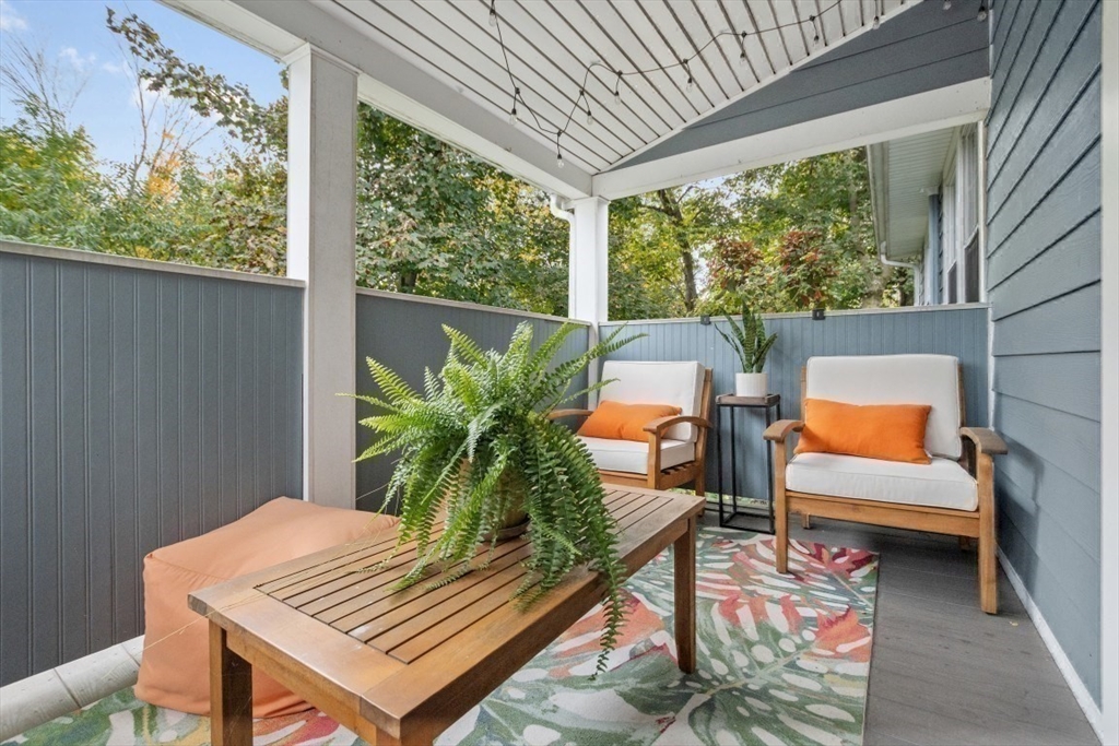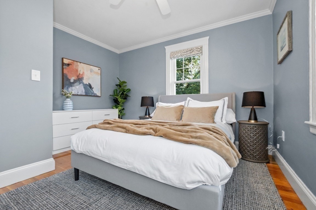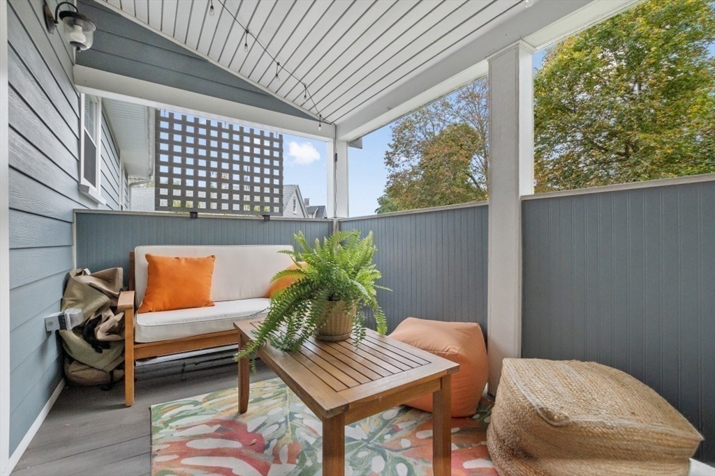 Gorgeous Top-Floor Condo in Prime Roslindale Location! Welcome to this beautifully renovated top-floor condo, filled with natural light and elegant details throughout. Featuring 2 spacious bedrooms and 2 full baths—including a stunning en-suite in primary bedroom—this home offers both comfort and style.The well-designed open floor plan boasts gleaming hardwood floors, custom built-ins, and stylish kitchen, complete with granite countertops and stainless steel appliances. Enjoy newly installed (2025) energy efficient Heat Pump for both heating and cooling, (central air), two deeded parking spaces, and private porch, perfect for morning coffee or evening relaxation.Step outside to a shared yard with garden area, adding touch of nature to city living. Located just steps from the commuter rail, and all that Roslindale Village has to offer, this condo combines convenience, charm, and modern living into one beautiful package.