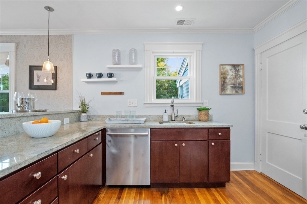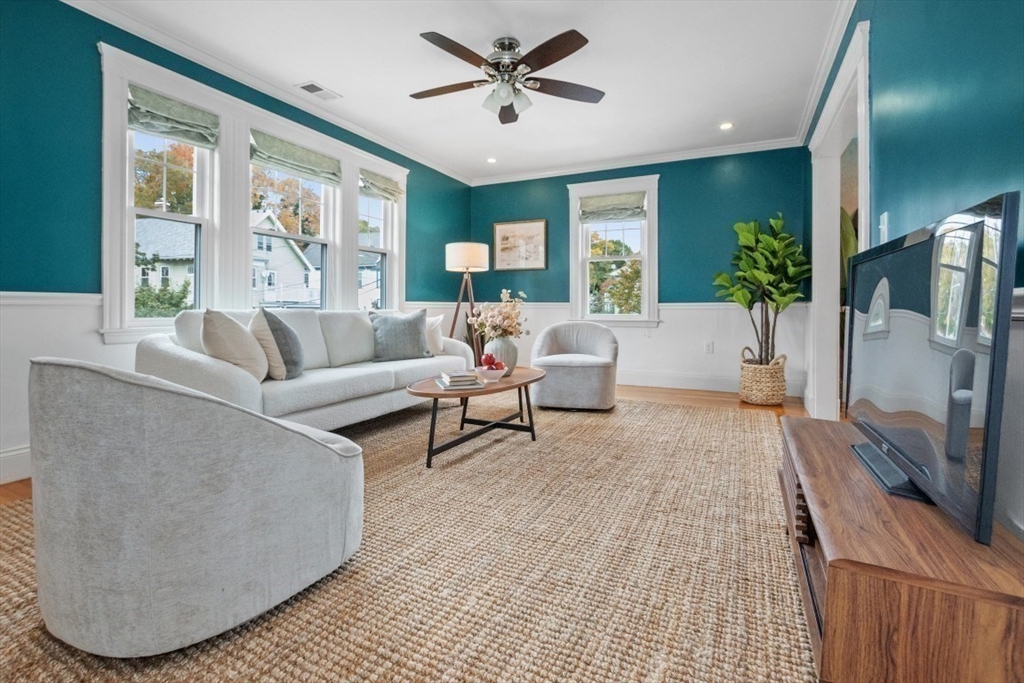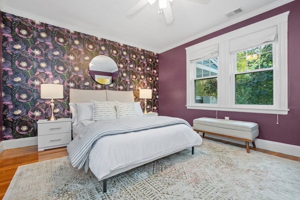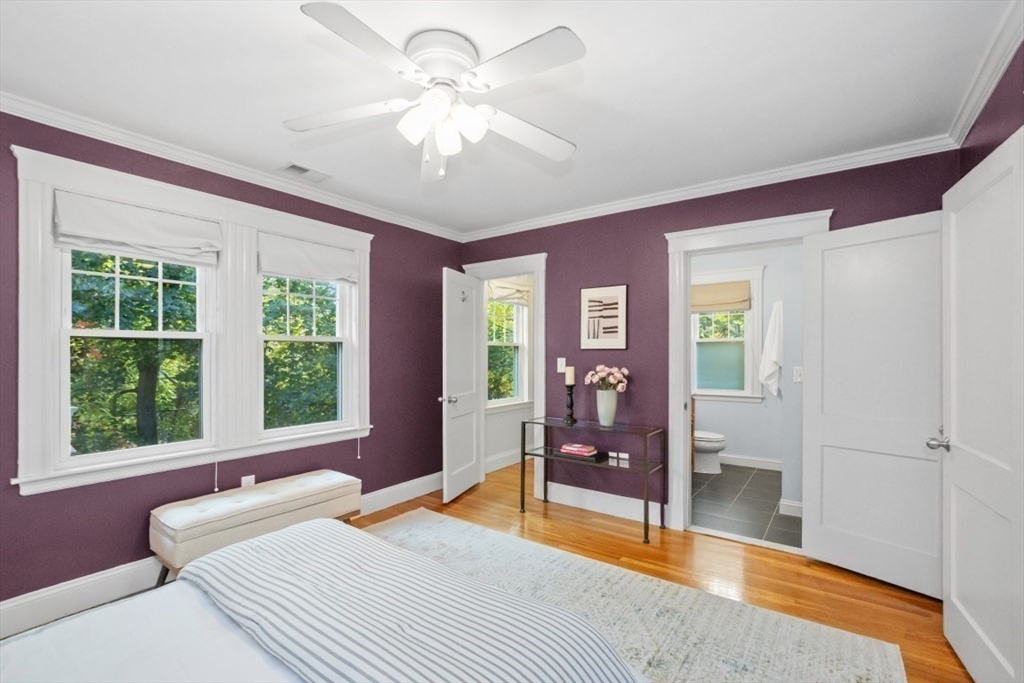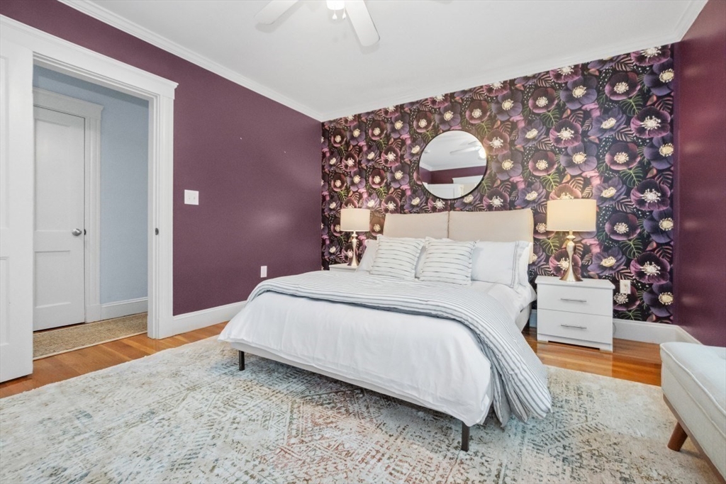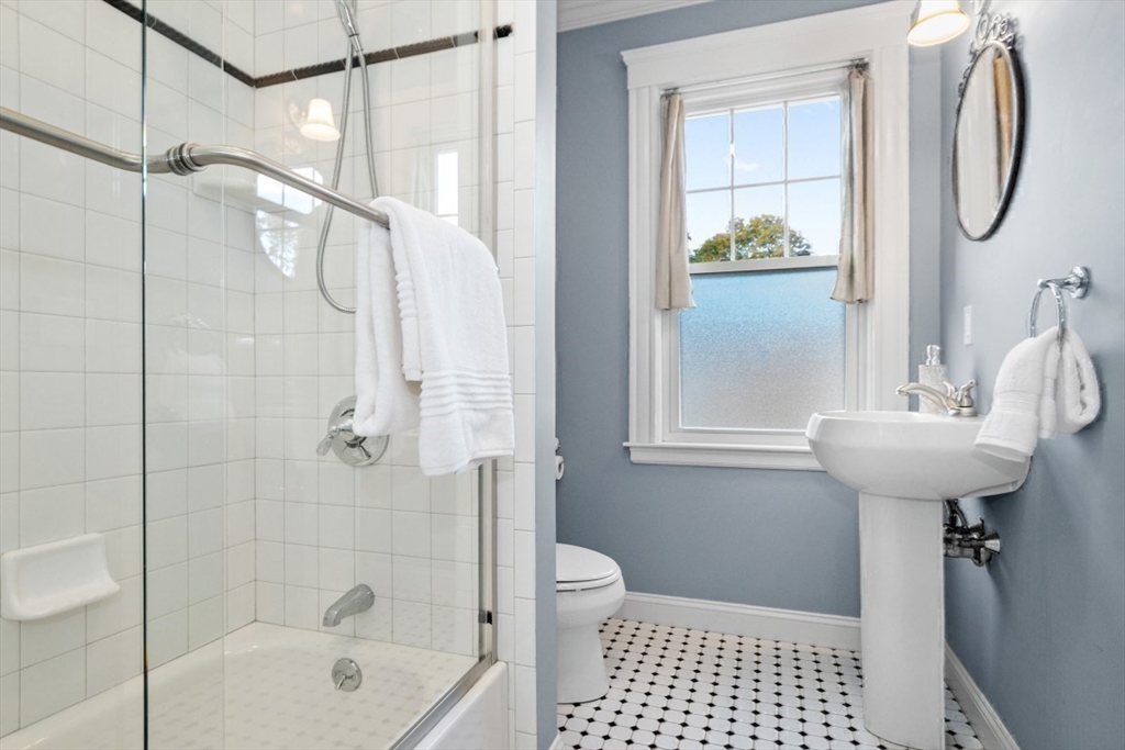 Gorgeous Top-Floor Condo in Prime Roslindale Location! Welcome to this beautifully renovated top-floor condo, filled with natural light and elegant details throughout. Featuring 2 spacious bedrooms and 2 full baths—including a stunning en-suite in primary bedroom—this home offers both comfort and style.The well-designed open floor plan boasts gleaming hardwood floors, custom built-ins, and stylish kitchen, complete with granite countertops and stainless steel appliances. Enjoy newly installed (2025) energy efficient Heat Pump for both heating and cooling, (central air), two deeded parking spaces, and private porch, perfect for morning coffee or evening relaxation.Step outside to a shared yard with garden area, adding touch of nature to city living. Located just steps from the commuter rail, and all that Roslindale Village has to offer, this condo combines convenience, charm, and modern living into one beautiful package.