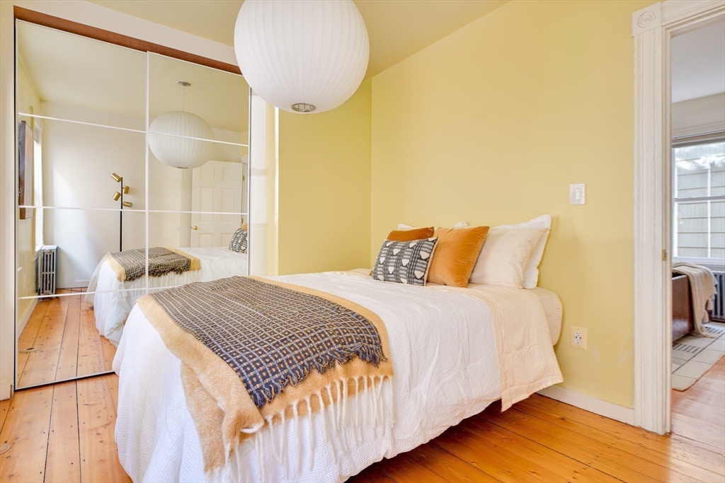 Located in Kirkland Village —steps from neighborhood icons like Savenor’s and Broadsheet—this home is as easy to love as the food and coffee around the corner. Reimagined to make 800 sq ft live large, the open plan orbits a sleek central island with a vented hood and gas range—equal parts chef’s station and conversation piece. Sunlight drapes stone counters, pine floors, and bold color hits, from the deep-blue office behind glass doors to warm wood shelving and a cozy built-in dining nook. It’s the sweet spot where classic New England architecture meets fearless, design-forward choices: high ceilings, clean sightlines, and heritage textures styled with modern edge. High-velocity central air and energy-efficient systems keep comfort effortless year-round. Bedrooms read calm and minimal; living spaces invite slow mornings and lively nights. Call it Cambridge-cool: soulful, smart, and ready for your playlists, supper clubs, and Sunday Broadsheet runs. Near Harvard, Inman & Union Squares.