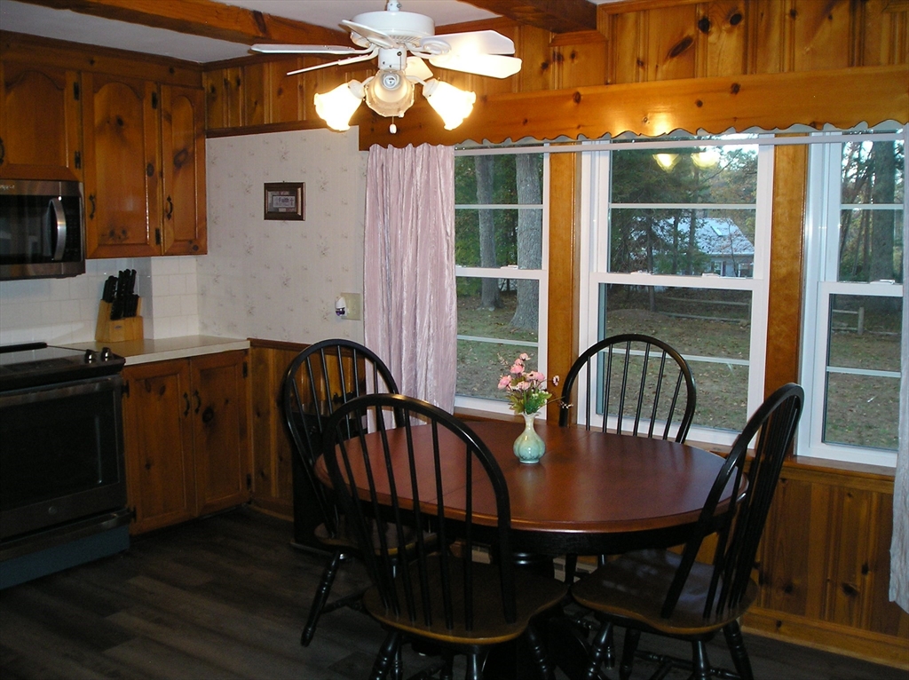 Located at 598 Elm St E, in the inviting community of Raynham, Massachusetts, this single-family residence in Bristol County presents an exceptional opportunity to own a move-in ready home. Imagine relaxing in the living room, where the warmth of the fireplace complements the architectural interest of the beamed ceiling, creating a cozy and inviting atmosphere for gatherings or quiet evenings. Conveniently located close to Route 104, 138, 24 and 495. Features include newer roof, new shed, newer windows, new flooring in kitchen, new deck, refinished hardwood floors, remodeled bathroom, heating system inspected and cleaned on 10/08/25 and home was recently painted a few months ago. Other features include central air and oversize 1 car garage with breezeway. All appliances included with the sale including the washer and dryer which is approximately 3 years old. The refrigerator, stove and microwave are around 1 1/2 years old. Beautiful lot of land just under a 1/2 acre.