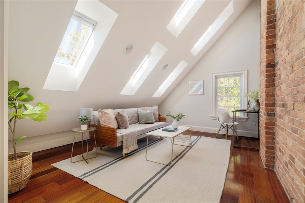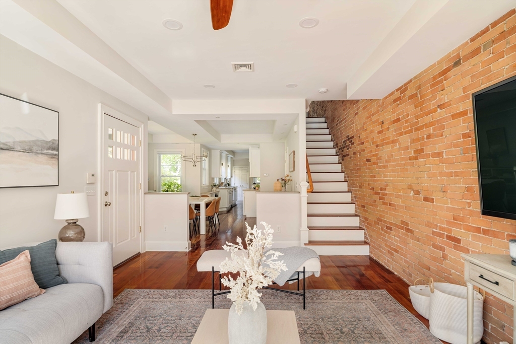 Welcome to 32 Hall Ave, Somerville, a 4-bed, 3.5-bath townhome that seamlessly blends modern conveniences with Somerville charm. Nestled in the vibrant Davis Square neighborhood, this home offers elegant Brazilian Cherry hardwood floors, exposed brick walls, high ceilings and an abundance of natural light. Step into a spacious open concept floor plan, perfect for relaxation and entertainment. The spacious and bright living room flows nicely into a large dining room leading to the amazing chef’s kitchen. Heading upstairs, a large primary suite with a spa-like bath, laundry, and a 2nd bedroom and bath with a huge deck, complete the 2nd floor. Two more spacious bedrooms and a full bath finishes the 3rd floor. With garage parking and a 2nd outside spot, central air, a tranquil private yard and peaceful views on the deck, this oversized townhouse is not to be missed. Close to the Davis Square Red line and the new green line MBTA, and loads of restaurants and shops at your doorstep!