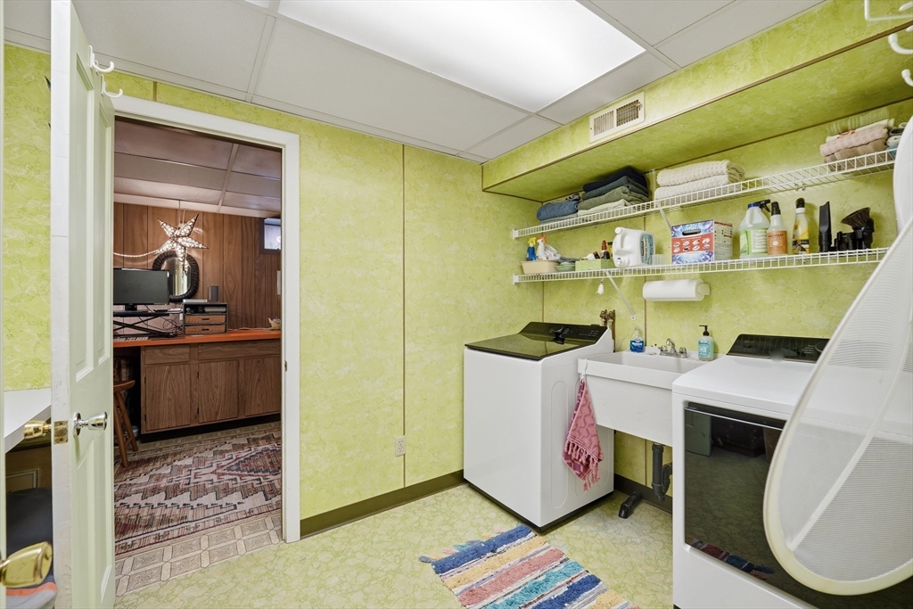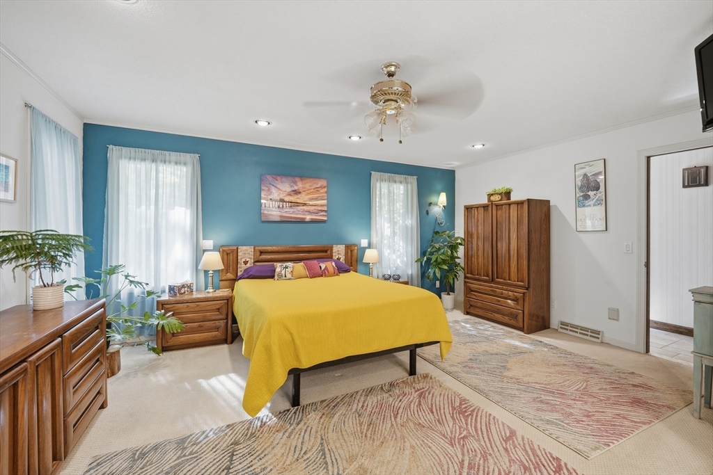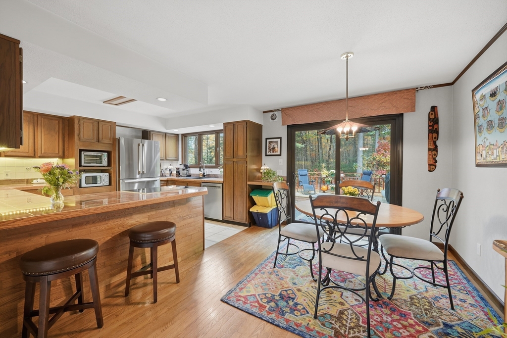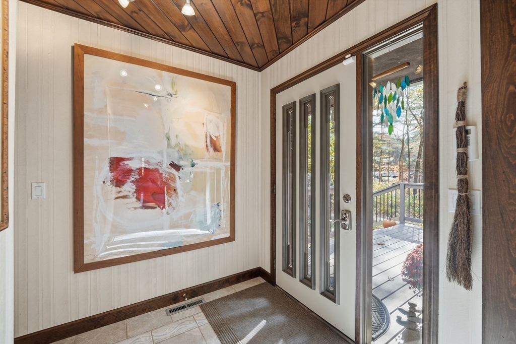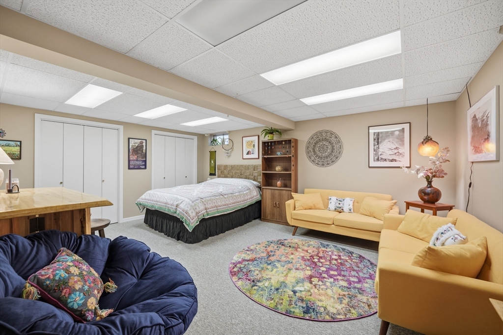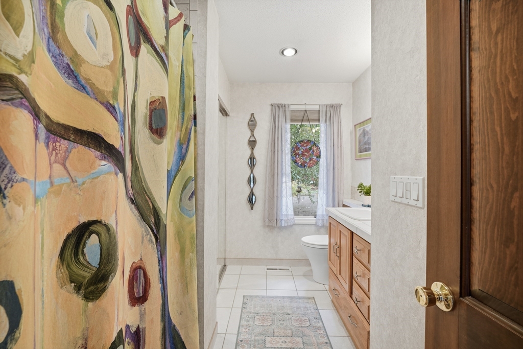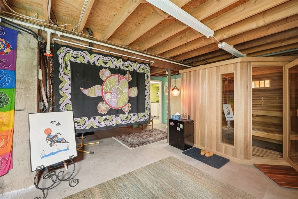 This one of a kind ranch is nestled in a private wooded setting on almost 5 acres! The walkway leads to a well maintained Coi Pond and generous decks on both the front and back of the home. (Brand new sliding glass doors.) The great room has stunning cathedral wood ceilings complete with floor to ceiling propane fireplace & wet bar. The open kitchen offers new appliances, ample storage, countertop space and a dining area. The guest bath with a soaking tub is off the living area. The large primary suite offers a walk in shower with double sinks. On the far side of the great room is the front to back versatile living space which was meant to be the 2nd & 3rd bedrooms should the buyer wants to pursue that option. The partially finished side of the basement is currently set up as another bedroom and the unfinished side has an impressive amount of space and ambience including a sauna & half bath. The laundry and office space complete the basement. This one is a must see!