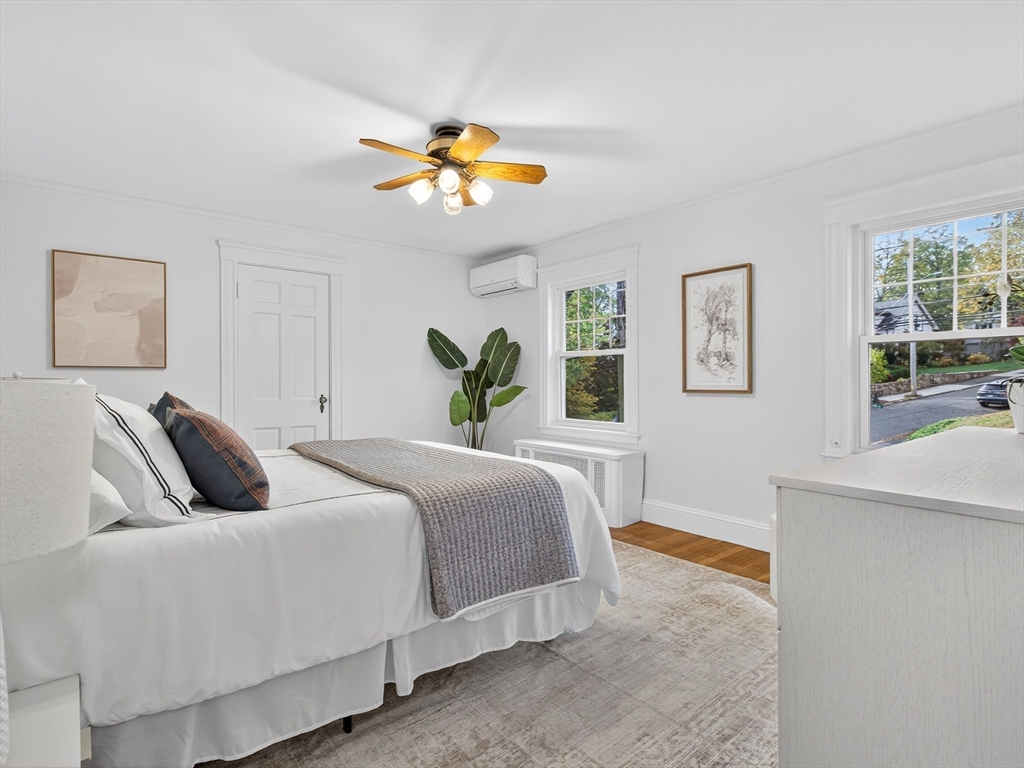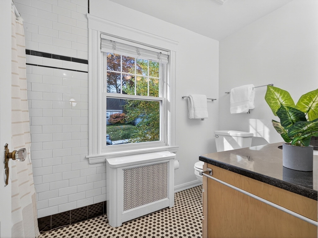 This stylish Moss Hill classic brick colonial home, tastefully updated to highlight its gorgeous 1930s architectural detailing, is perfectly situated to capture seasonal views of the Boston skyline. Nearby is the Arnold Arboretum, w/ easy access to JP Centre & JP Pond, this absolutely charming south-facing house boasts beautiful architectural details, built-in cabinetry, fireplace w/ period-detailed hearths. The welcoming living room is adjacent to a charming sunroom & office, featuring delightful wainscot walls & ceiling, which opens to a wrap-around deck overlooking a private & serene backyard. The dining room is absolutely stunning, highlighted by a unique transom window, gum wood wainscoting, trim, & a built-in china cabinet that opens to an updated contemporary kitchen. The 2nd floor offers an oversized primary bedroom w/ a generous walk-in closet, & 2 spacious bedrooms w/ city views. Updates include A/C mini-splits, Harvey windows, freshly painted interior ,etc. Move right in!