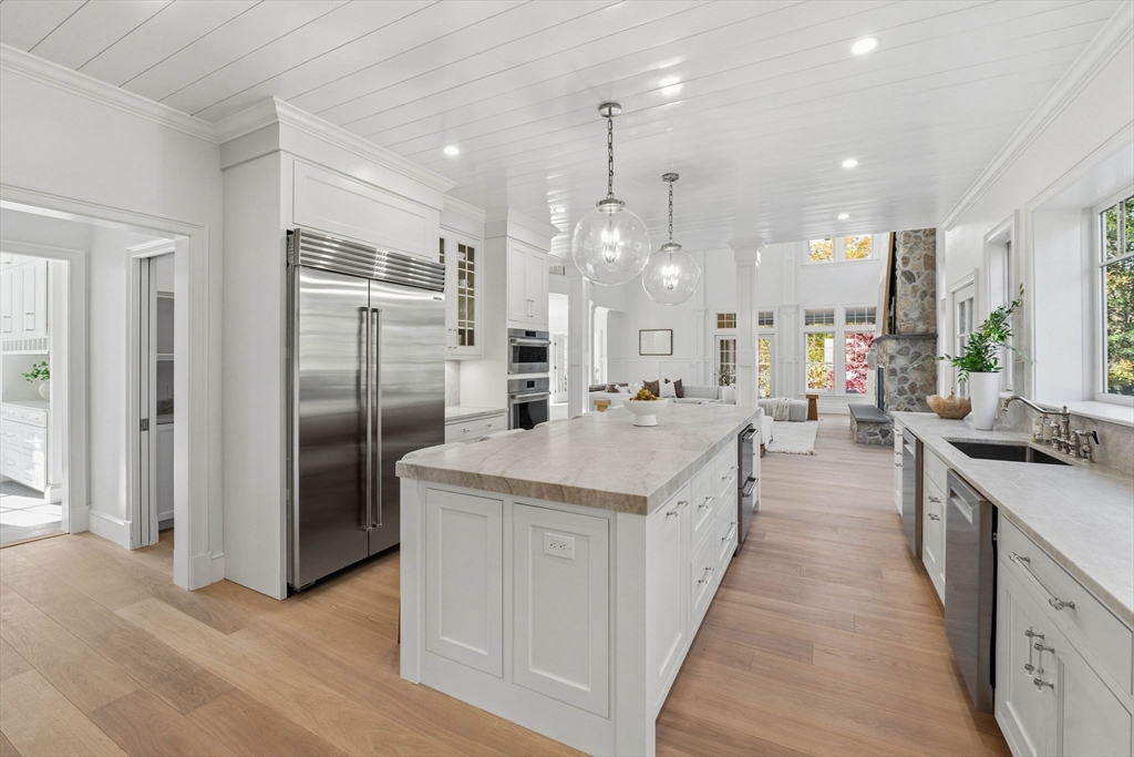 Experience refined coastal living in this new construction Gambrel-style masterpiece. Nearly 6,000 sq. ft. of thoughtfully designed luxury living space close to Grace Oliver Beach and downtown Marblehead. The chef’s kitchen features Wolf appliances, Sub-Zero refrigeration, Quartzite double-slab island, two dishwashers, and high end lighting. Off the kitchen, enjoy a vaulted dining room with shiplap accents and a dramatic chandelier. The great room impresses with a soaring 20-foot ceiling and a custom floor-to-ceiling stone fireplace. The first floor also includes a stylish mudroom, den, and private office. Upstairs offers five spacious bedrooms, including three en suites. The primary suite is a retreat with a spa-like bath, custom walk-in closet, and private deck. The finished lower level features a family room, game room, and gym. Outside, enjoy a covered patio overlooking a private professionally landscaped yard with blue stone hardscaping and an outdoor fireplace. Perfection!