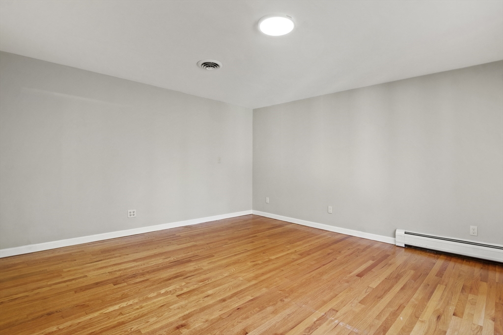 Welcome home to this beautiful, move-in-ready 4-bedroom, 2-bathroom Ranch offering single-level living at its finest. Enter inside to hardwood floors throughout. The sunny living room features a cozy fireplace, perfect for New England evenings. The kitchen is a chef's delight with granite countertops, stainless steel appliances, brand new high-end range fan over stove top and upgraded cabinets, flowing into a formal dining room with charming beamed ceilings. The spacious primary suite is a true retreat, boasting two closets and a private en-suite with a shower stall. Three additional bedrooms and a full bathroom complete the main level. Downstairs offers more flexible living space with a finished family room and a dedicated laundry area. Enjoy the outdoors on the back deck, with two handy storage sheds for your convenience. Complete with Central AC, this home is in a fantastic location with easy access to restaurants, shops, and major routes. Your new home is waiting!