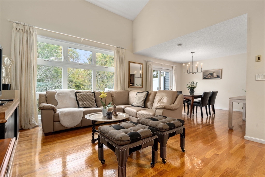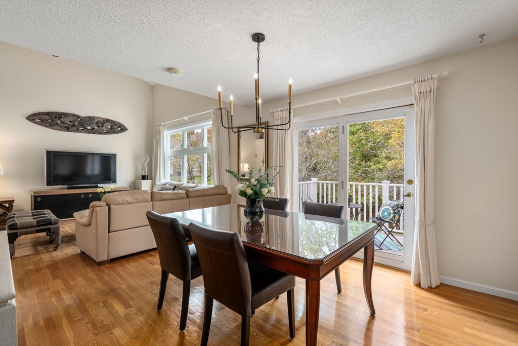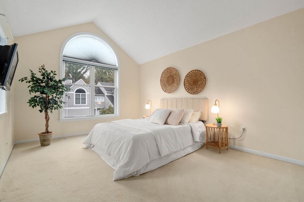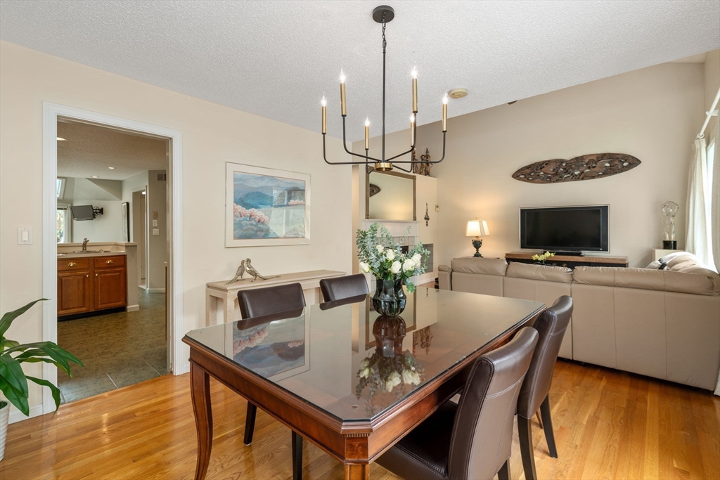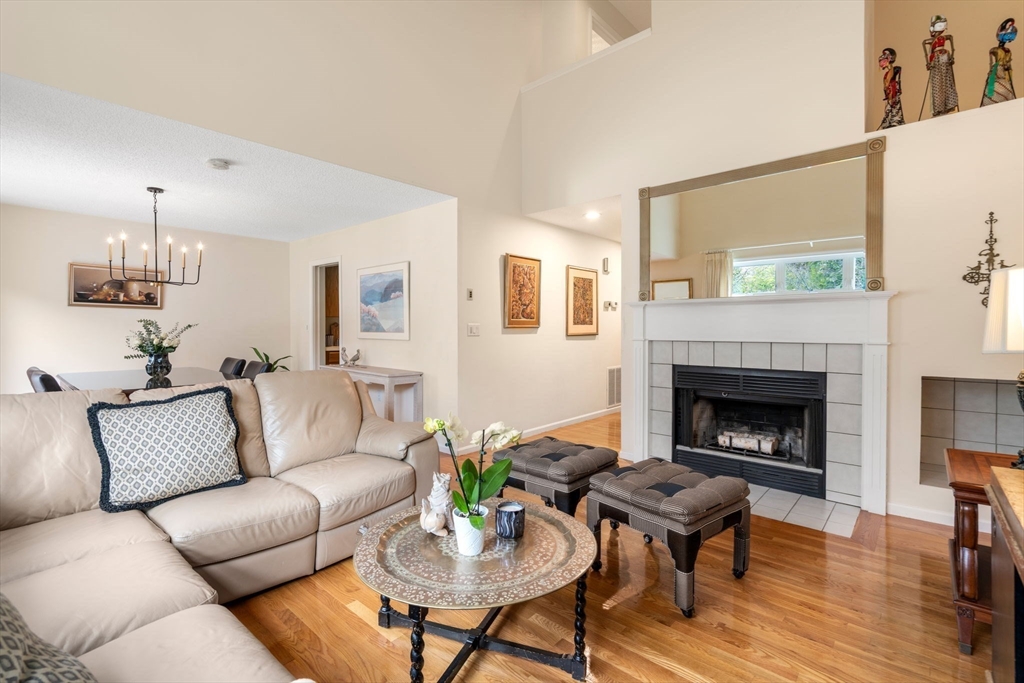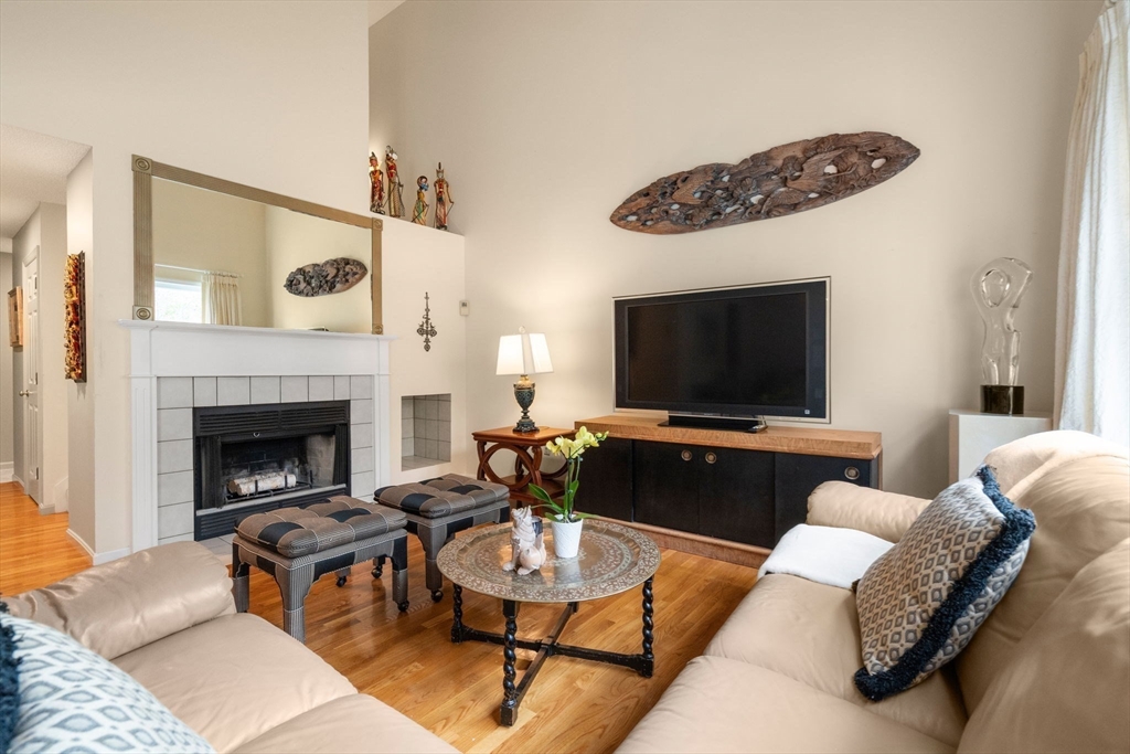 Welcome to desirable Pizzi Farms! This well-maintained townhouse offers three finished levels of comfortable living in a private, beautiful community. Enjoy a bright living room featuring gleaming hardwood floors, a cozy fireplace, and soaring 17-ft cathedral ceilings that open seamlessly to a formal dining area with balcony views of the lush grounds. The spacious eat-in kitchen includes a pantry, greenhouse window, and dining nook. Upstairs, the generous primary suite boasts a walk-in closet and ensuite bath with separate tub and shower, accompanied by a second bedroom, full bath, and convenient laundry. The walkout lower level adds great flexibility with a large bonus room, full bath, and access to a private patio. Additional perks include newer windows and systems, ample storage, an attached one-car garage, and low HOA fees. Ideally located near Rt-95/128, Rt-2, bus #61, Hardy Pond, shops, dining, and everything Waltham has to offer.