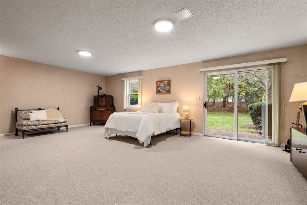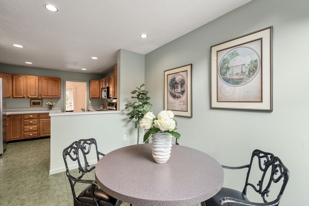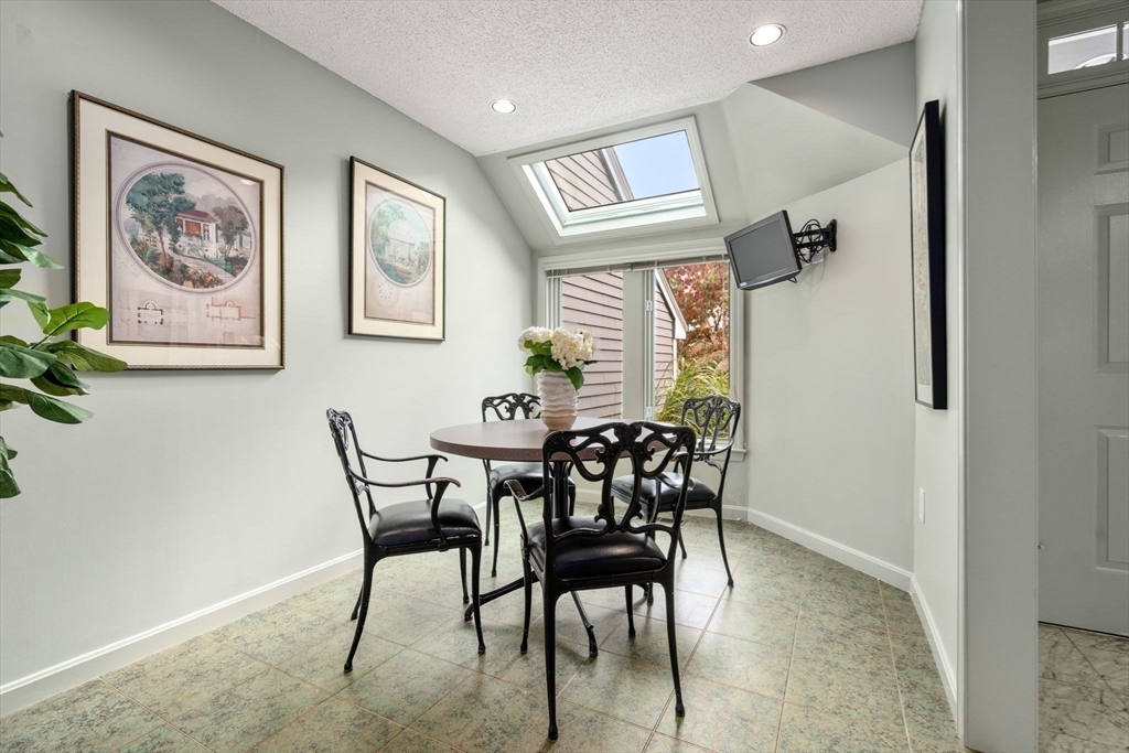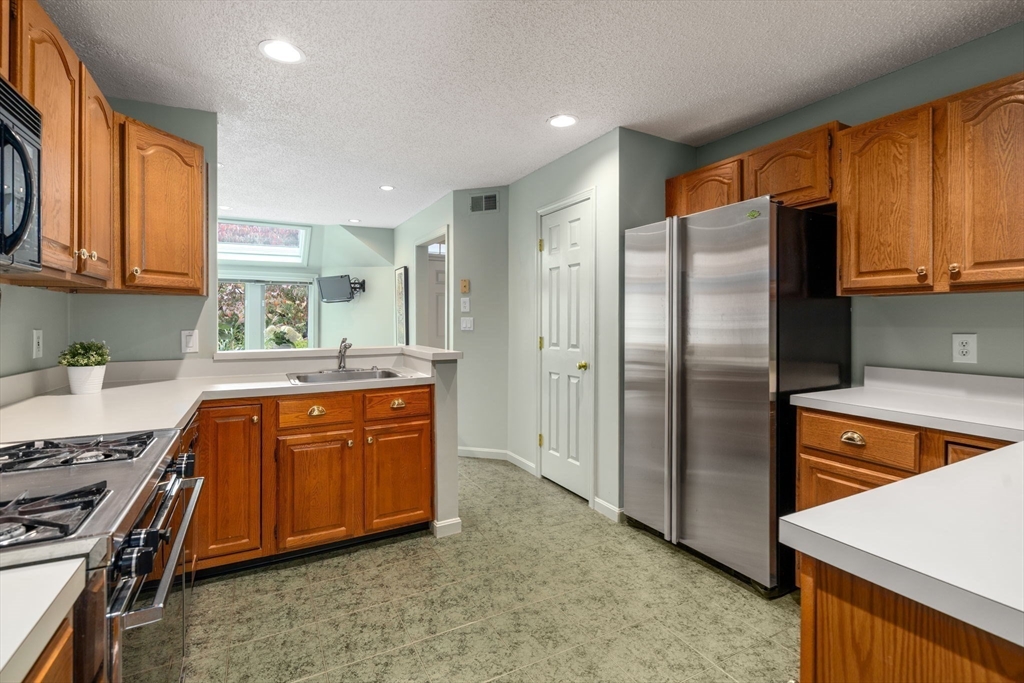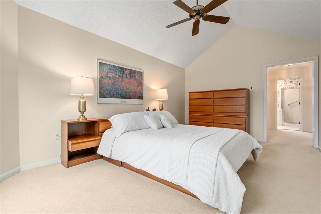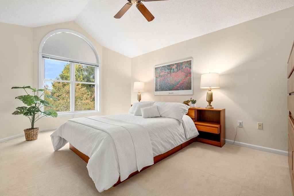 Welcome to desirable Pizzi Farms! This well-maintained townhouse offers three finished levels of comfortable living in a private, beautiful community. Enjoy a bright living room featuring gleaming hardwood floors, a cozy fireplace, and soaring 17-ft cathedral ceilings that open seamlessly to a formal dining area with balcony views of the lush grounds. The spacious eat-in kitchen includes a pantry, greenhouse window, and dining nook. Upstairs, the generous primary suite boasts a walk-in closet and ensuite bath with separate tub and shower, accompanied by a second bedroom, full bath, and convenient laundry. The walkout lower level adds great flexibility with a large bonus room, full bath, and access to a private patio. Additional perks include newer windows and systems, ample storage, an attached one-car garage, and low HOA fees. Ideally located near Rt-95/128, Rt-2, bus #61, Hardy Pond, shops, dining, and everything Waltham has to offer.