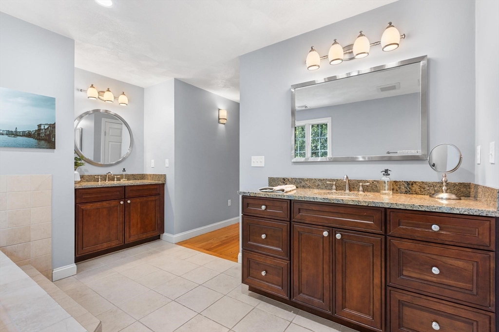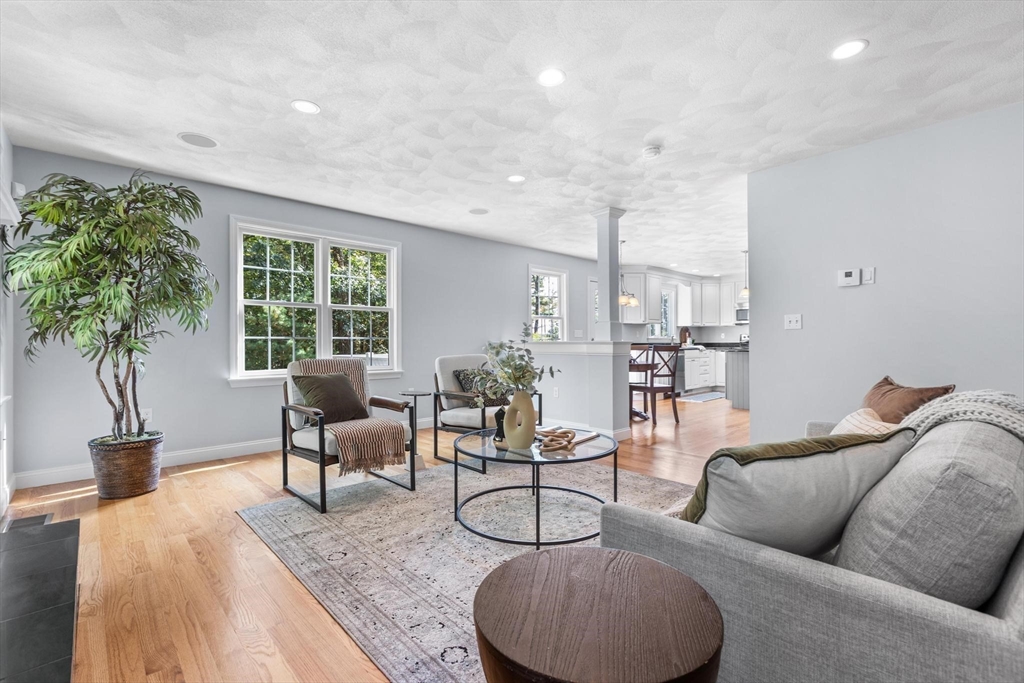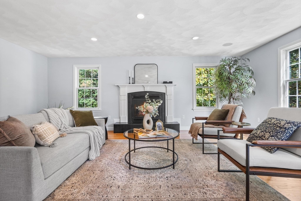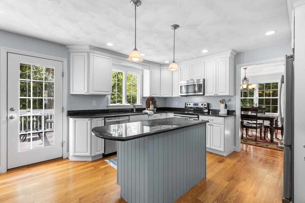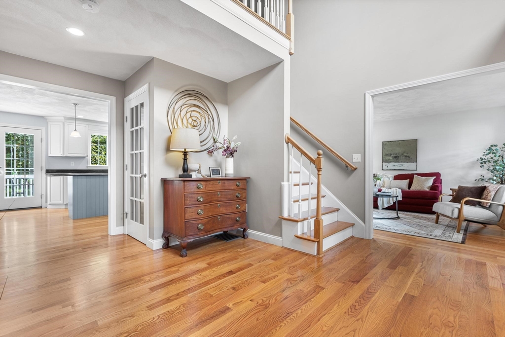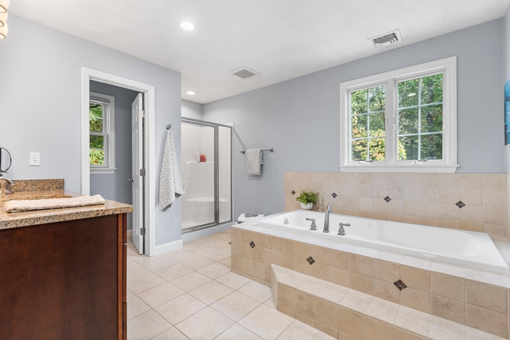 Elegance meets sophistication in this meticulously maintained home by renowned builder William Smith & Sons. Located on a quiet cul-de-sac with easy access to I-93 and Boston, this newer construction showcases quality craftsmanship and thoughtful design. Enjoy three finished levels perfect for entertaining. The sunlit kitchen flows into a spacious family room with a stunning fireplace and recessed lighting. Gleaming hardwood floors span the first level, including versatile dining and living rooms—ideal for hosting, a home office, or playroom. Upstairs, the luxurious primary suite offers a sitting area, walk-in closet, spa-style bath with jet tub, separate shower, and dual vanities. Three additional bedrooms provide comfort and flexibility. The walk-out lower level adds 1,100+ sq ft for a media room, gym, or game room. Outside, a private yard with lush green space awaits nature lovers. This home blends elegance, comfort, and convenience—it’s more than a house, it’s a lifestyle.