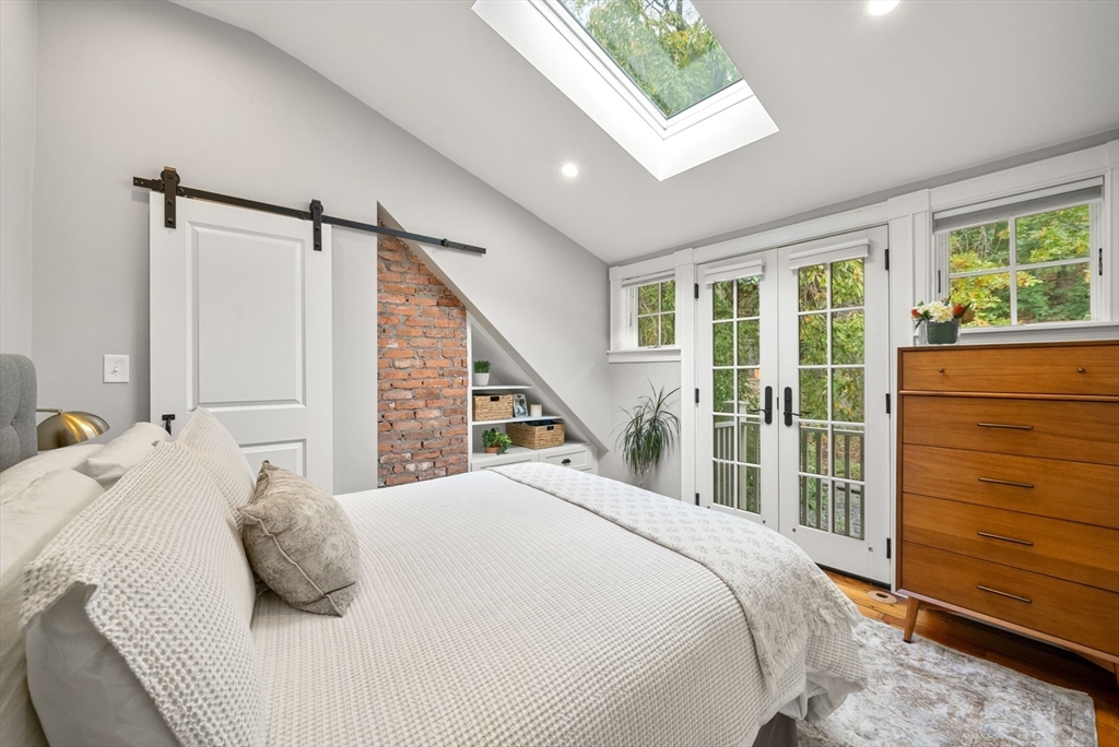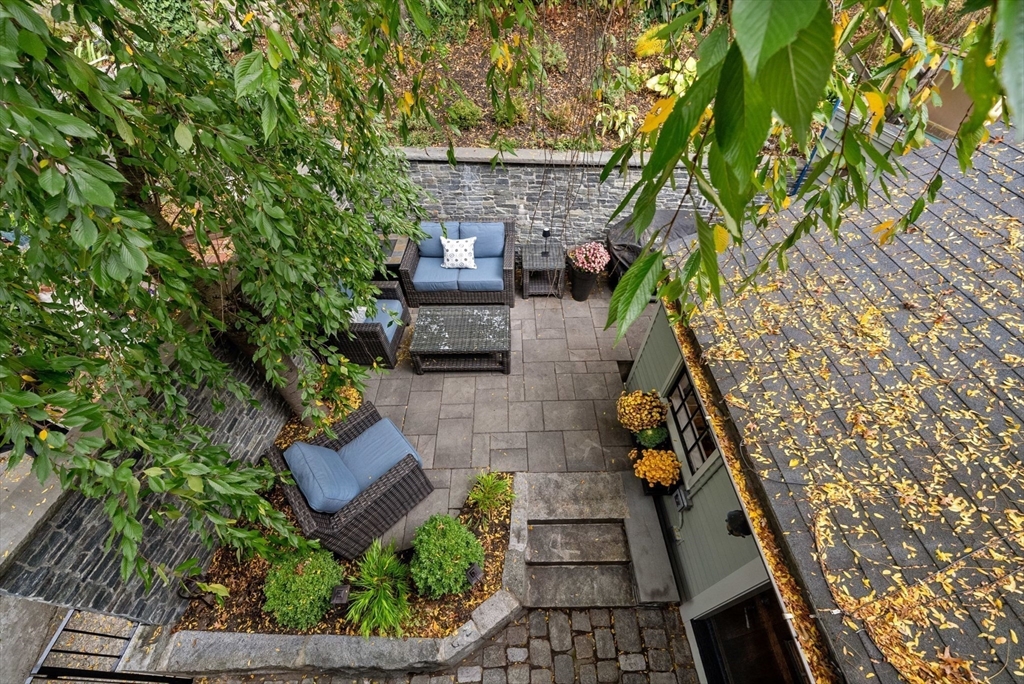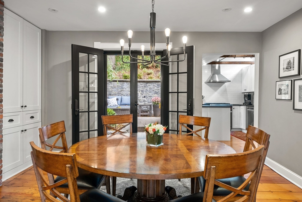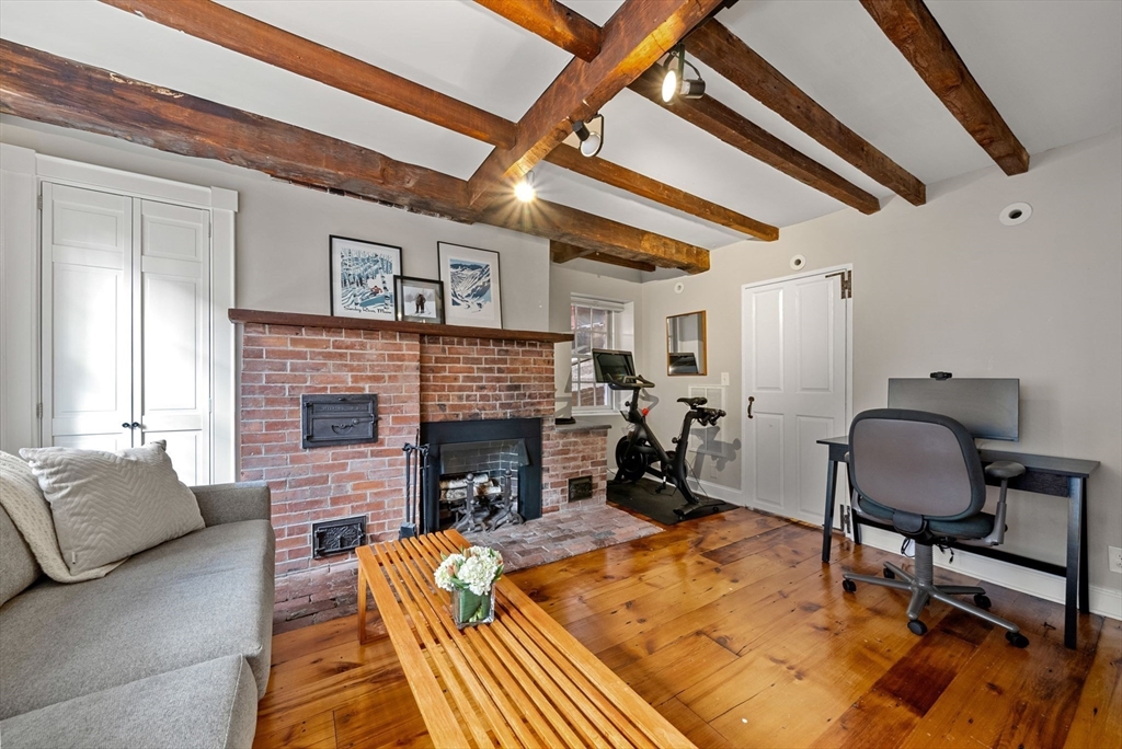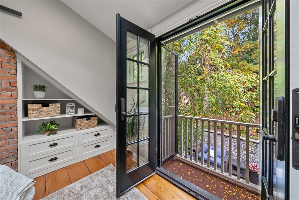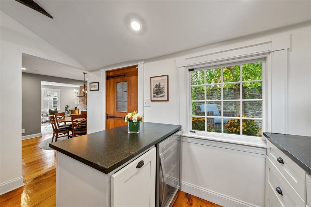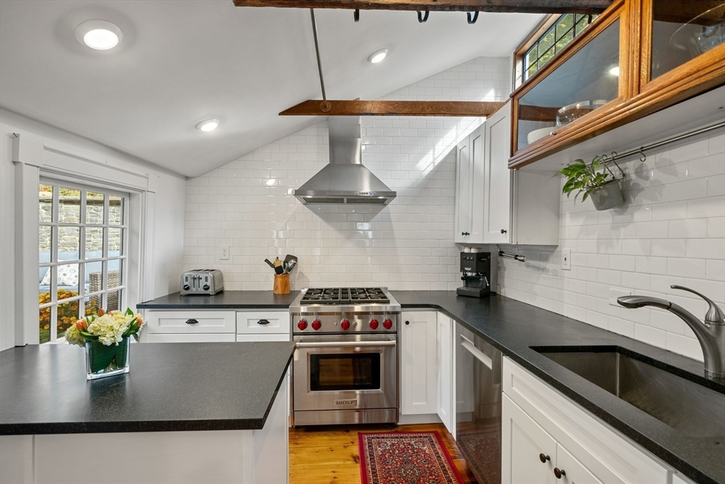 This lovingly restored, ca.1814, single family home features 4BR/2BA, 1480sf, and original historic details including 2 wood-burning FP's, exposed beams/brick, and pumpkin pine floors. The sun-filled main level features a spacious living room with corner exposure, that opens to an elegant dining room with French doors to a private garden patio with handsome stone wall, and chef's kitchen offering white shaker cabinetry, stainless professional appliances, including Wolf range, honed granite countertops, and vaulted ceiling. Nantucket dormered top level offers 3 bedrooms, including a primary w/balcony overlooking the patio and private grounds, and a luxurious full bath with Duravit soaking tub. An entryway w/custom built-in storage and bench seat, full bath w/marble mosaic floor and tub w/white subway tile surround, and family room/bedroom with 2 closets, are located on the first level. W/D, C/Air. The renovation of this classic cottage was designed by renowned architect, Patrick Ahearn.