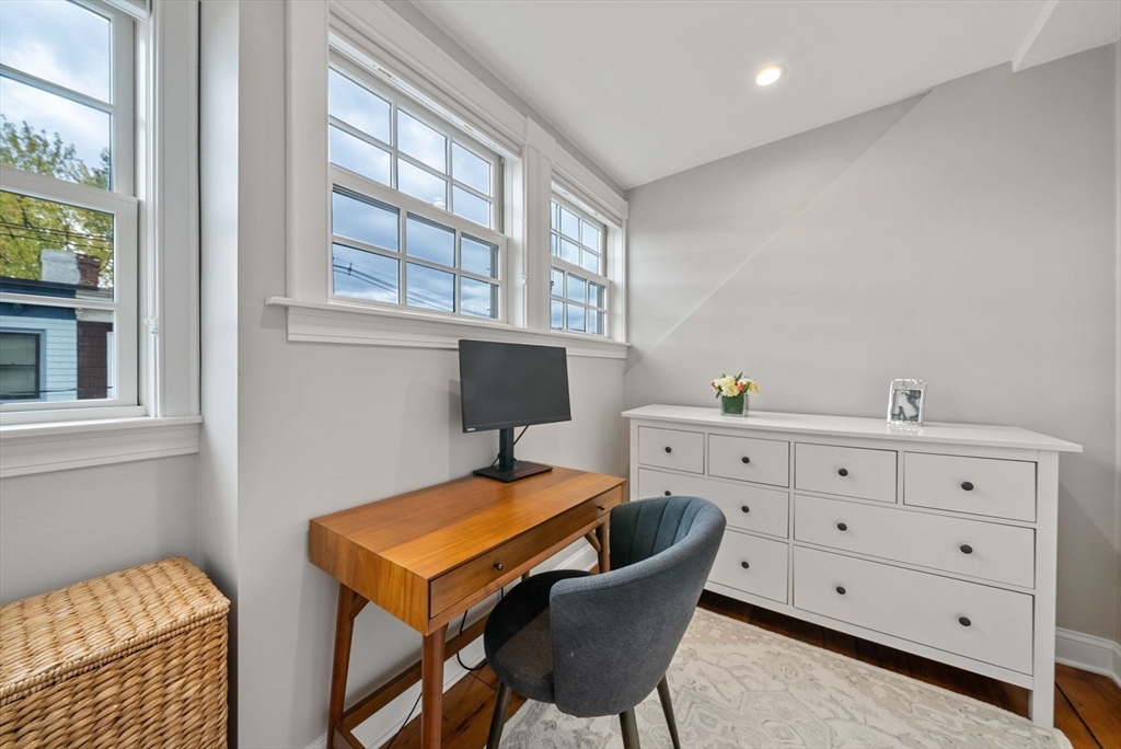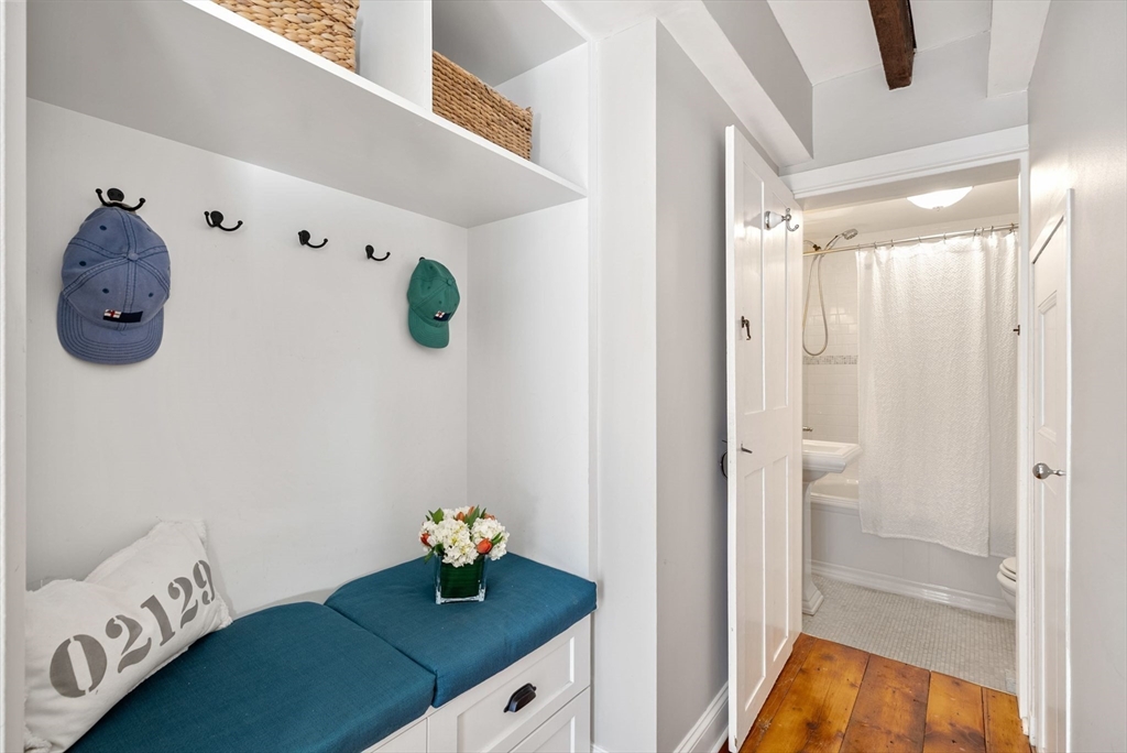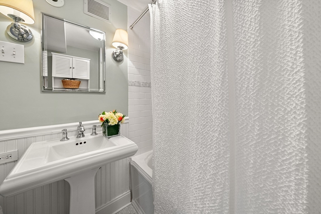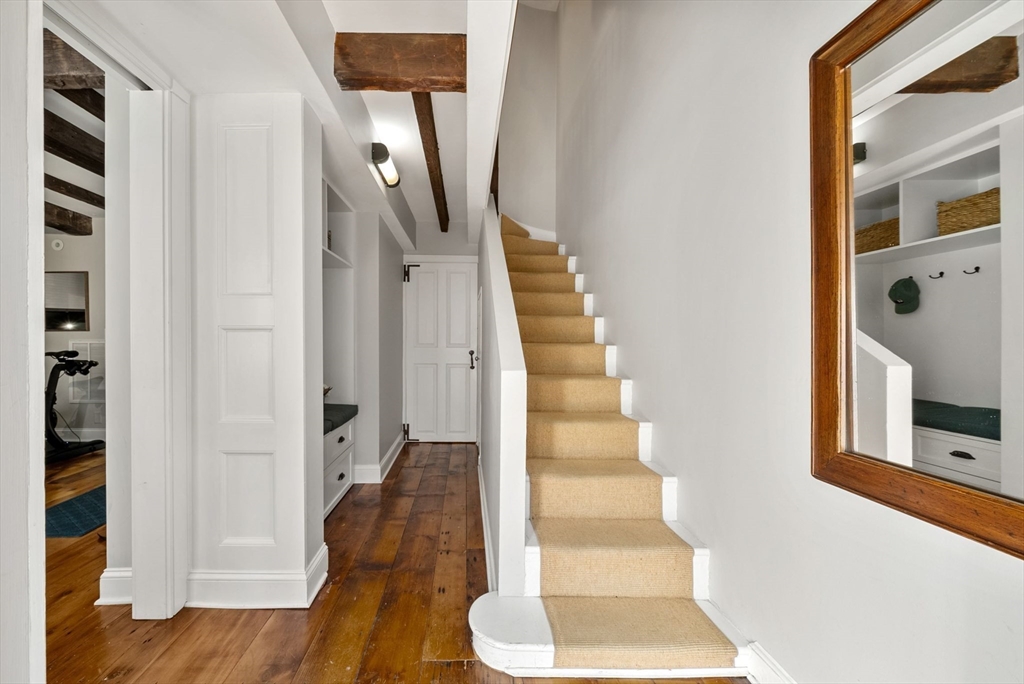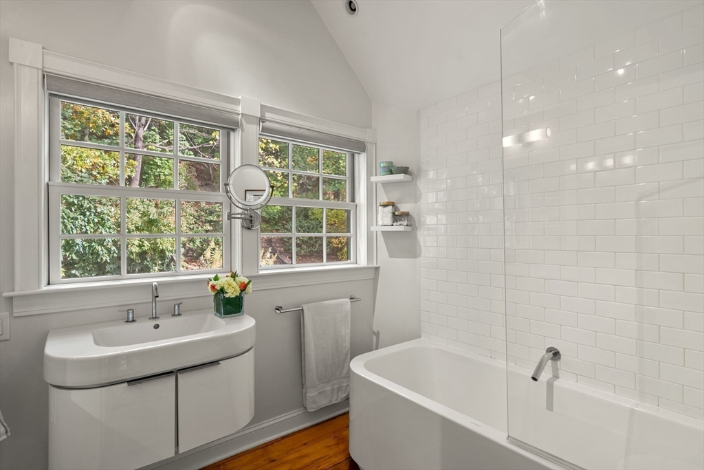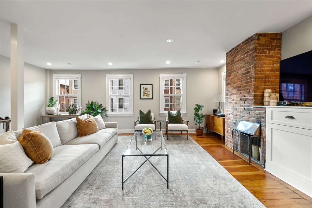 This lovingly restored, ca.1814, single family home features 4BR/2BA, 1480sf, and original historic details including 2 wood-burning FP's, exposed beams/brick, and pumpkin pine floors. The sun-filled main level features a spacious living room with corner exposure, that opens to an elegant dining room with French doors to a private garden patio with handsome stone wall, and chef's kitchen offering white shaker cabinetry, stainless professional appliances, including Wolf range, honed granite countertops, and vaulted ceiling. Nantucket dormered top level offers 3 bedrooms, including a primary w/balcony overlooking the patio and private grounds, and a luxurious full bath with Duravit soaking tub. An entryway w/custom built-in storage and bench seat, full bath w/marble mosaic floor and tub w/white subway tile surround, and family room/bedroom with 2 closets, are located on the first level. W/D, C/Air. The renovation of this classic cottage was designed by renowned architect, Patrick Ahearn.
