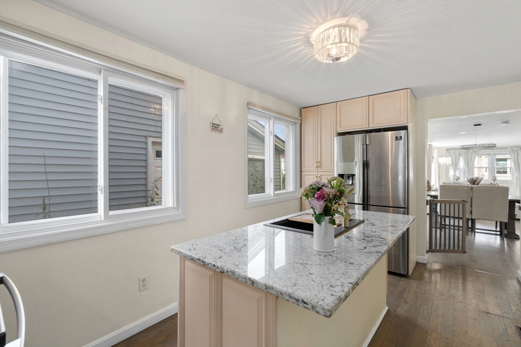 Discover the best of coastal living in this Winthrop waterfront community, where local dining, seaside charm, and effortless access to public transit create a lifestyle of ease and enjoyment. Spanning approximately 2,475 square feet, this expansive 5-bedroom, 3.5-bath home offers three levels of versatile living space along with a private outdoor deck and yard. Ideally situated within walking distance to neighborhood restaurants, Ingleside Park, the Marina, and public transportation, the location blends community charm with everyday convenience. Step inside to an open living and dining area filled with natural light from abundant windows, creating an inviting atmosphere perfect for both entertaining and everyday living. The main level features the primary bedroom suite, while the second floor offers three additional bedrooms and a full bath. The partially finished lower level provides a bonus bedroom and a flexible space ideal for a family room, guest suite, or in-law accommodations.