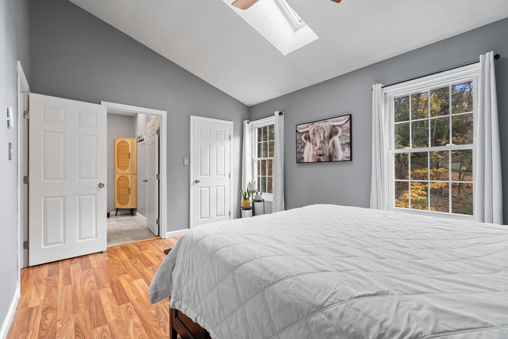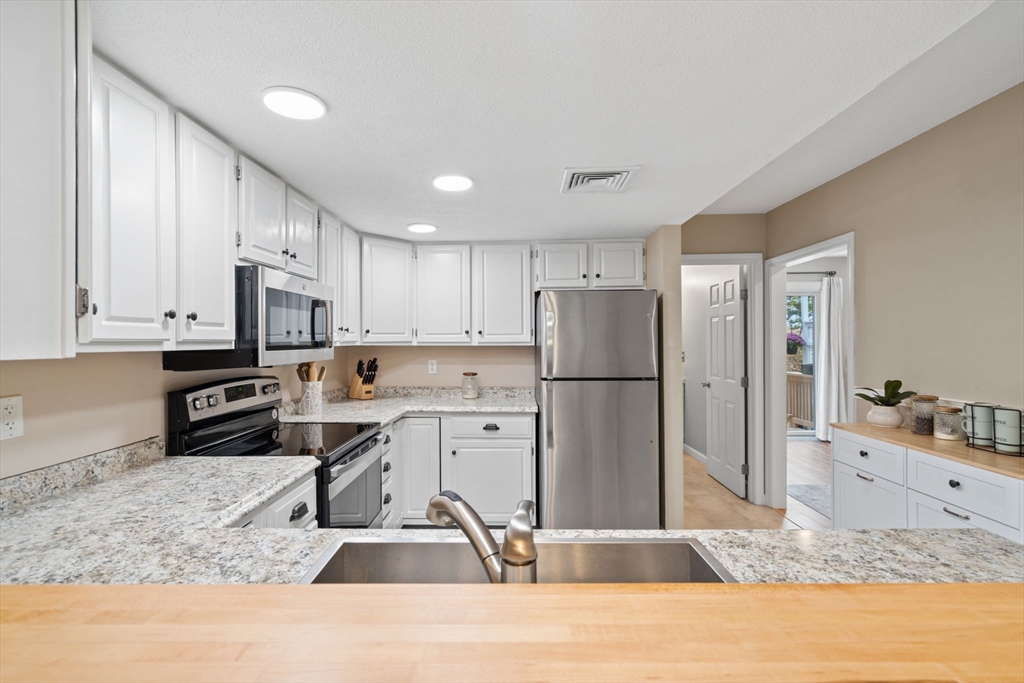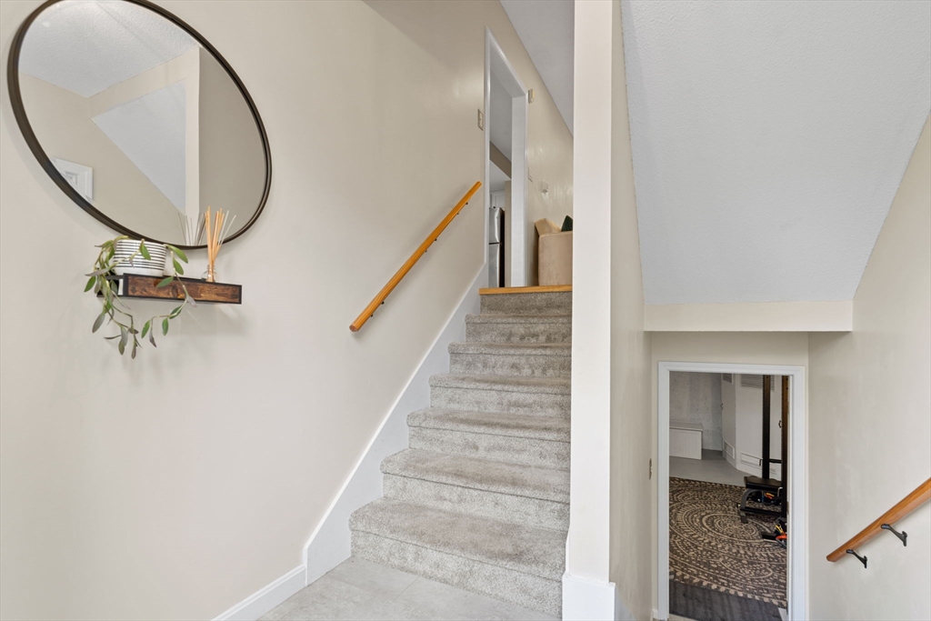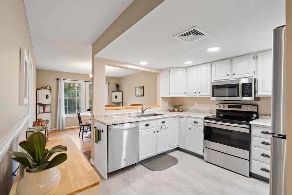 Sunny and updated 3BR, 2.5BA townhome nestled at the end of a desirable Sutton cul-de-sac! This lovingly maintained home offers a welcoming entry w/ mudroom closet and a versatile partially finished lower level, perfect for a gym, playroom, or home office; plumbed for 1/2 bath. The main level includes a formal dining room with breakfast bar open to the kitchen, a spacious living room with slider to the deck and a perfect nook for a desk, or toys, plus a half bath with laundry. Upstairs, a half-moon window and skylights fill the space with natural light. The primary suite features a walk-in closet and private bath, while two additional bedrooms share a full hall bath. Added bonuses include a 1-car garage, guest parking, and plenty of storage. Central air! Energy-efficient improvements done with MassSave (2022); H2O tank (2020), heating system (2018), more updates listed on attachment. Move right in and enjoy this beautiful home close to major routes, shopping, and schools!