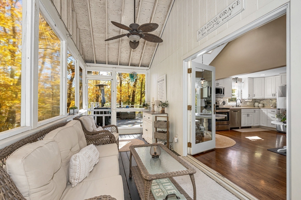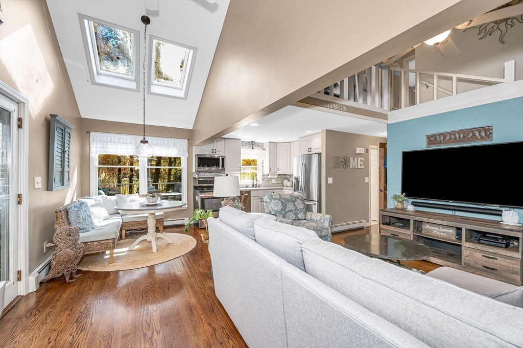 Welcome to this charming Colonial nestled in one of Westborough’s most desirable locations - just around the corner from Lake Chauncy and the beach. This beautiful single-family home offers 3 bedrooms, 2 bathrooms, and 1,551 square feet of comfortable living space on a generous 0.46-acre lot. The open-concept kitchen, dining, and family room—featuring vaulted ceilings, a cozy fireplace, and direct access to the screened porch—create the perfect setting for entertaining or relaxing. Enjoy the peaceful ambiance of a corner lot bordered by woods, offering both privacy and a sense of retreat. Step outside to the expansive Trex deck and fire pit area—ideal for gatherings and making lasting memories. The inviting three-season sunroom provides a cozy spot to take in the scenic surroundings year-round. In the same family for 40+ years...here is your chance to make this delightful property home.