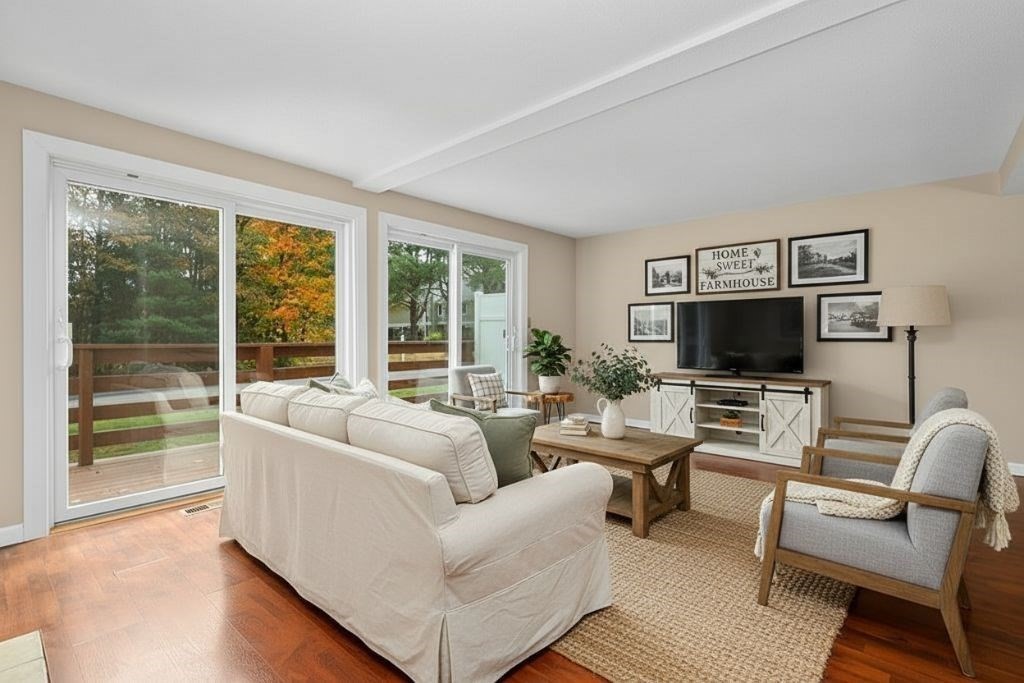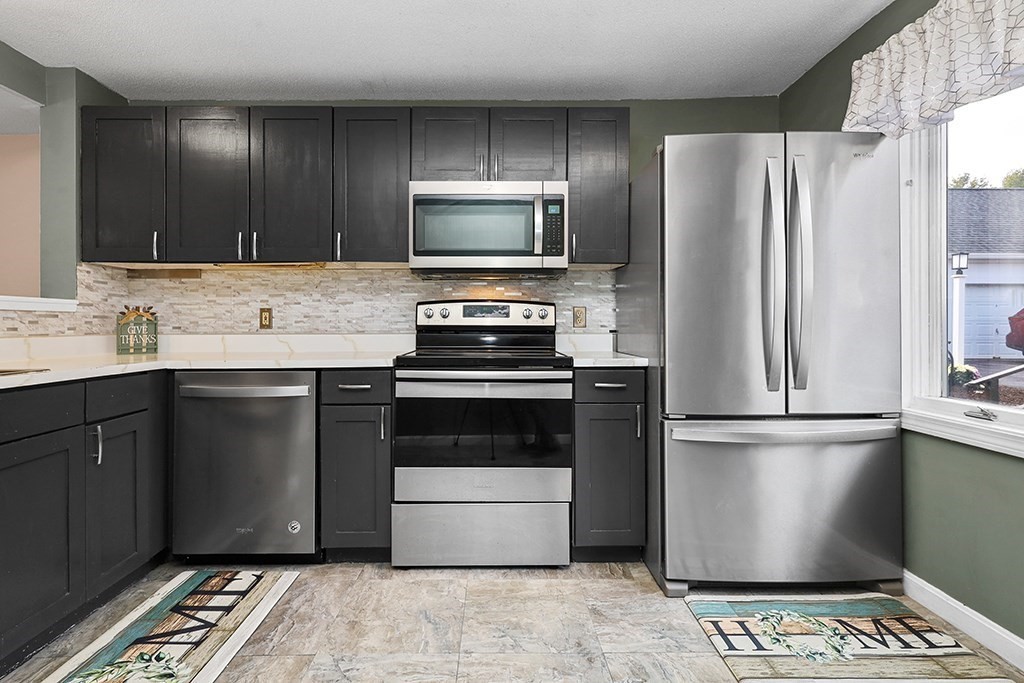 Brand new roof, almost all windows less than 5 years old, plus many other improvements, this townhome in coveted pet-friendly Stone Ridge is ready for you. Stay cozy by the living room fireplace or out the slider to your private deck and enjoy the sunshine. Stainless steel appliances and refinished countertops make cooking a pleasure, and the built in dining room table with hidden storage will stay. Upstairs, two generous bedrooms with newer carpeting, two full baths, and convenient laundry provide all the space you'll need, and the finished dry basement with slider leads to the patio. Soundproofing in the 2nd bedroom, basement & basement hallway! A newer (2023) HVAC condenser, water heater, and dryer vents make maintenance worry-free. Convenient to 495, MBTA, and all Franklin attractions, this home is waiting for you! Stone Ridge offers a saltwater pool, tennis /pickleball & Basketball courts.