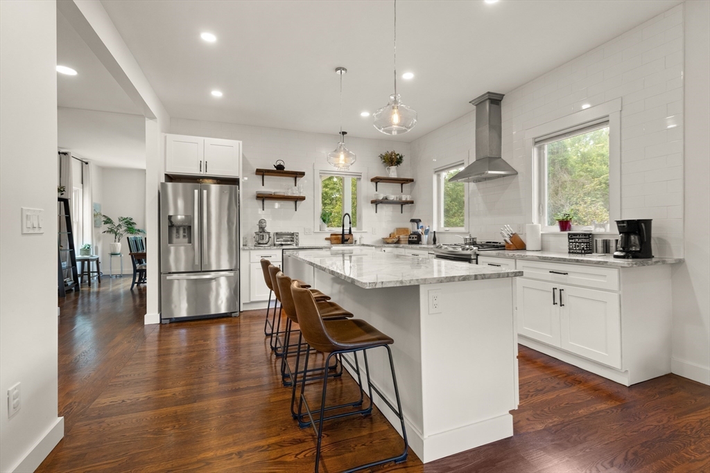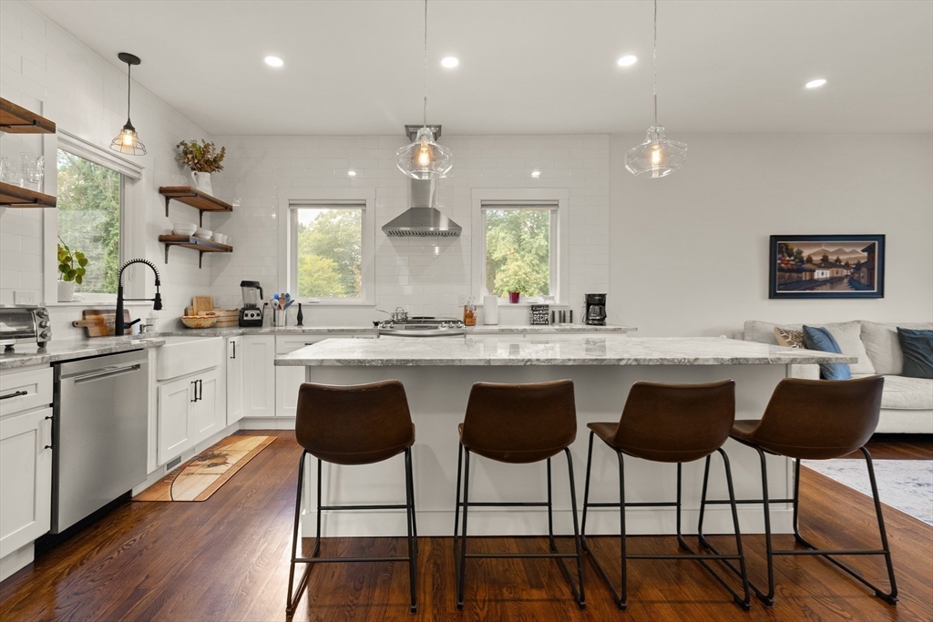 Meticulously renovated & reimagined for today’s lifestyle, this Westford gem combines exceptional quality with unbeatable value. Fully upgraded between 2017–2018, the home showcases a newer architectural-shingle roof & EPDM rubber roof, dual-zone gas HVAC with central A/C, a Navien tankless water heater, & 200-amp electrical service. The first floor impresses with soaring 9.5-foot ceilings—creating an airy, open feel that enhances every room’s warmth & character. The gourmet kitchen features sleek cabinetry, premium appliances, and designer finishes. Upstairs, three spacious bedrooms are complemented by a newer four-bedroom septic system, offering flexibility for future expansion. Two beautifully renovated bathrooms, a large fenced-in yard with a built-in fire pit, and a charming side porch make this home perfect for entertaining. Just minutes from Muffins on Main, and Westford Center—this property delivers exceptional craftsmanship and modern comfort at an outstanding value!